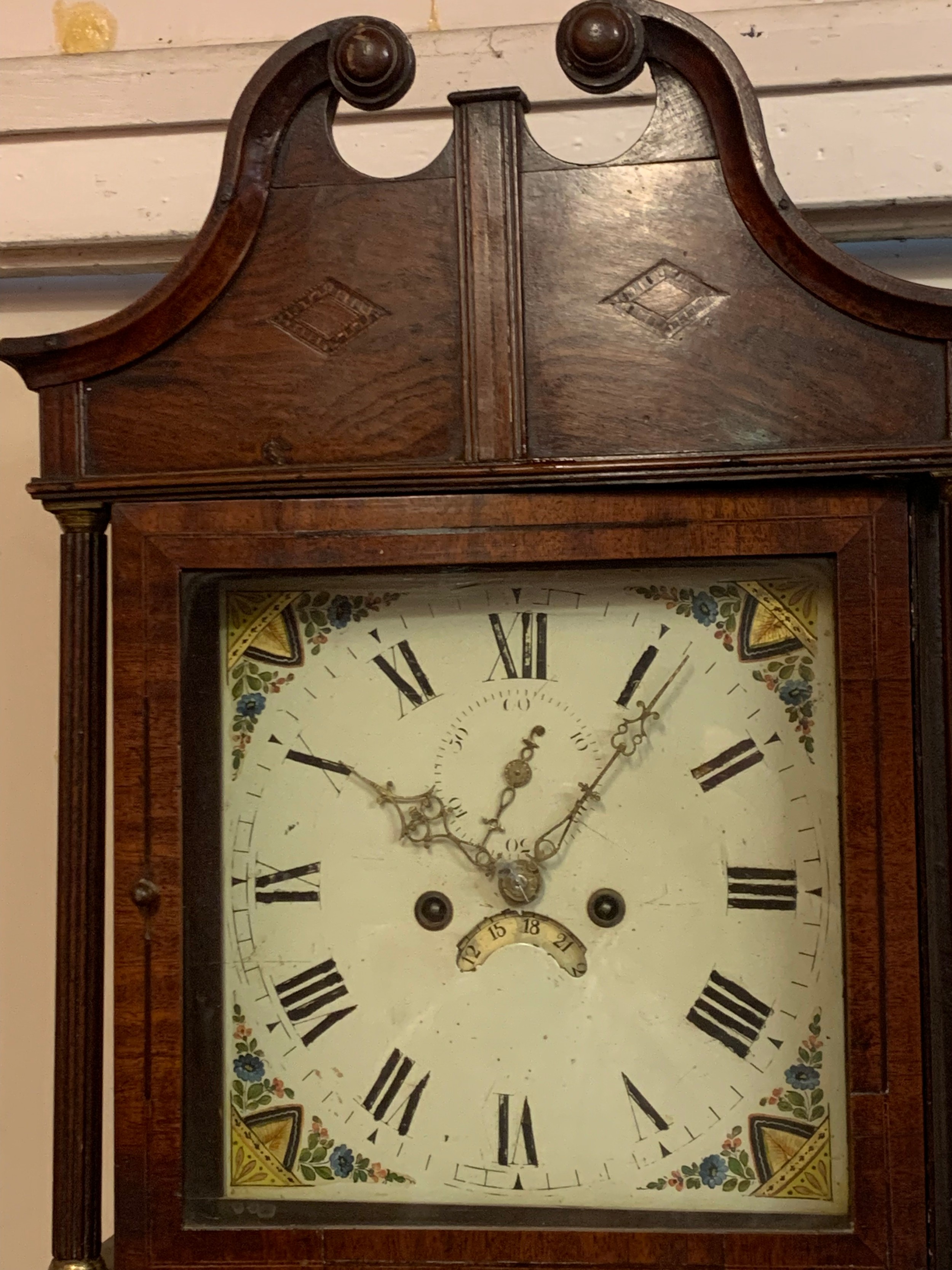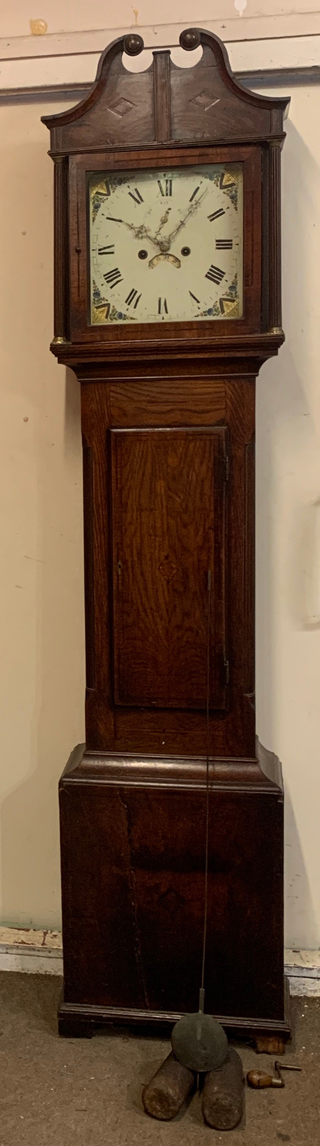 Antique Longcase Clock With Weights Pendulum And Key. 208 cms High