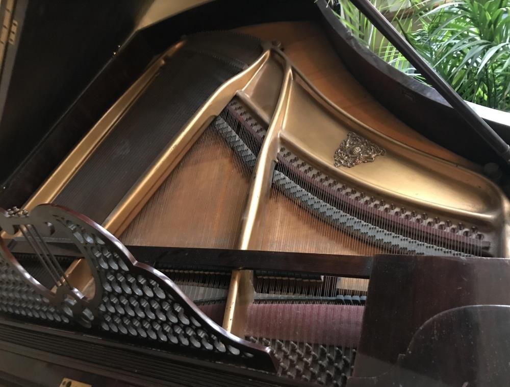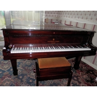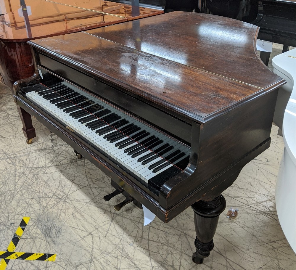 Broadwood (c1904) A 5ft 6in grand piano in a rosewood case with a lyre shaped music stand. On turned legs.