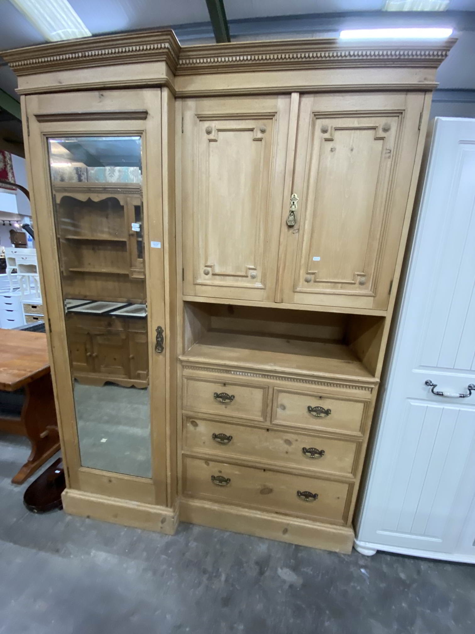 Pine combination wardrobe with shelves and hanging rail to the interior 210H 156W 63D