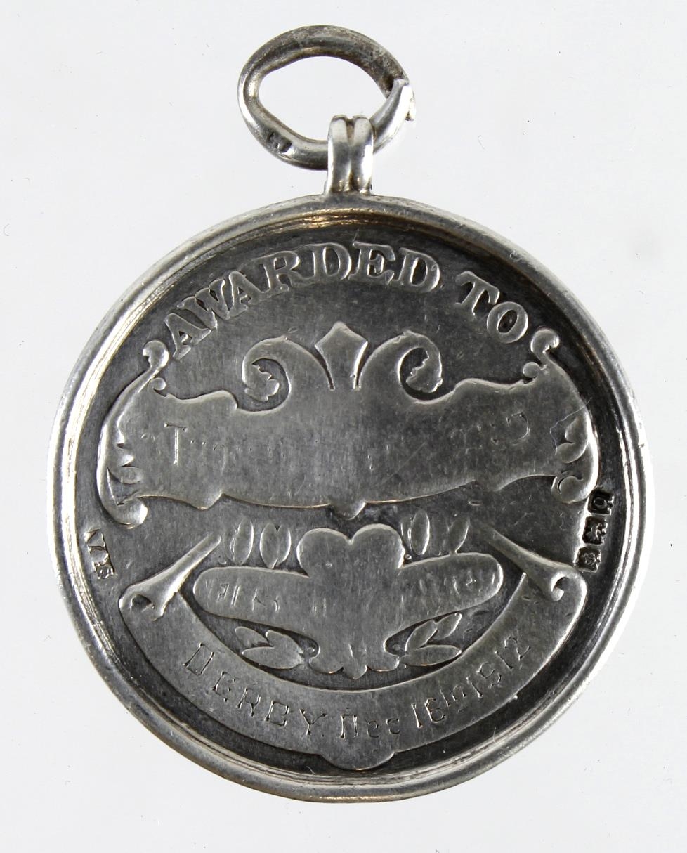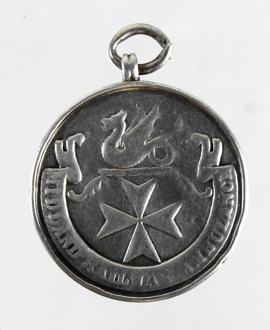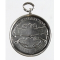 Railway related - Midland Railway Ambulance First Aid rendered (probably) silver medal. Presented to (full name not readable) (First name could be Thomas) Derby Dec. 16th 1912. Hallmarked V&S Birm. 1913 (medal very worn and polished). Weight 16.4gms