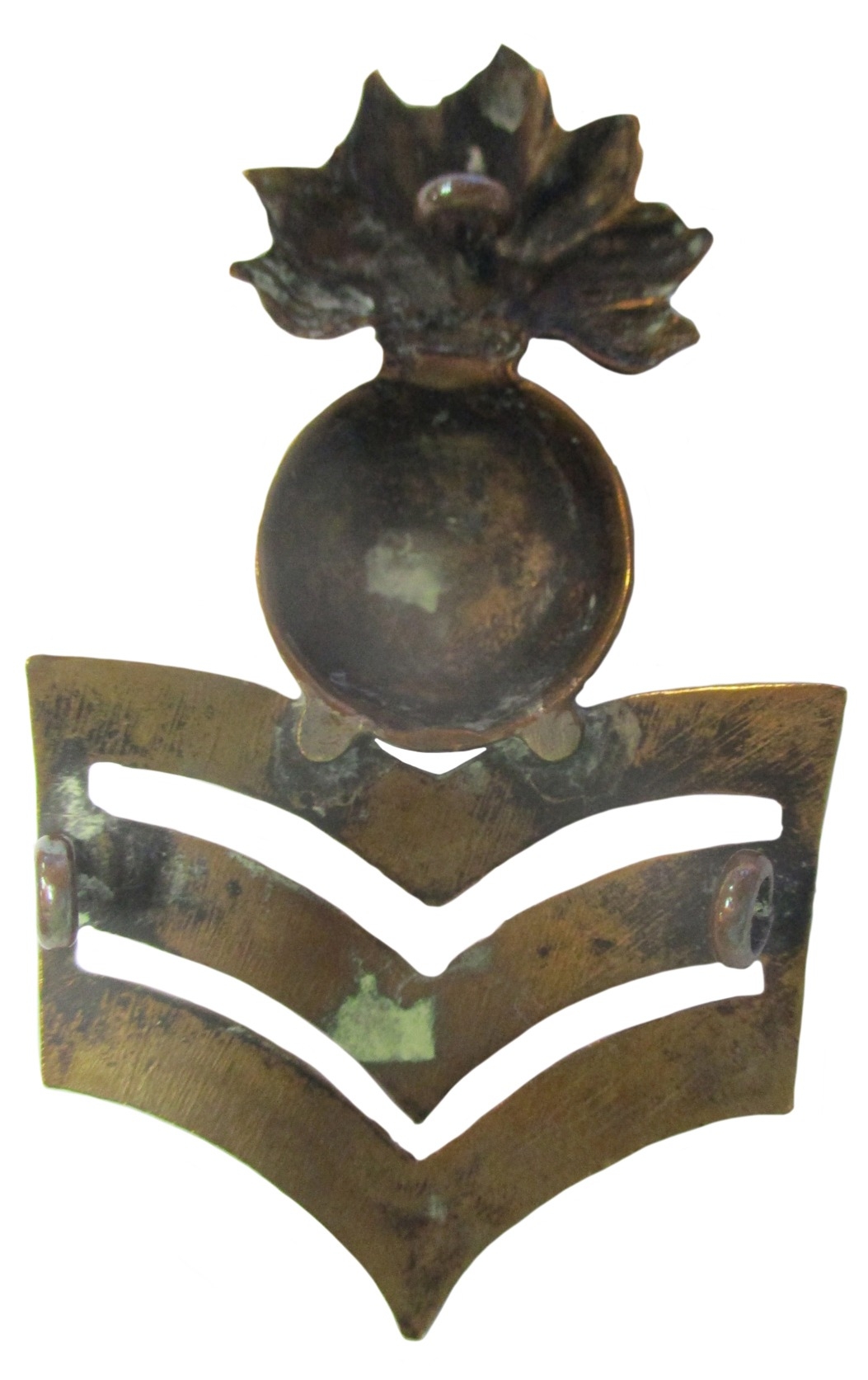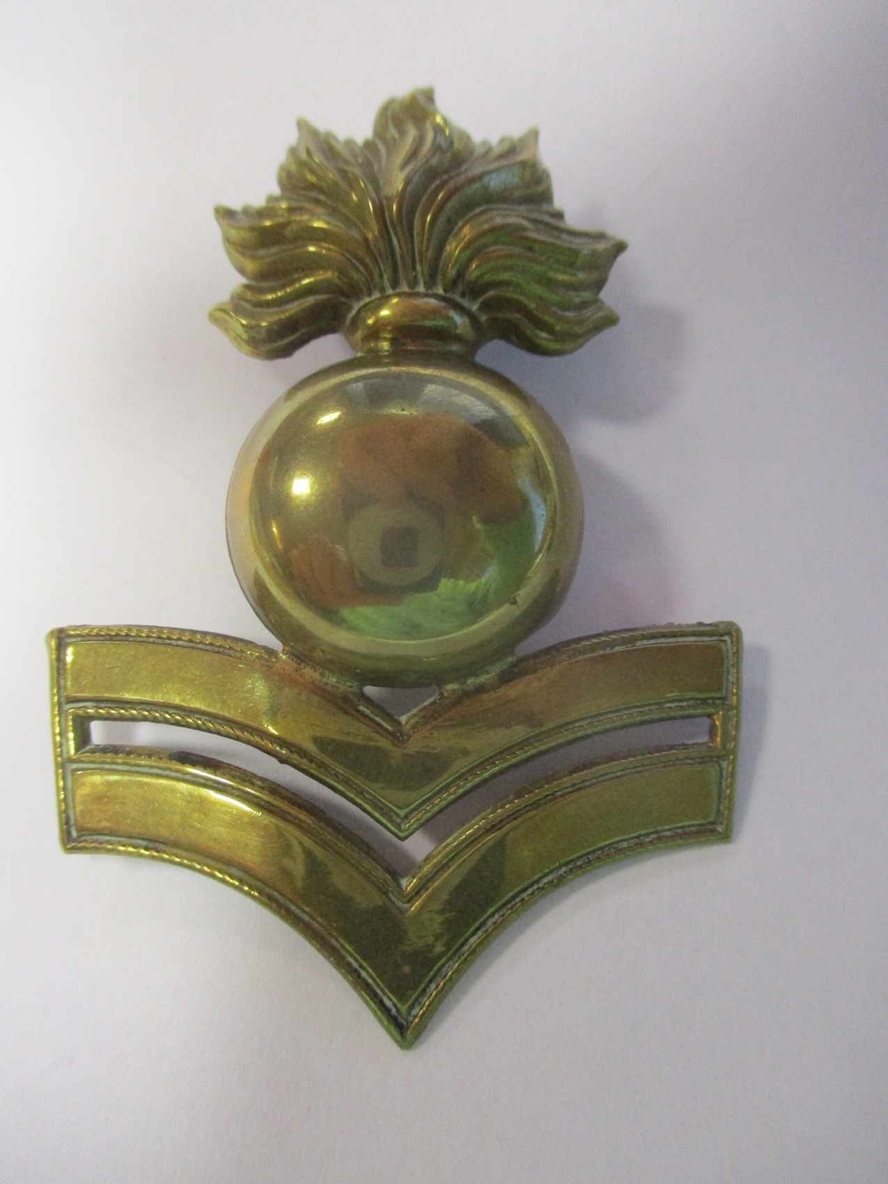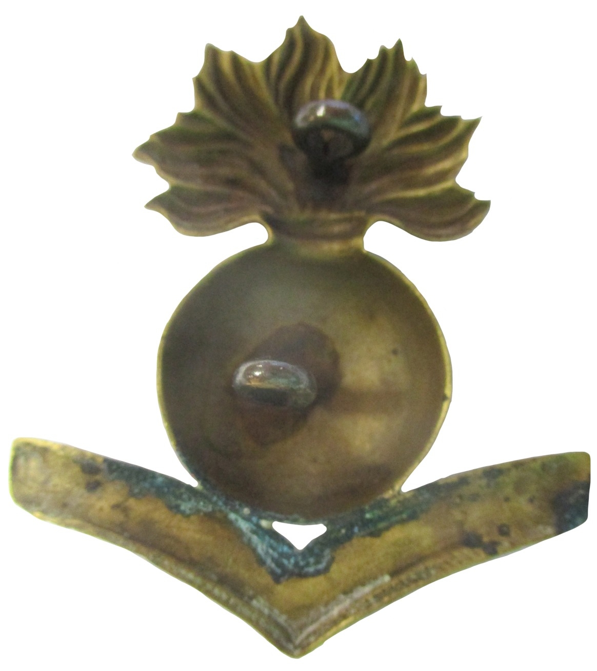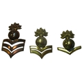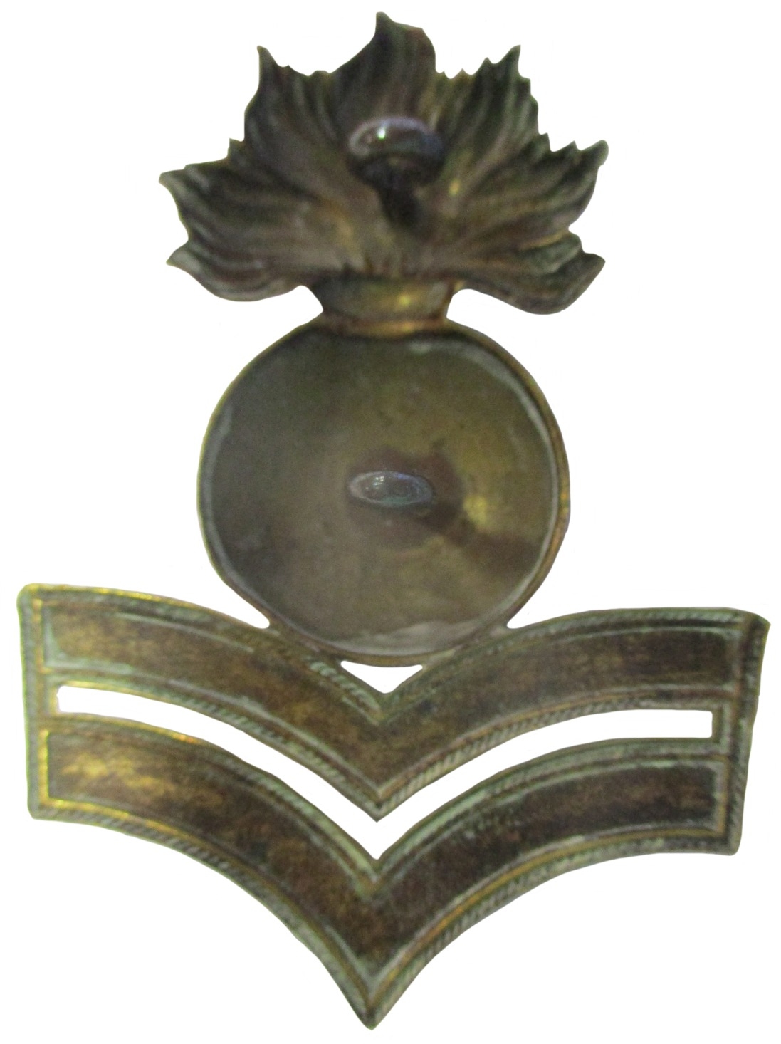 Royal Marine Artillery 1855-57 undress cap badge range with Lance-Sergeant, Bombardier and Lance-Bombardier, fused grenade over appropriate chevron, minor verdigris to chevron on Lance-Bombardier, otherwise very fine or better. Qty 3 (Y)