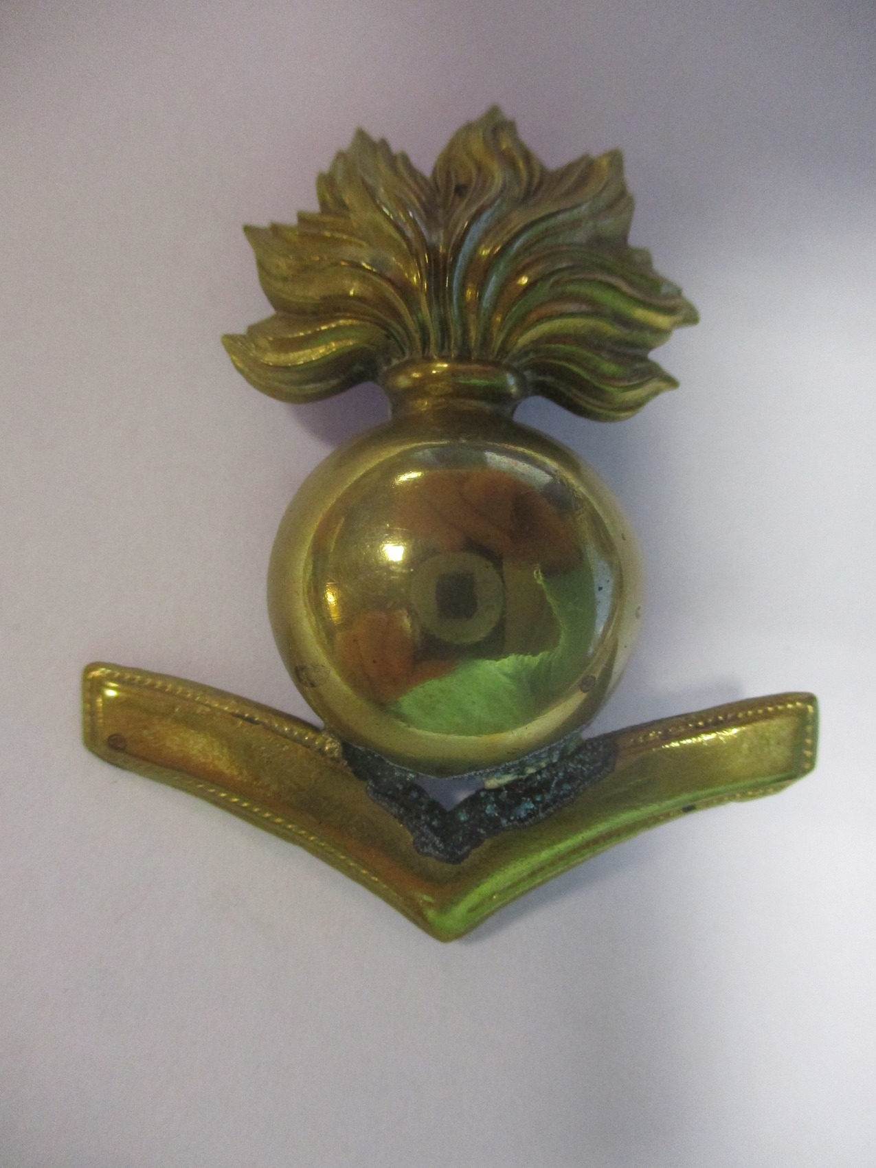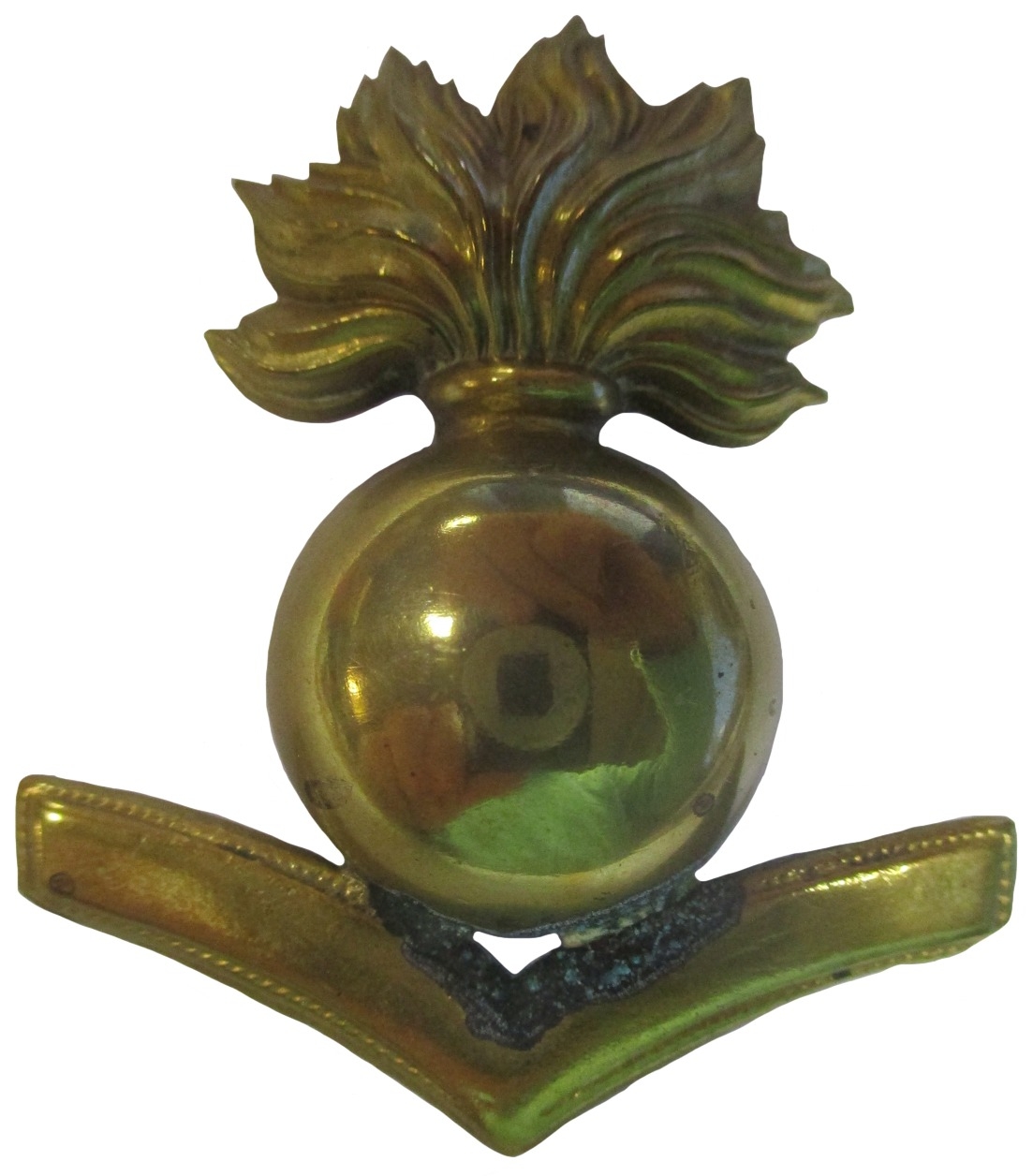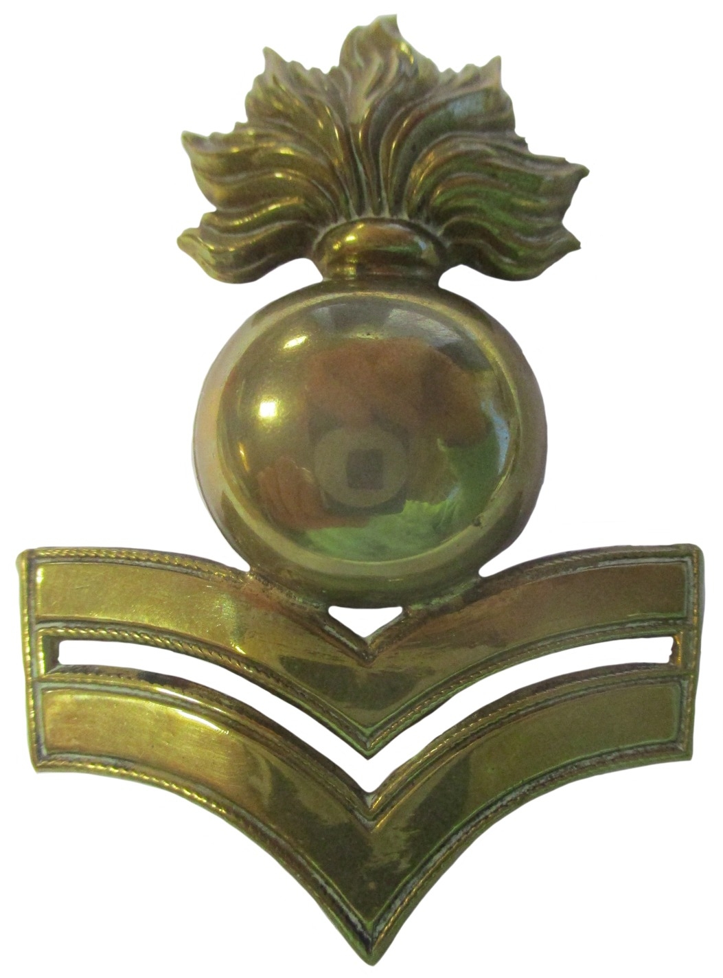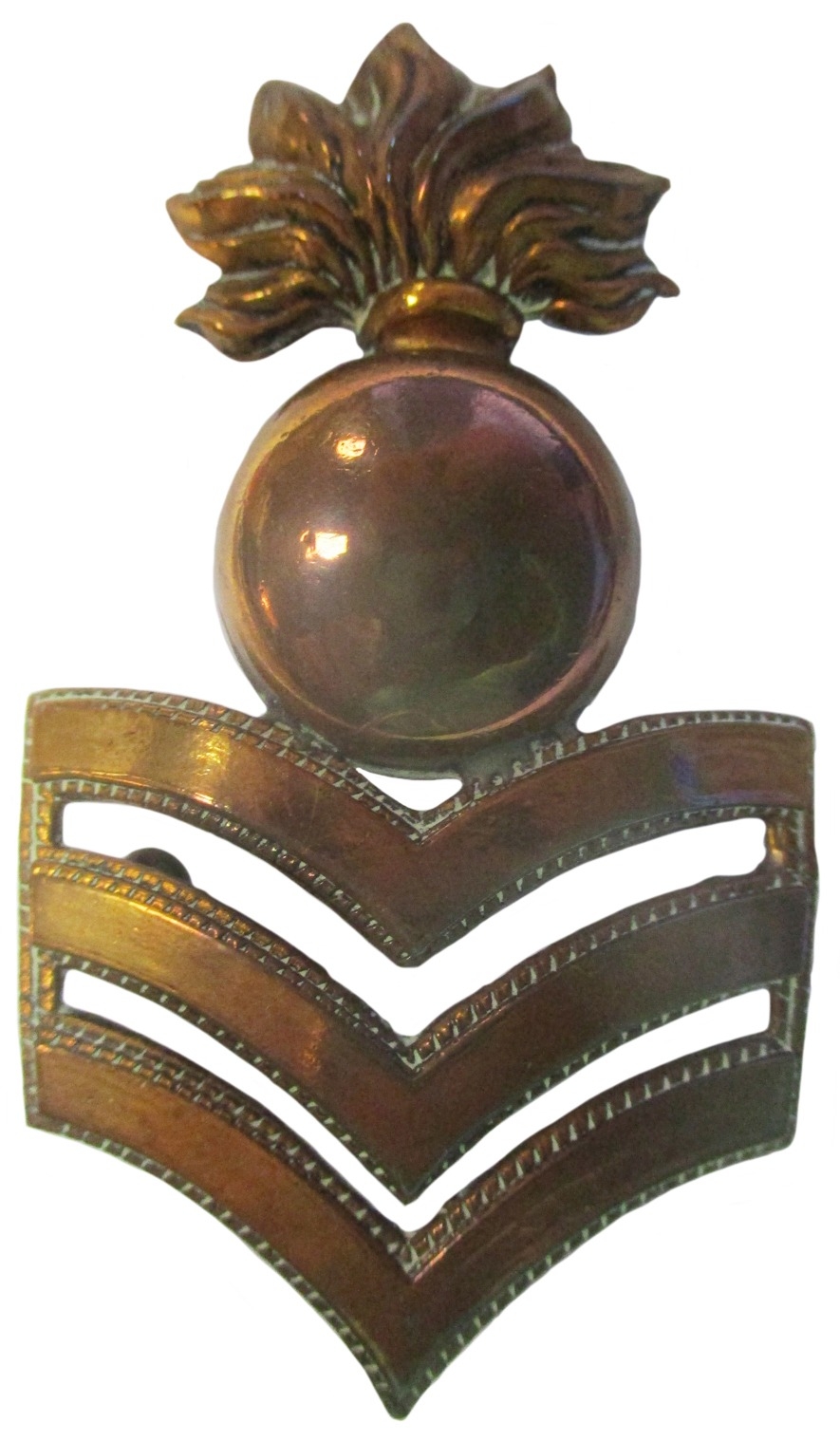 Royal Marine Artillery 1855-57 undress cap badge range with Lance-Sergeant, Bombardier and Lance-Bombardier, fused grenade over appropriate chevron, minor verdigris to chevron on Lance-Bombardier, otherwise very fine or better. Qty 3 (Y)