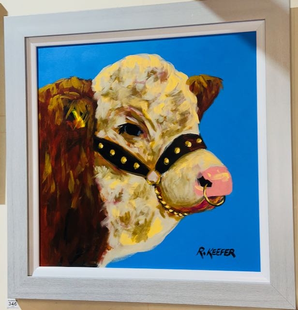 Large Framed Ronald Keefer Oil on Board - Prize Bull - 30" Sq