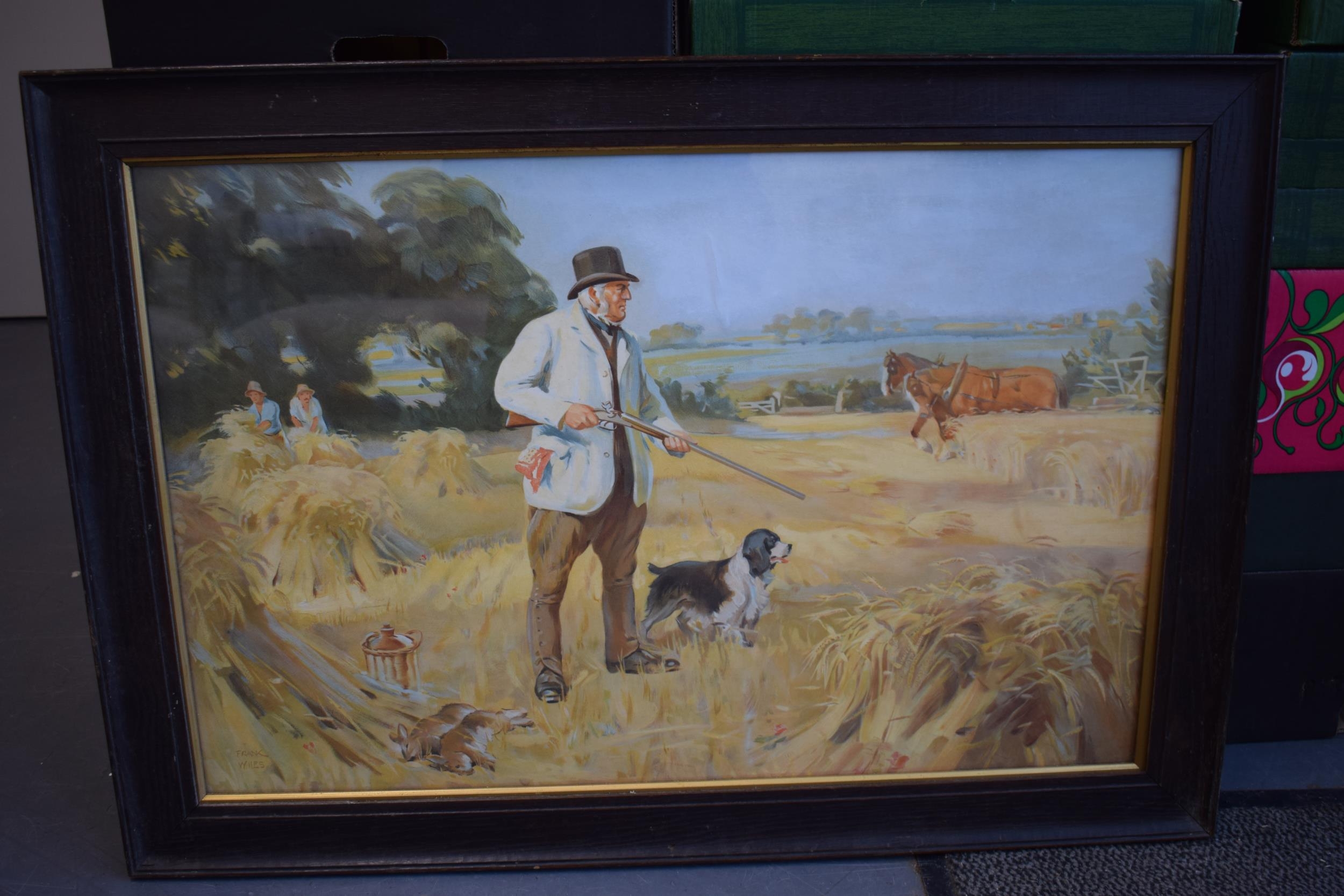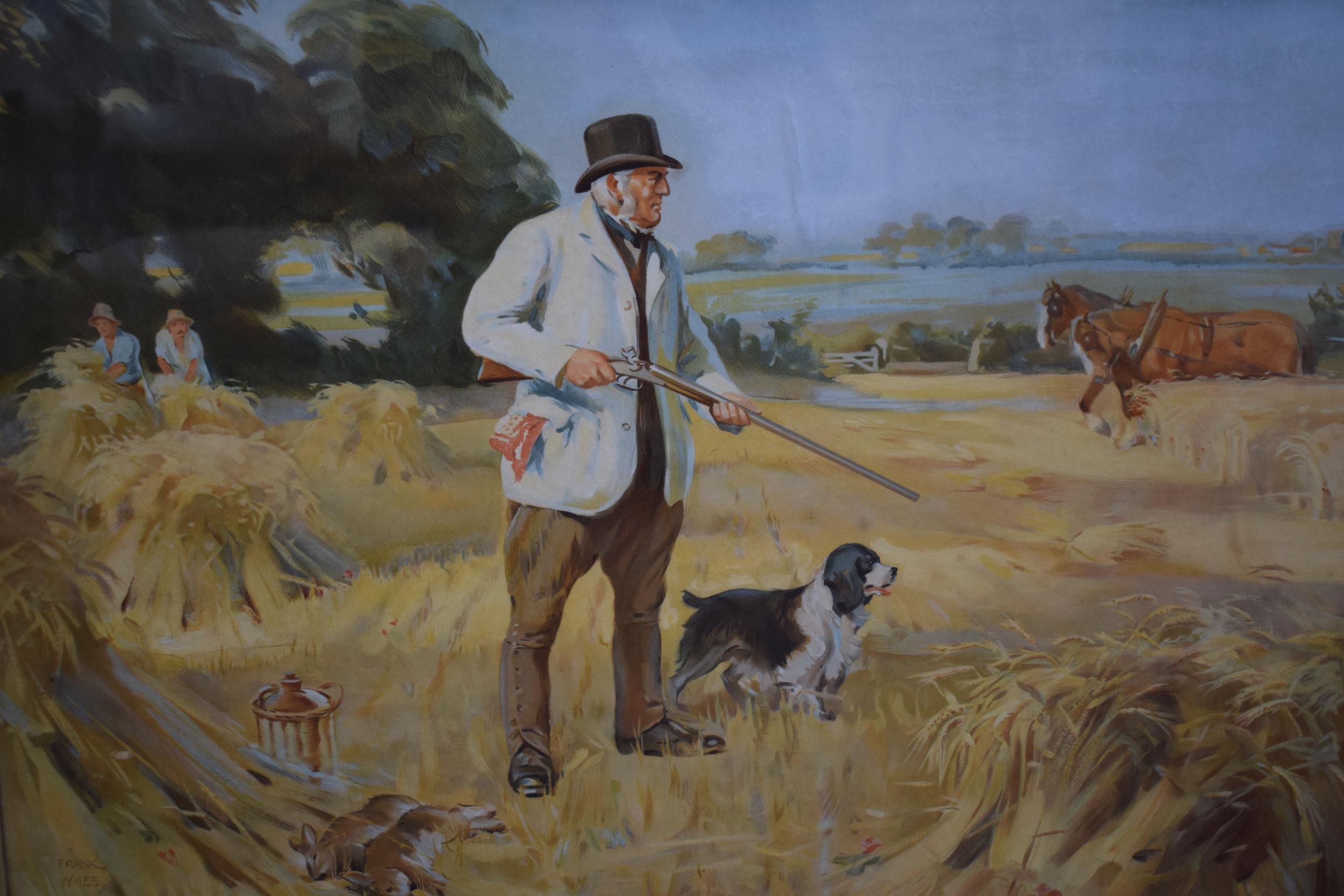 Frank Wiles (1881-1963) lithograph print of a harvest scene, in oak frame, glazed, 48cm x 74cm exc frame.
