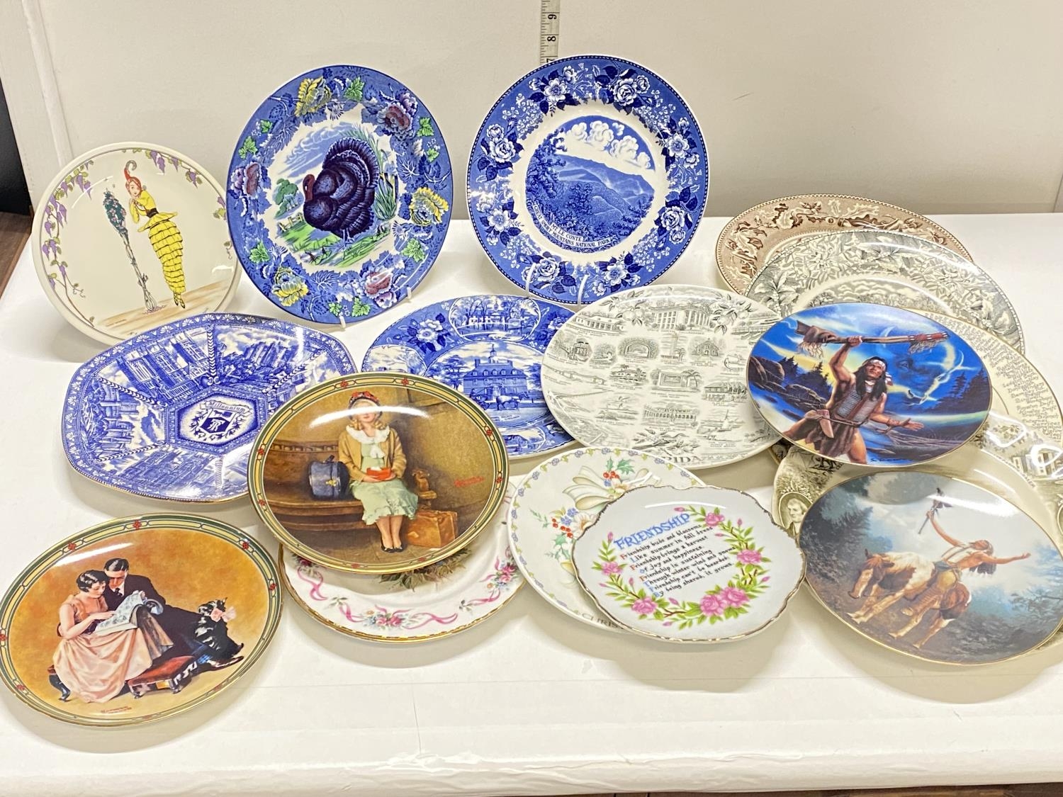 A job lot of assorted collectors plates including Norman Rockwell, shipping unavailable