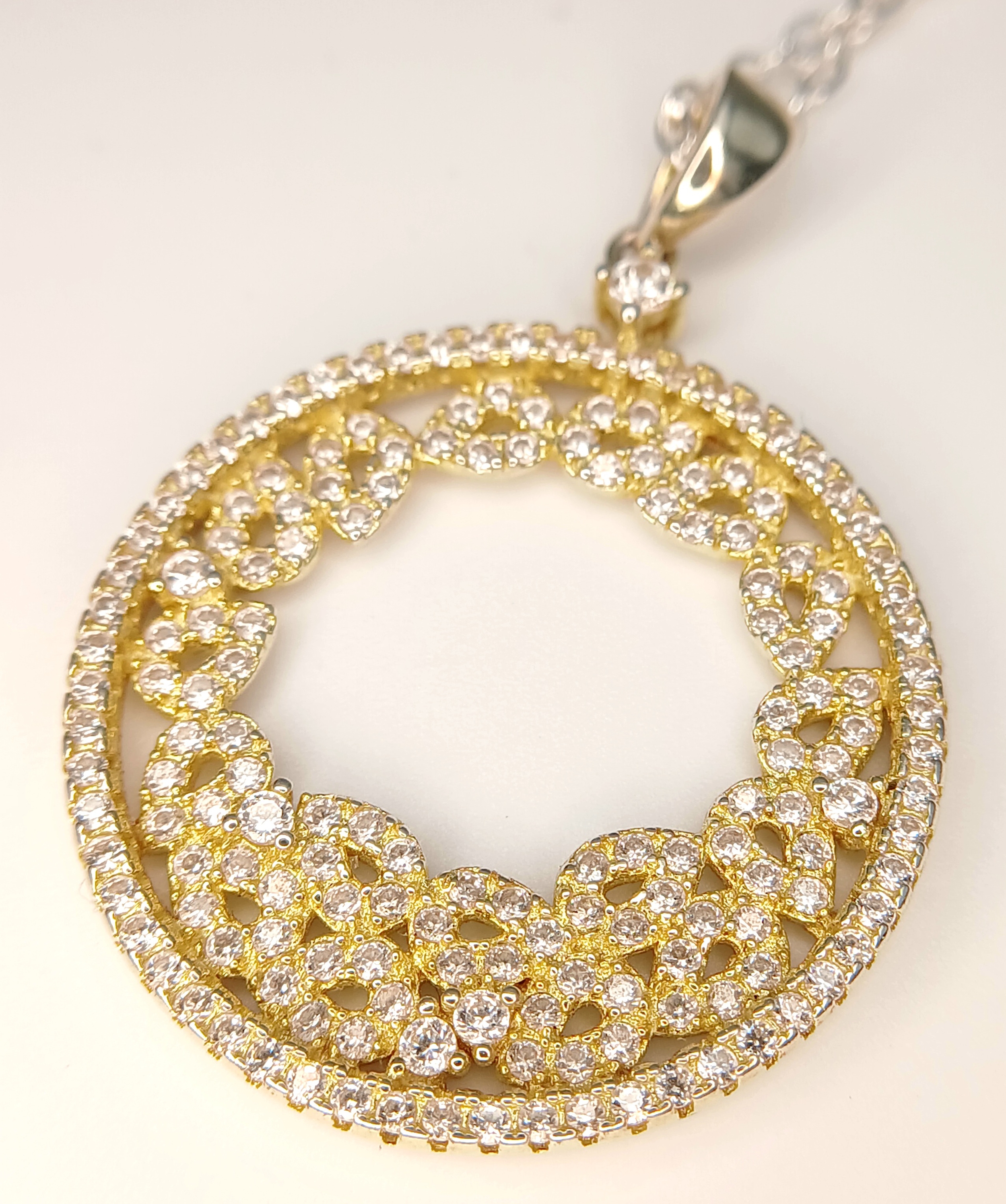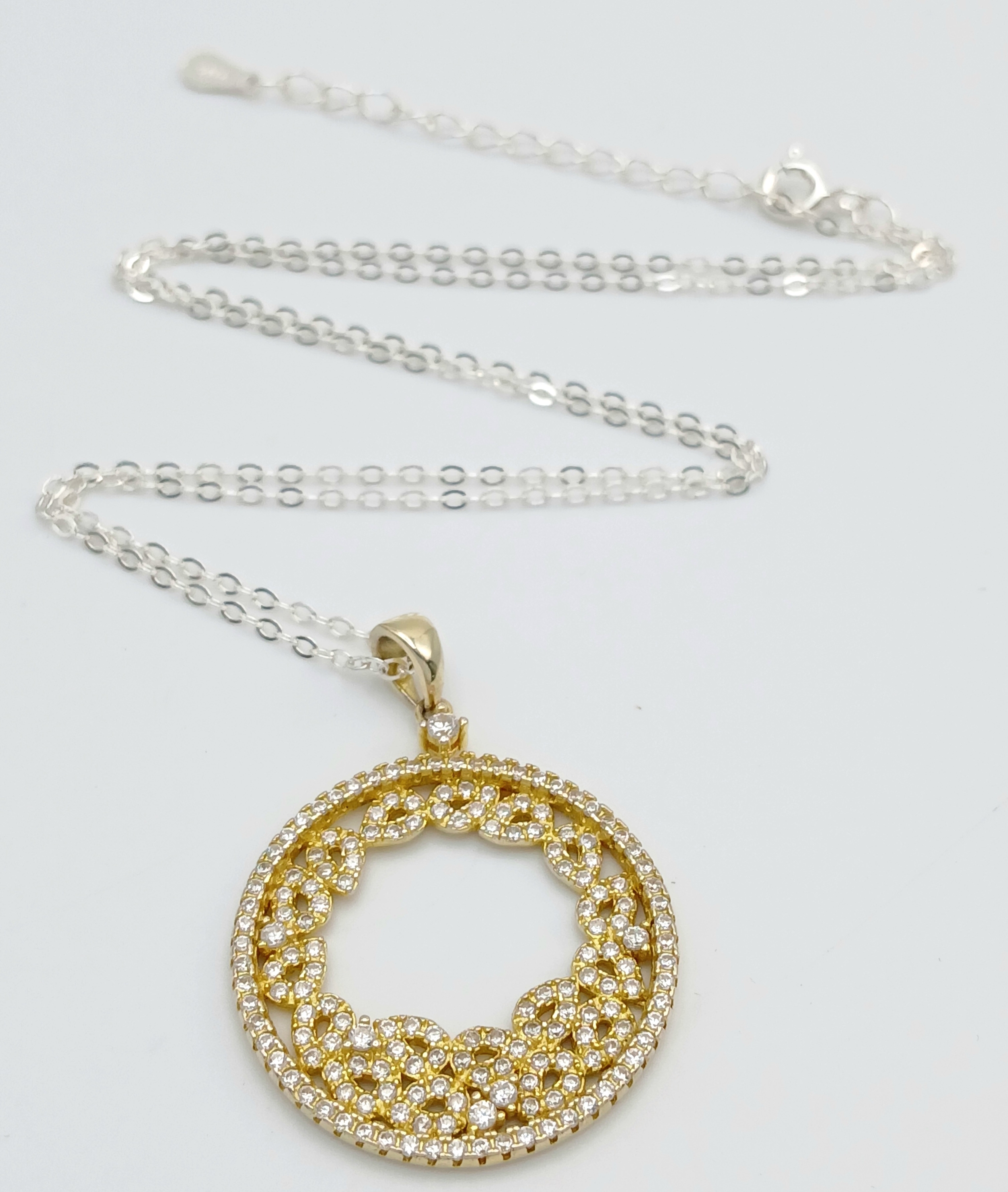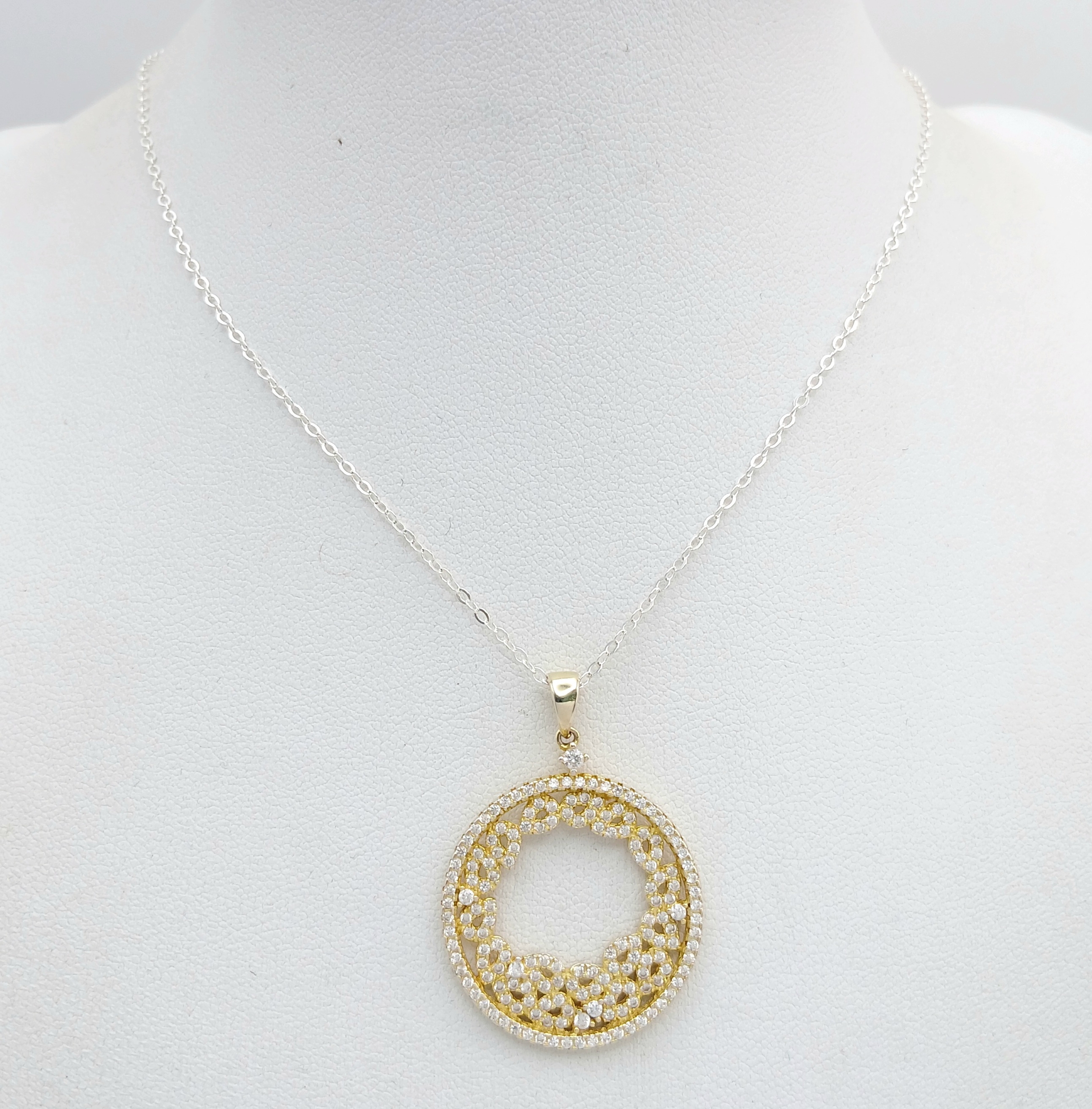 A Sterling Silver Gemstone Circle Pendant Necklace. Both Pendant and Necklace are Hallmarked 925. Approximate Length of a Necklace 44cm, Pendant 3.5cm. Total Weight 4.92 Grams.