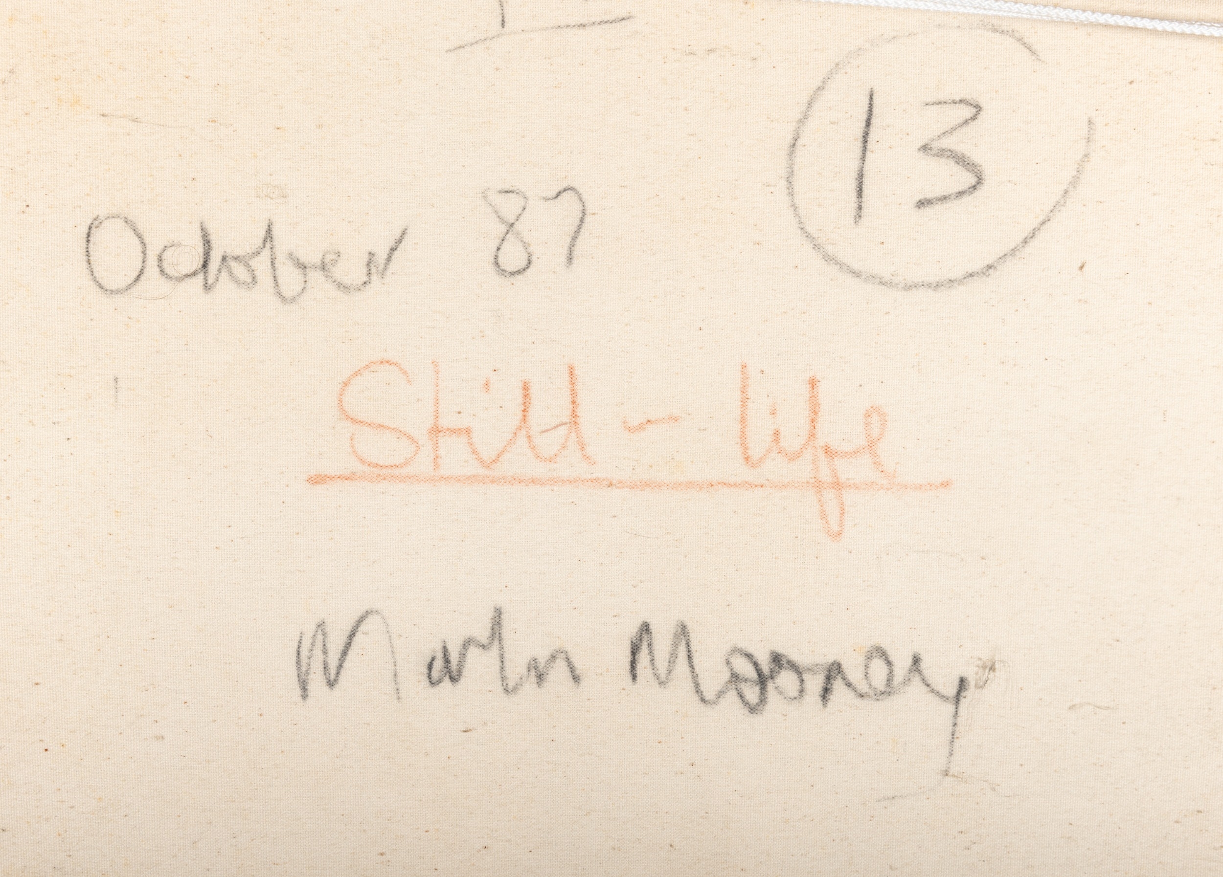 Martin Mooney (b.1960) Still Life (1987) Oil on canvas, 54.5 x 54.5cm (21½ x 21½) Signed and dated (19)'87 Provenance: Sale, these rooms, 1 April 2015, lot 150
