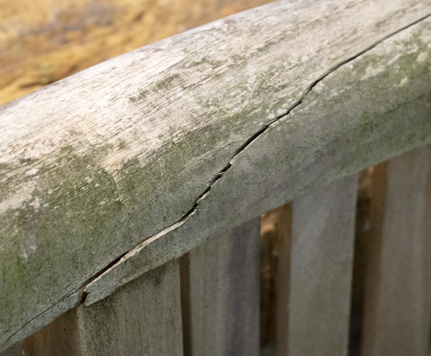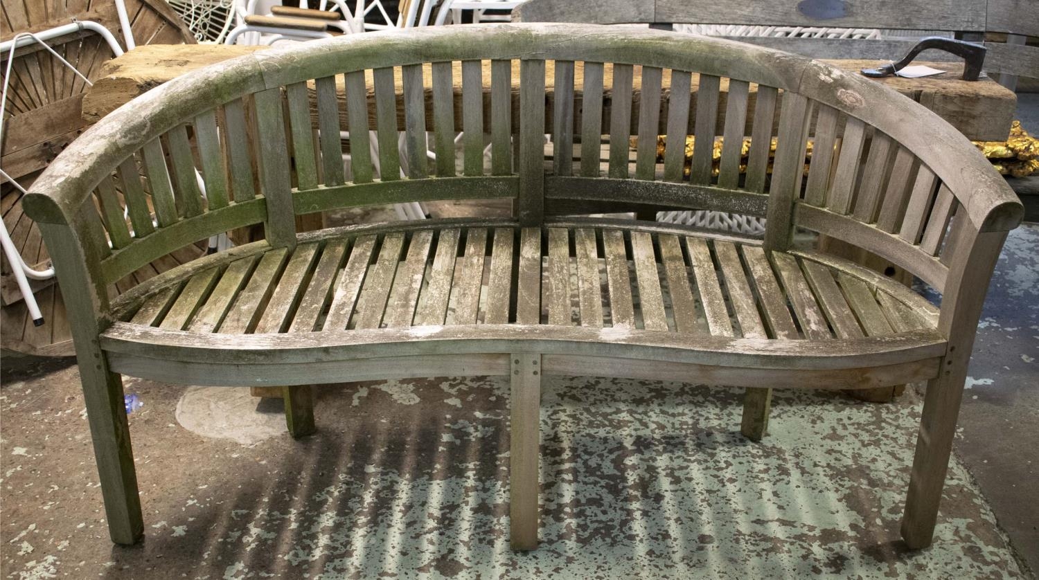 BANANA GARDEN BENCH, 160cm W, weathered teak.