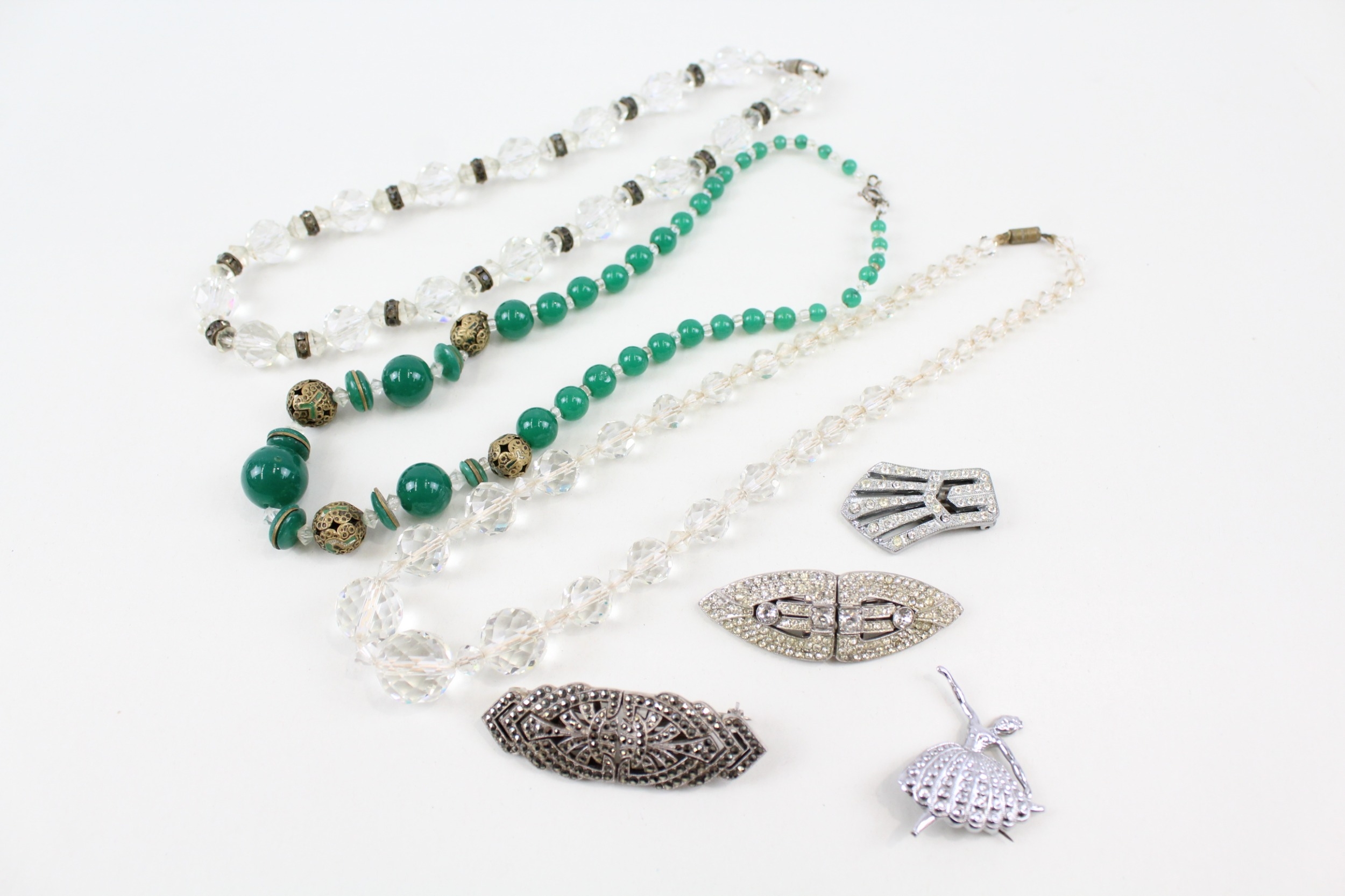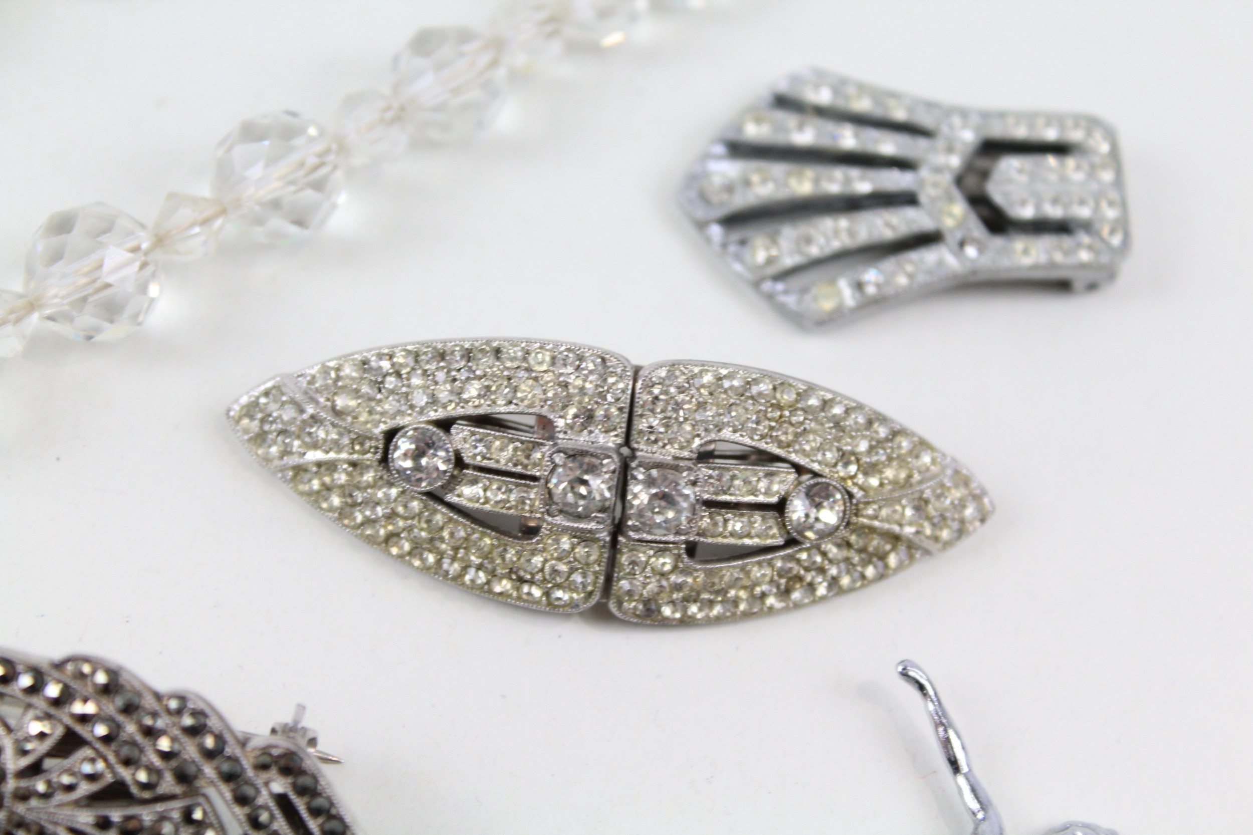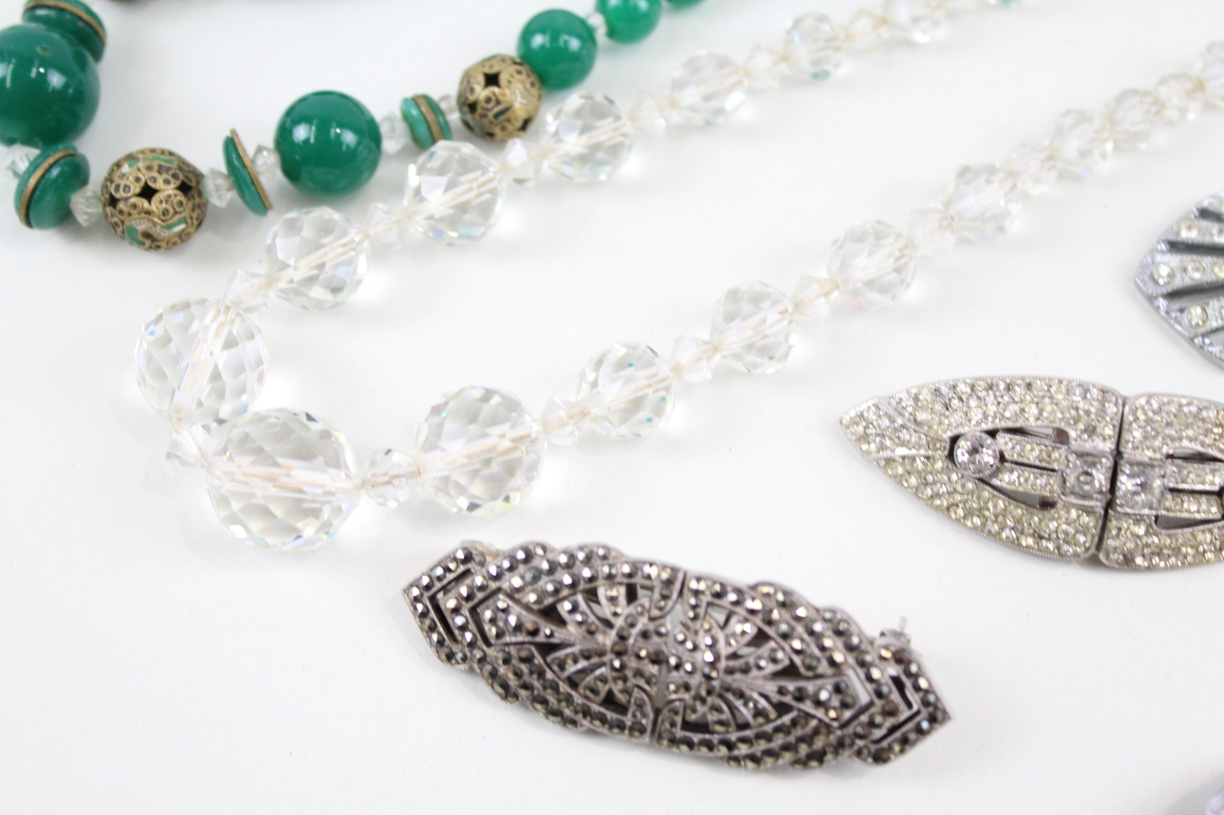 Collection of Art Deco Jewellery inc. Staybrite, Marcasite, Antique Glass 197g