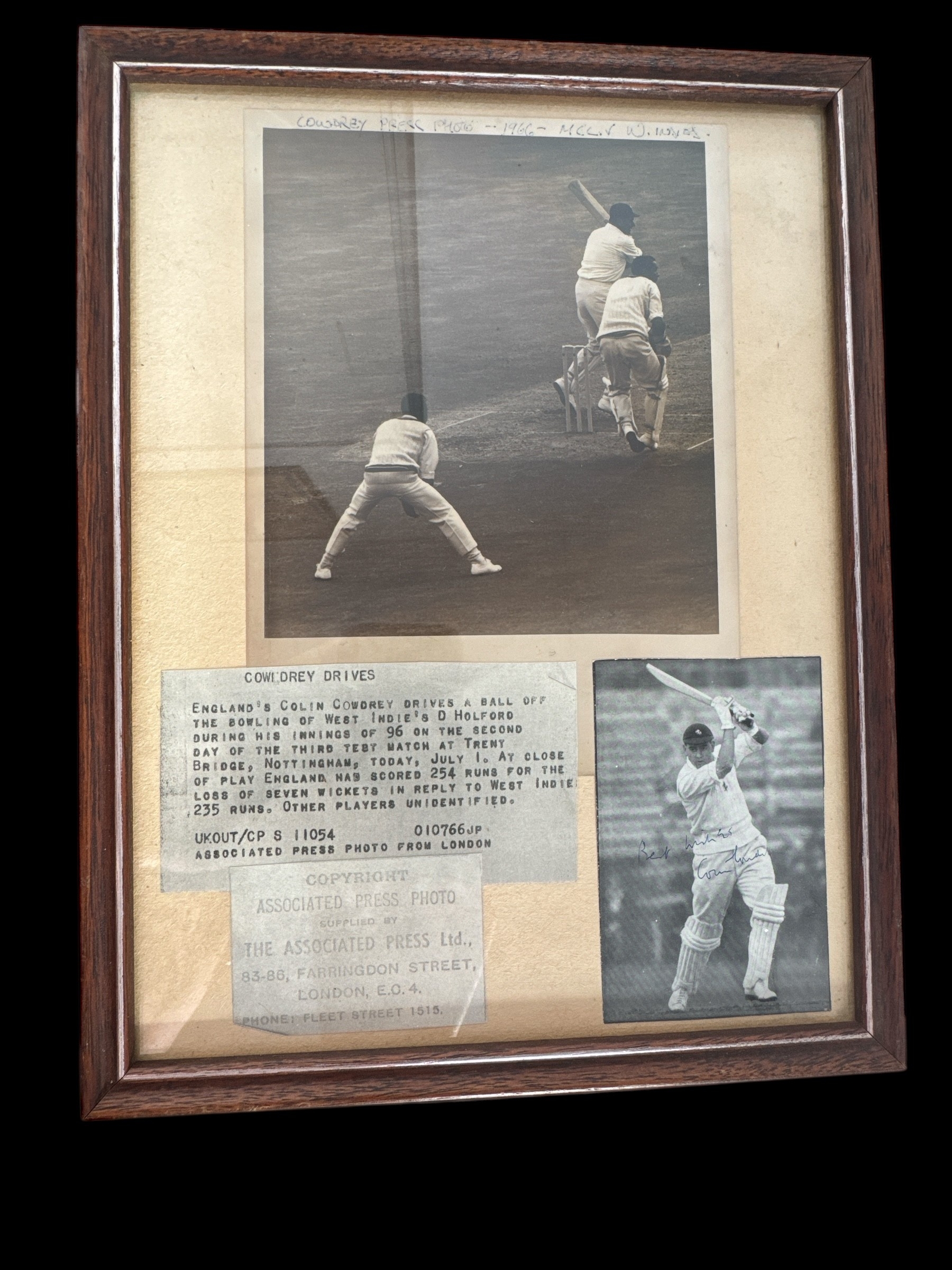 Colin Cowdrey signed vintage black and white press photo. Mounted and framed, Measures 11x10 inch.