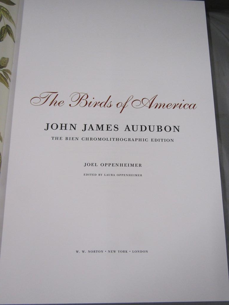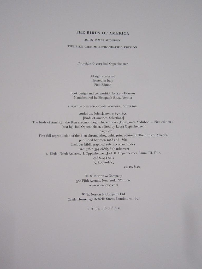 THE BIRDS OF AMERICA BY JOHN JAMES AUDUBON BEING THE FIRST EDITION PRINTED IN ITALY BY JOEL OPPENHEIMER, 2013
