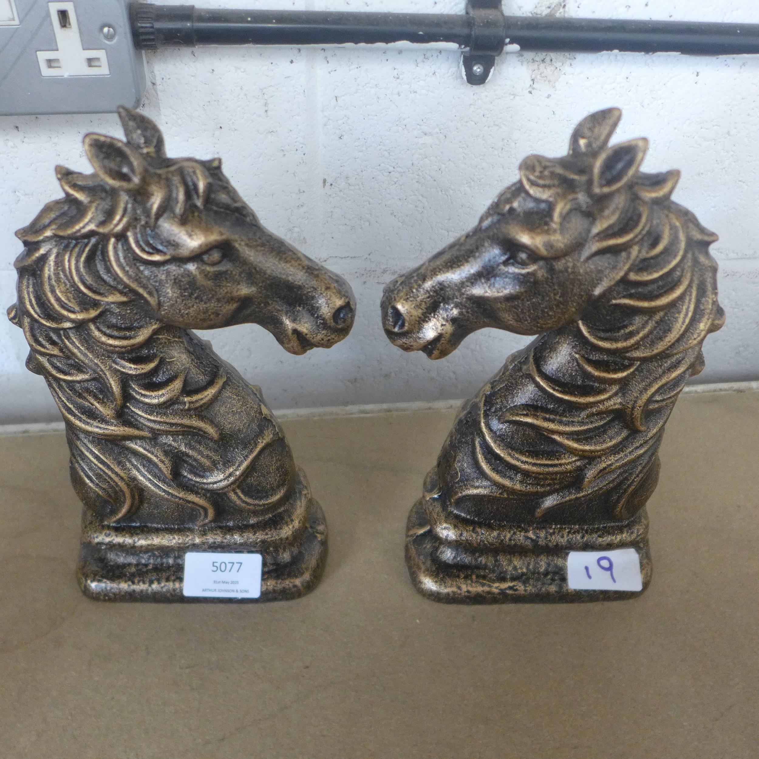 A pair of cast metal horse head bookends *This lot is subje...