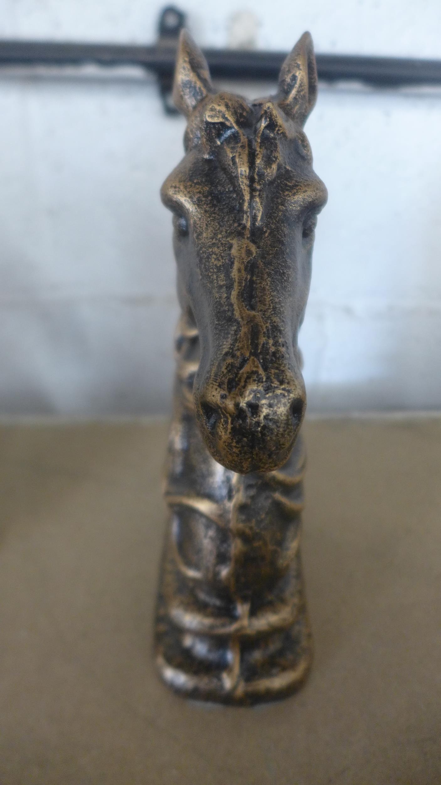 A pair of cast metal horse head bookends *This lot is subject to VAT