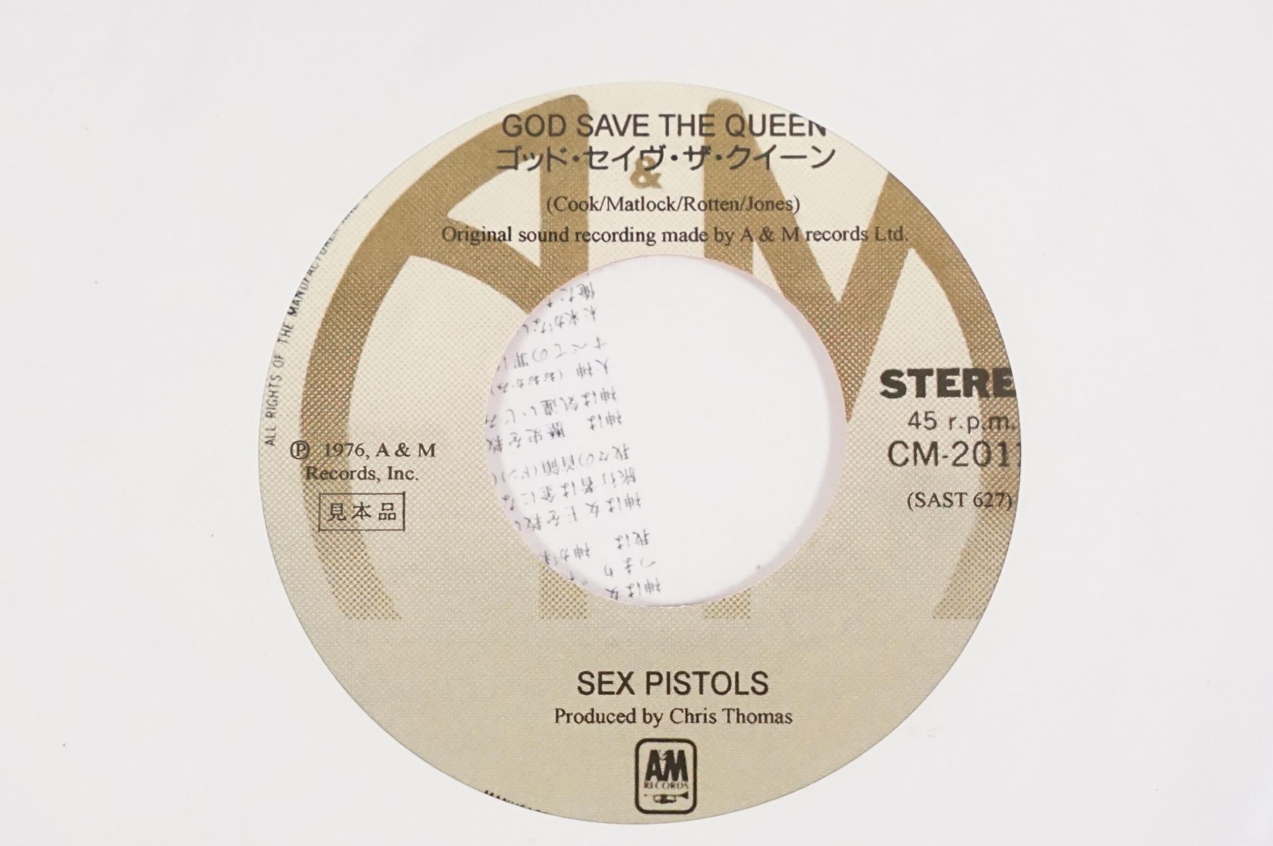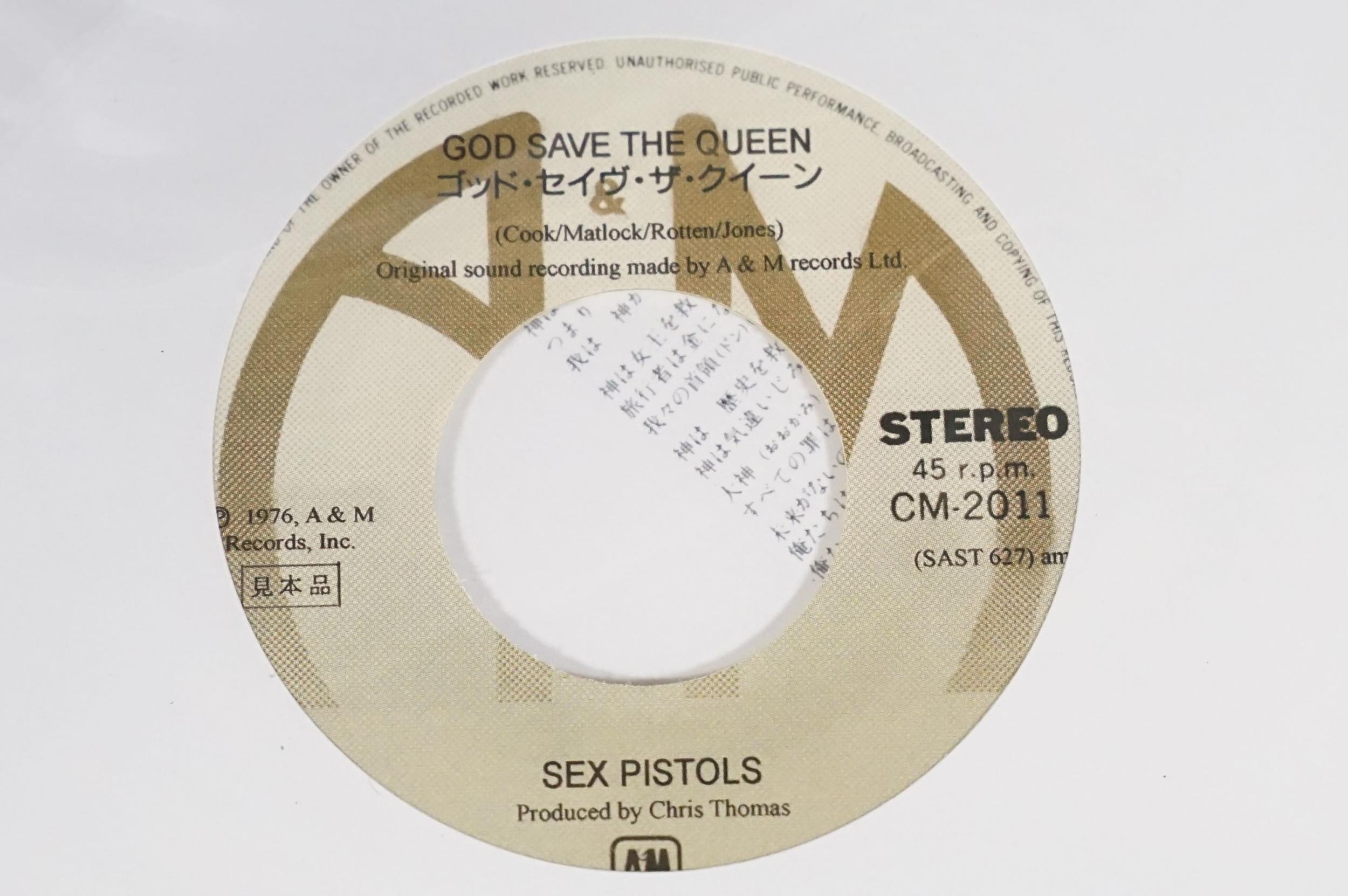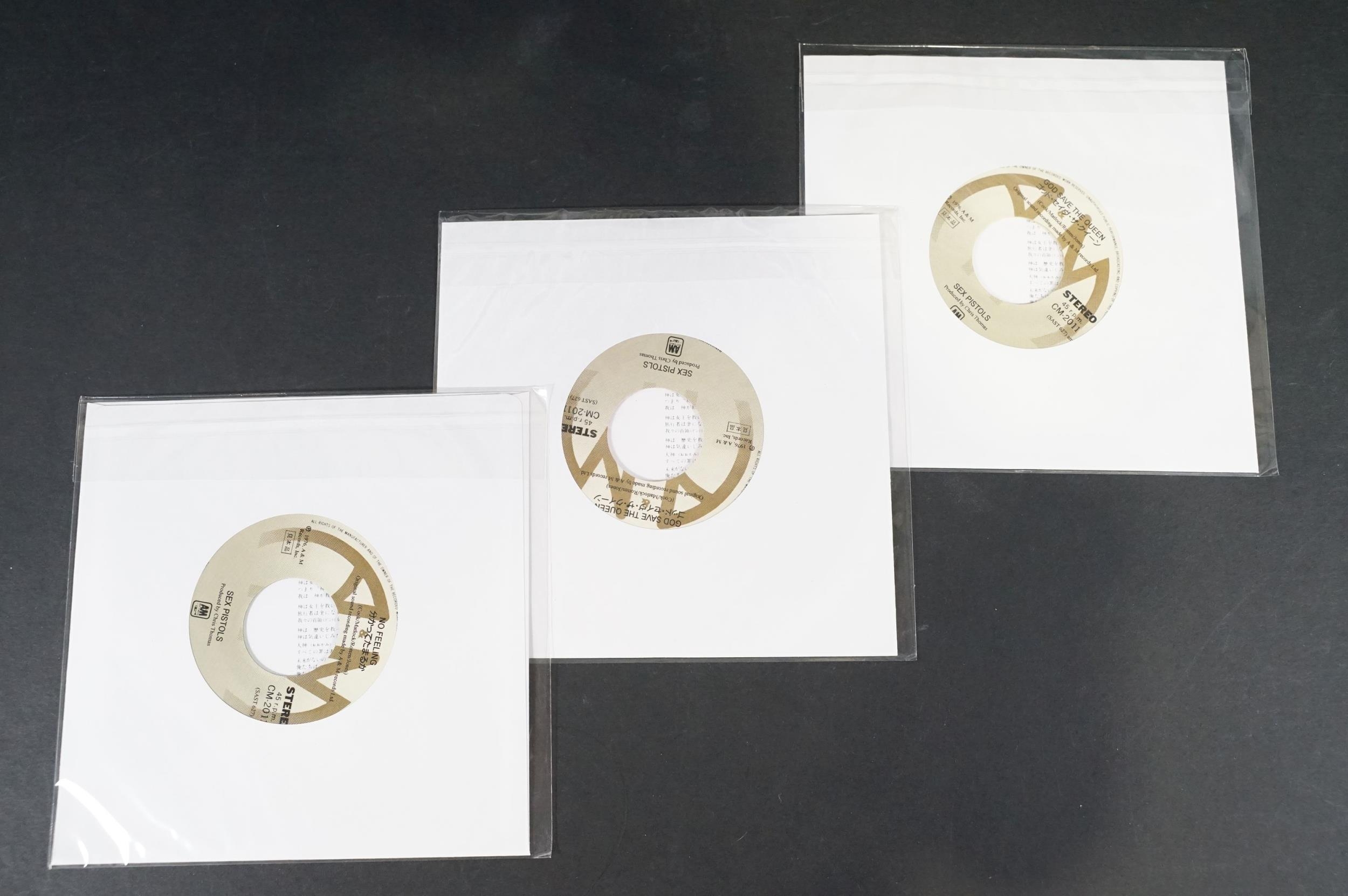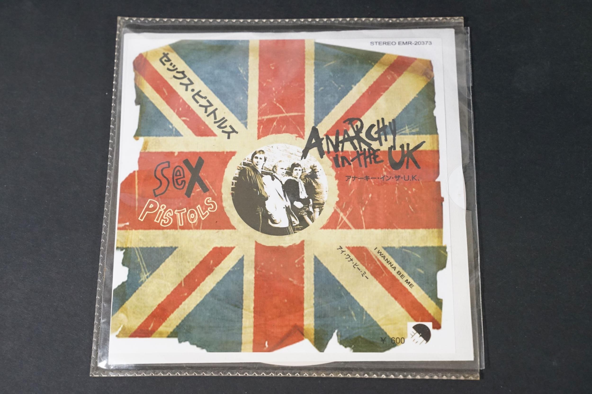 Vinyl - Punk - Sex Pistols, 4 Japanese late 1980’s coloured vinyl private pressing 7” singles, to include: God Save The Queen (green vinyl, yellow vinyl and purple marbled vinyl), I Wanna Be Me (light pink / cream vinyl), all come with insert picture sleeves and are EX+