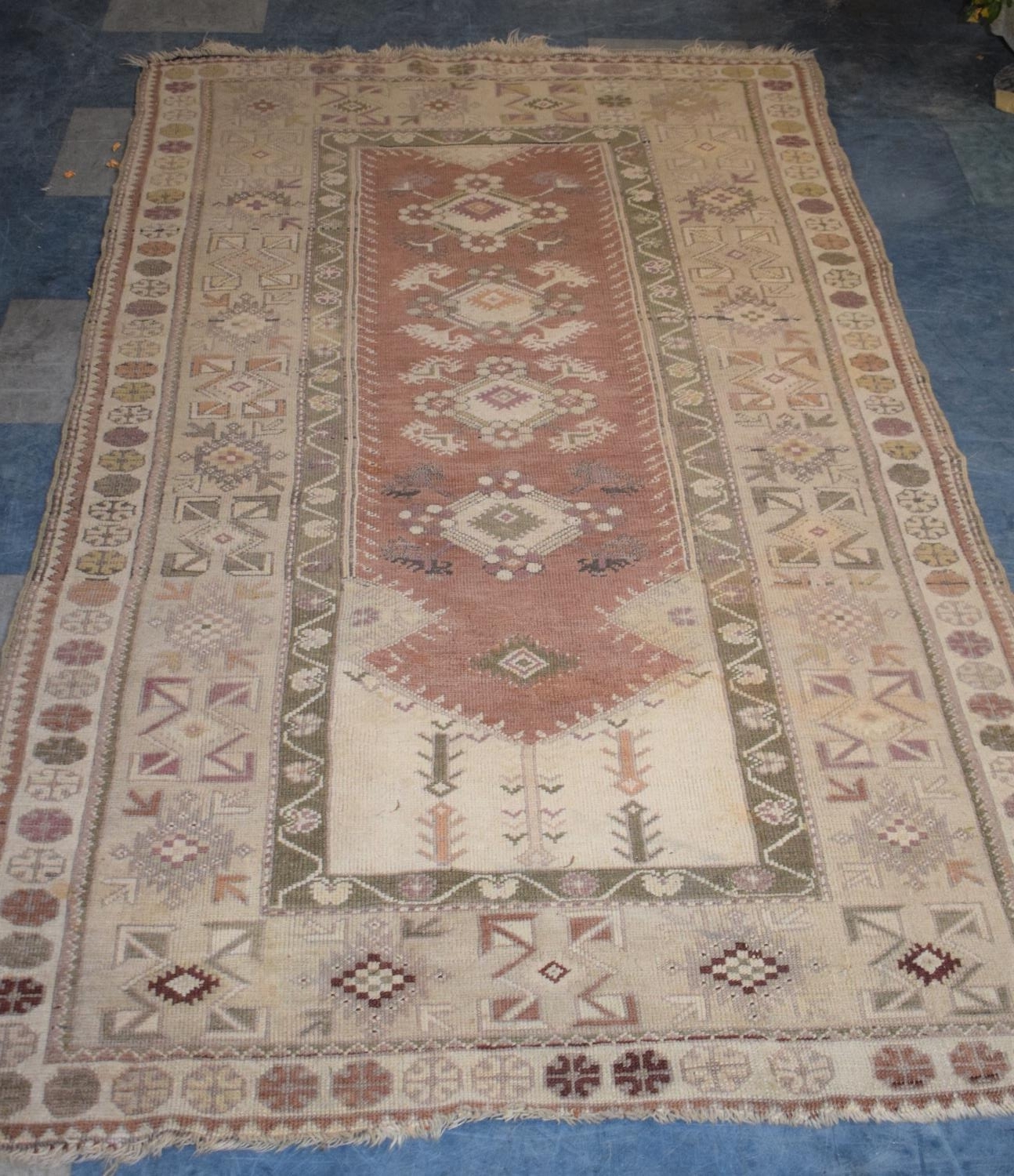 A Patterned Woollen Rug, 218 x 121cms