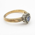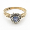 9ct gold sapphire and moissanite heart halo ring (2.7g) Size N