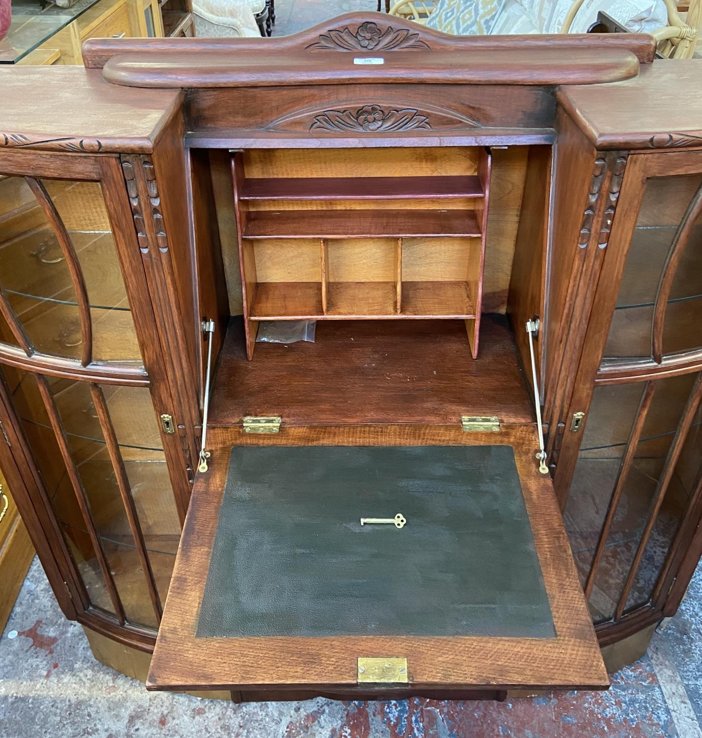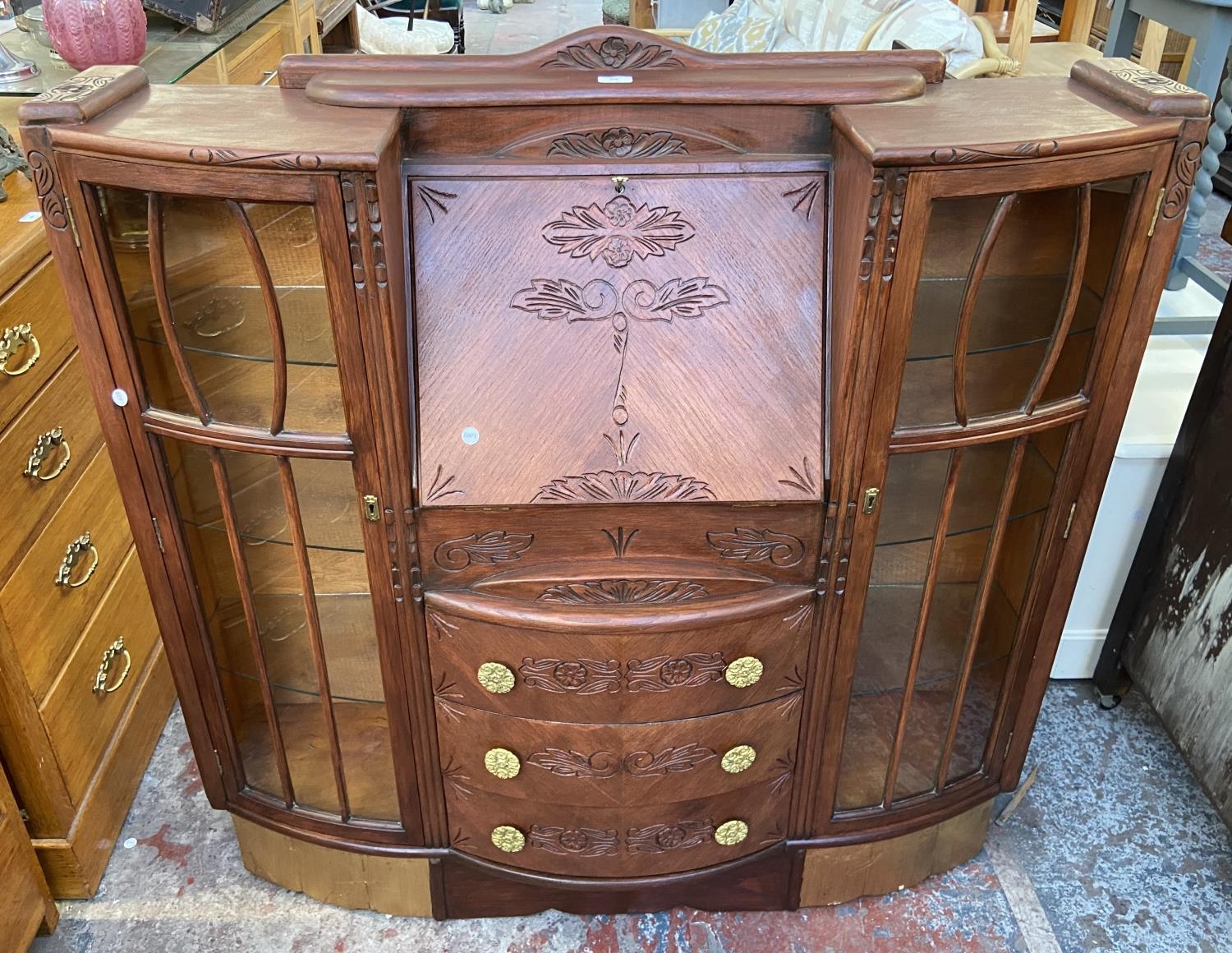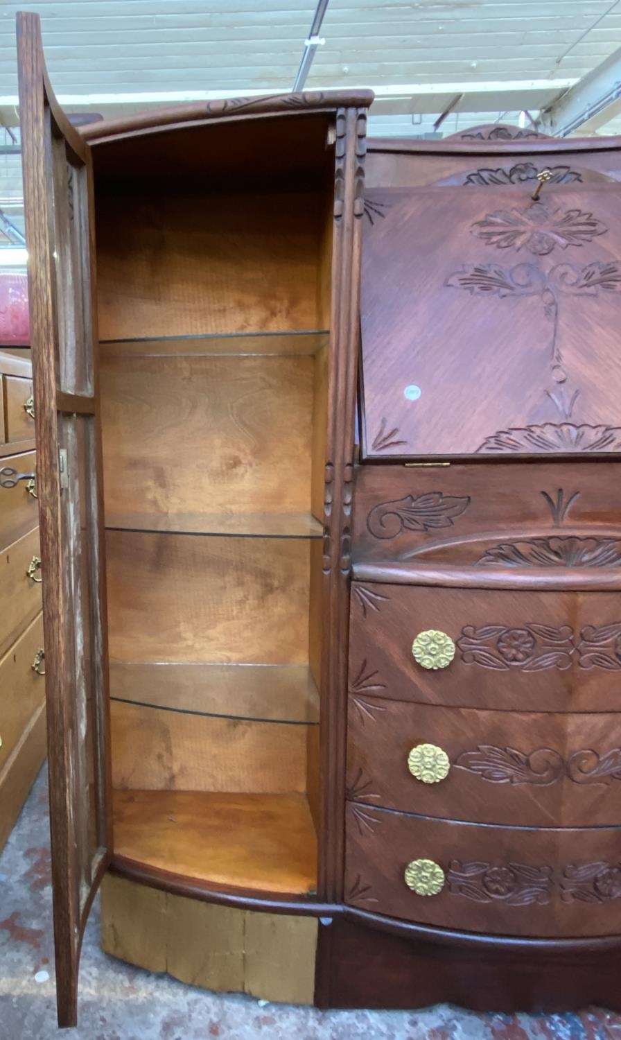 An early/mid 20th century stained and carved oak side by side bureau bookcase - approx. 122cm high x 122cm wide x 35cm deep