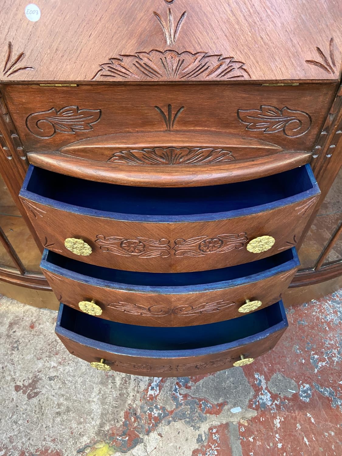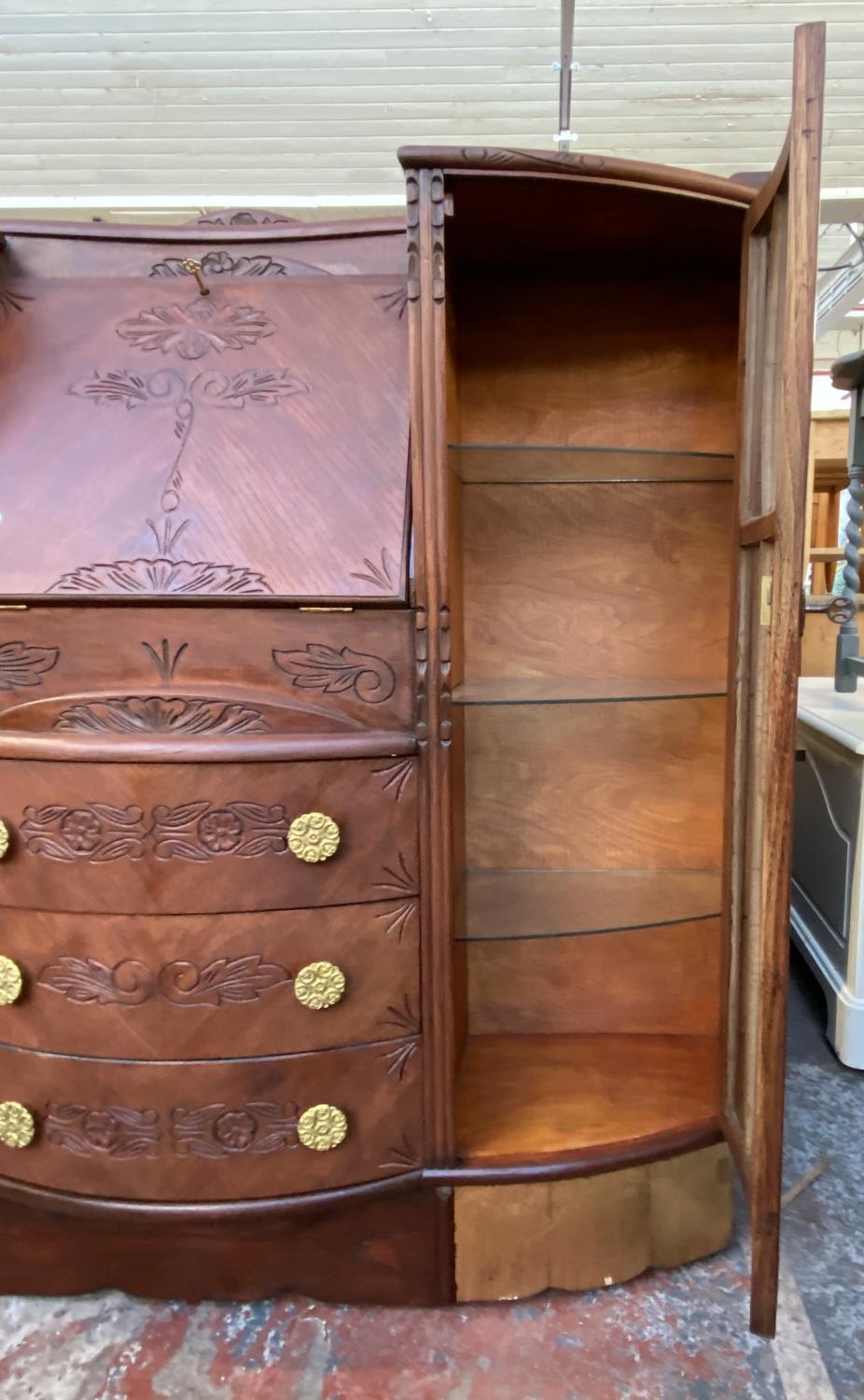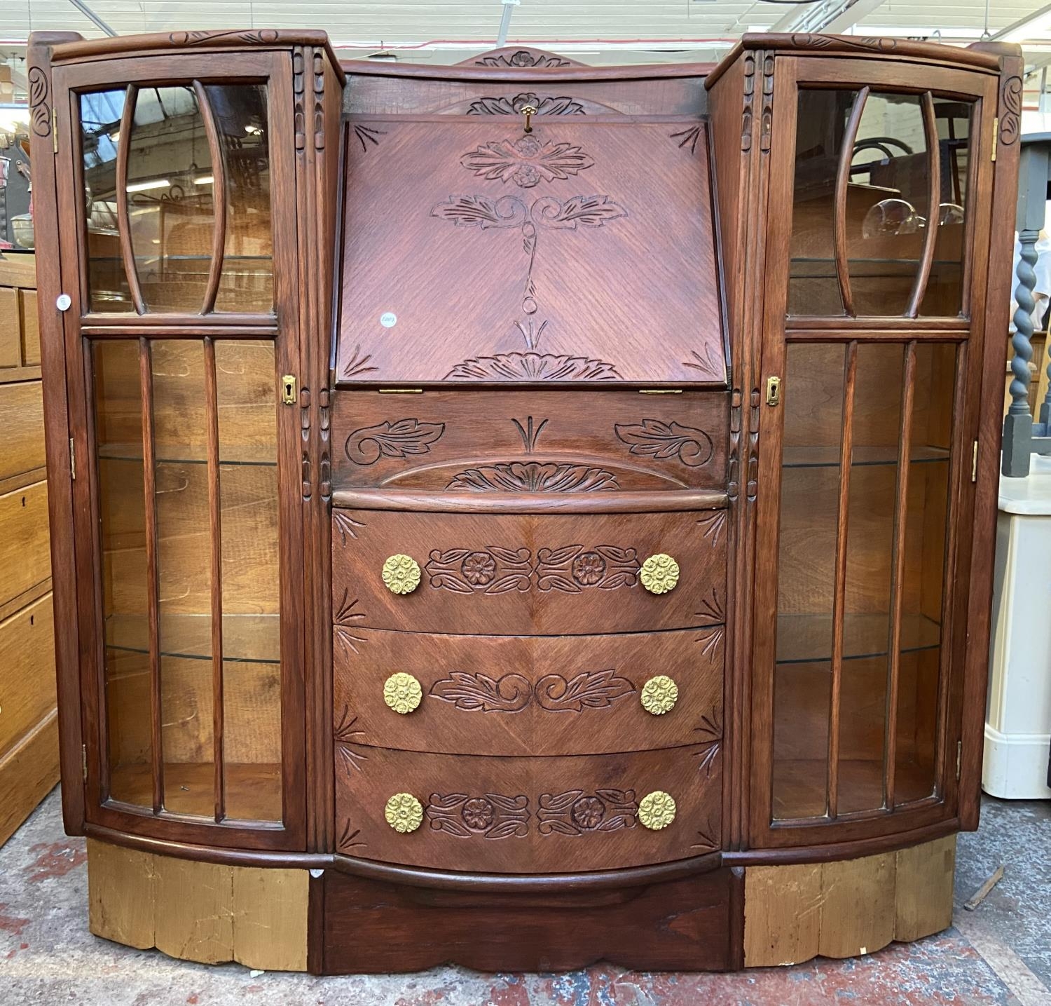An early/mid 20th century stained and carved oak side by side bureau bookcase - approx. 122cm high x 122cm wide x 35cm deep