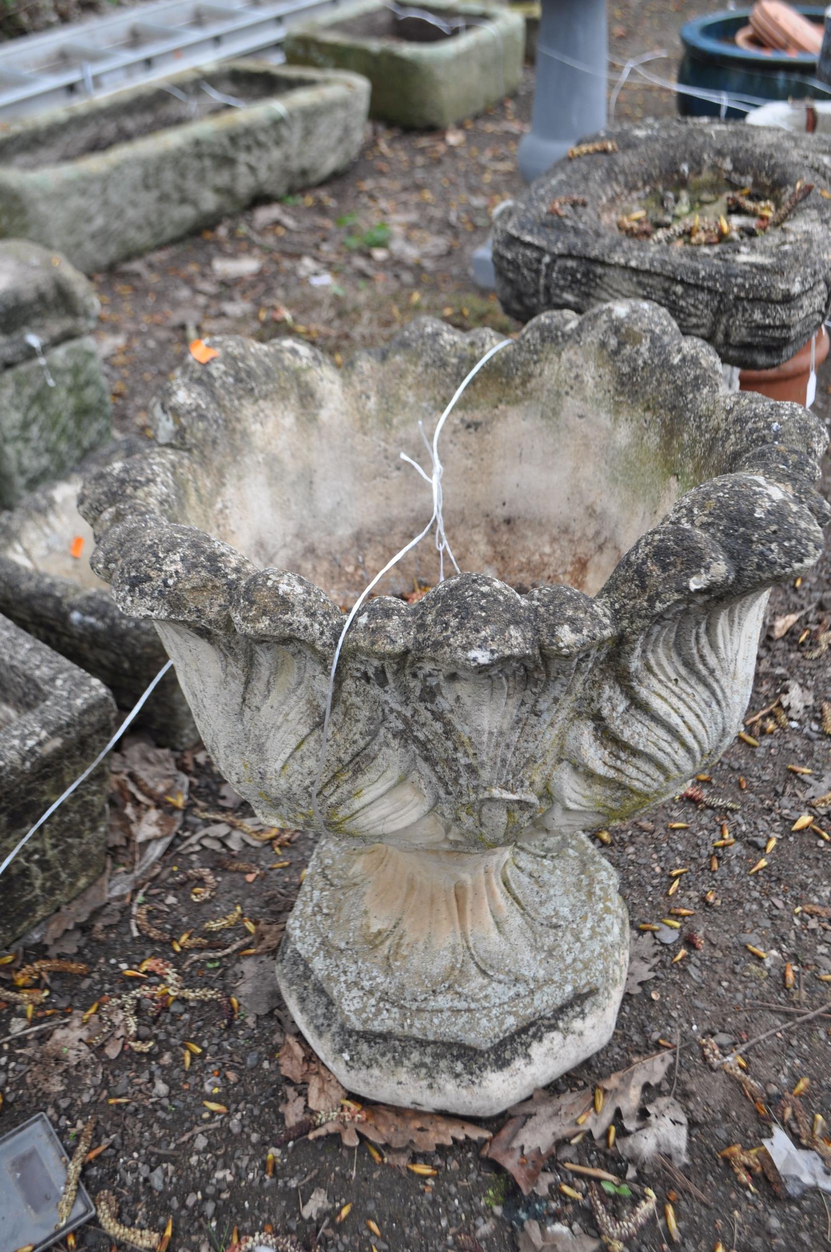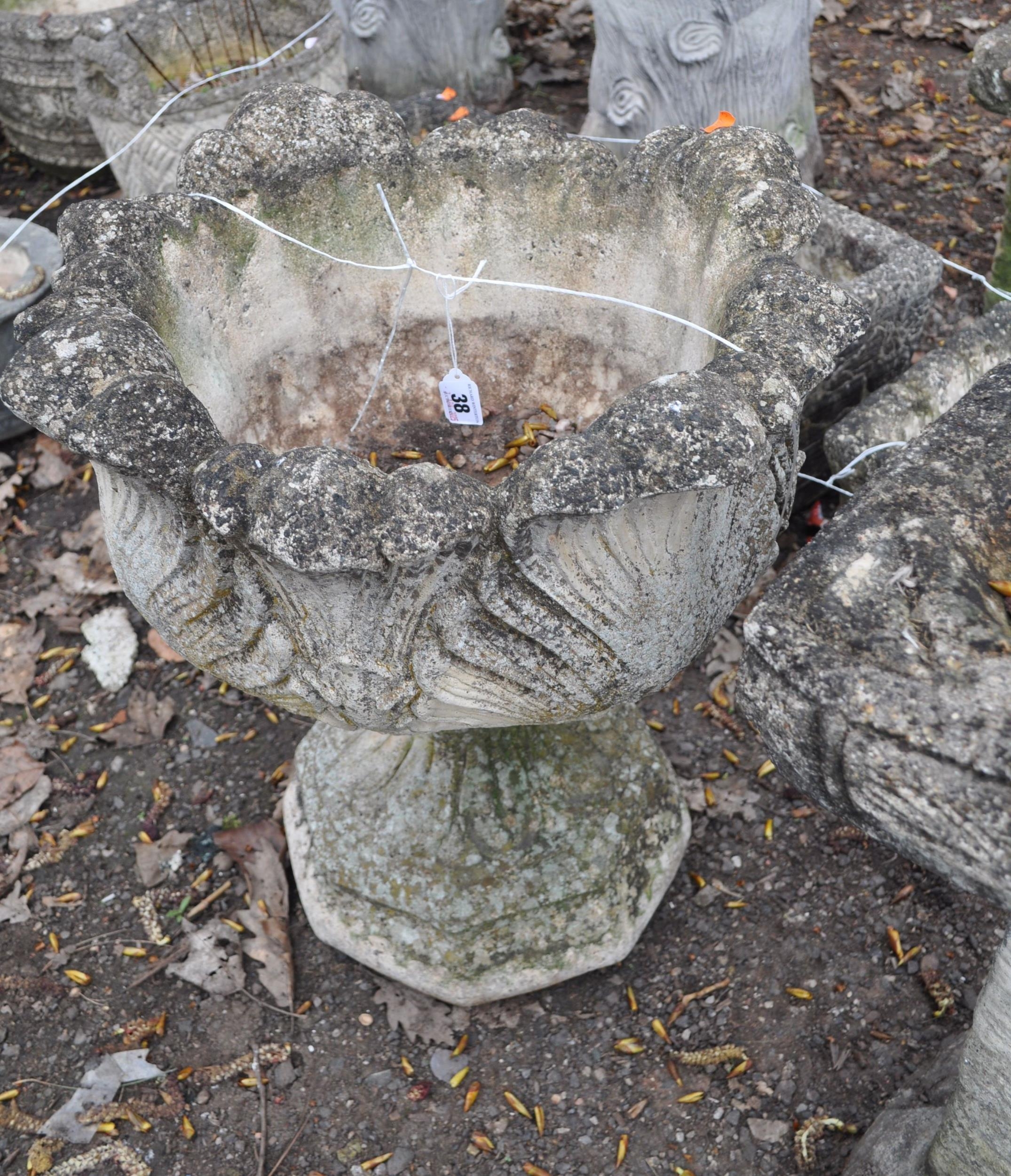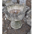 A MODERN CONCRETE GARDEN URN, constructed in two pieces with acanthus leaf detail to bowl