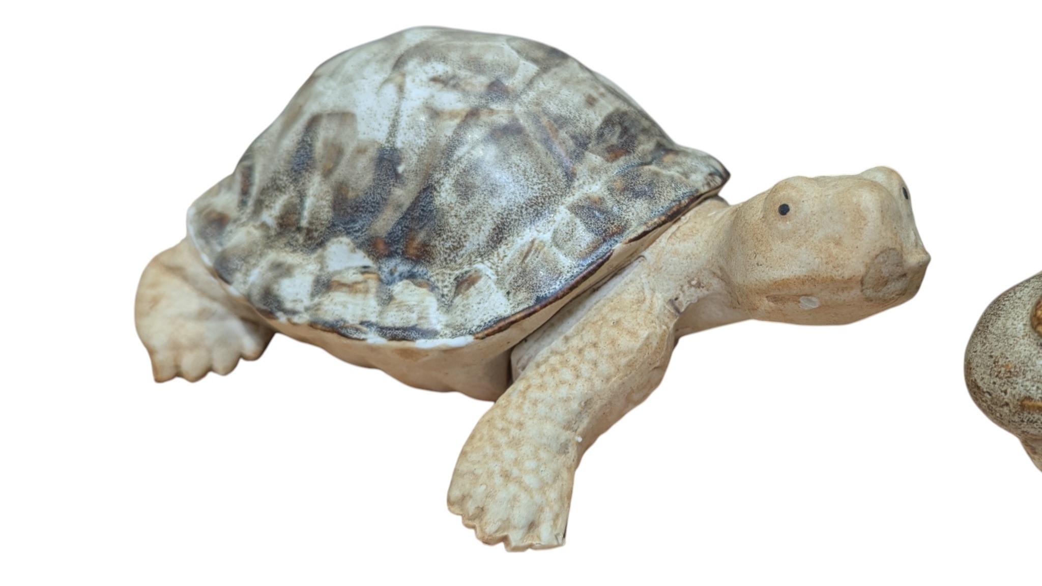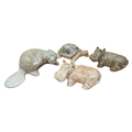 John Bourdeaux Pottery - Four contemporary ceramic Hippo sculptures. Comprising of two hippos, a turtle, and an otter figure. Some of which have been glazed with Scillion Granite. All with the makers mark. Largest piece measuring approx. 11cm tall.