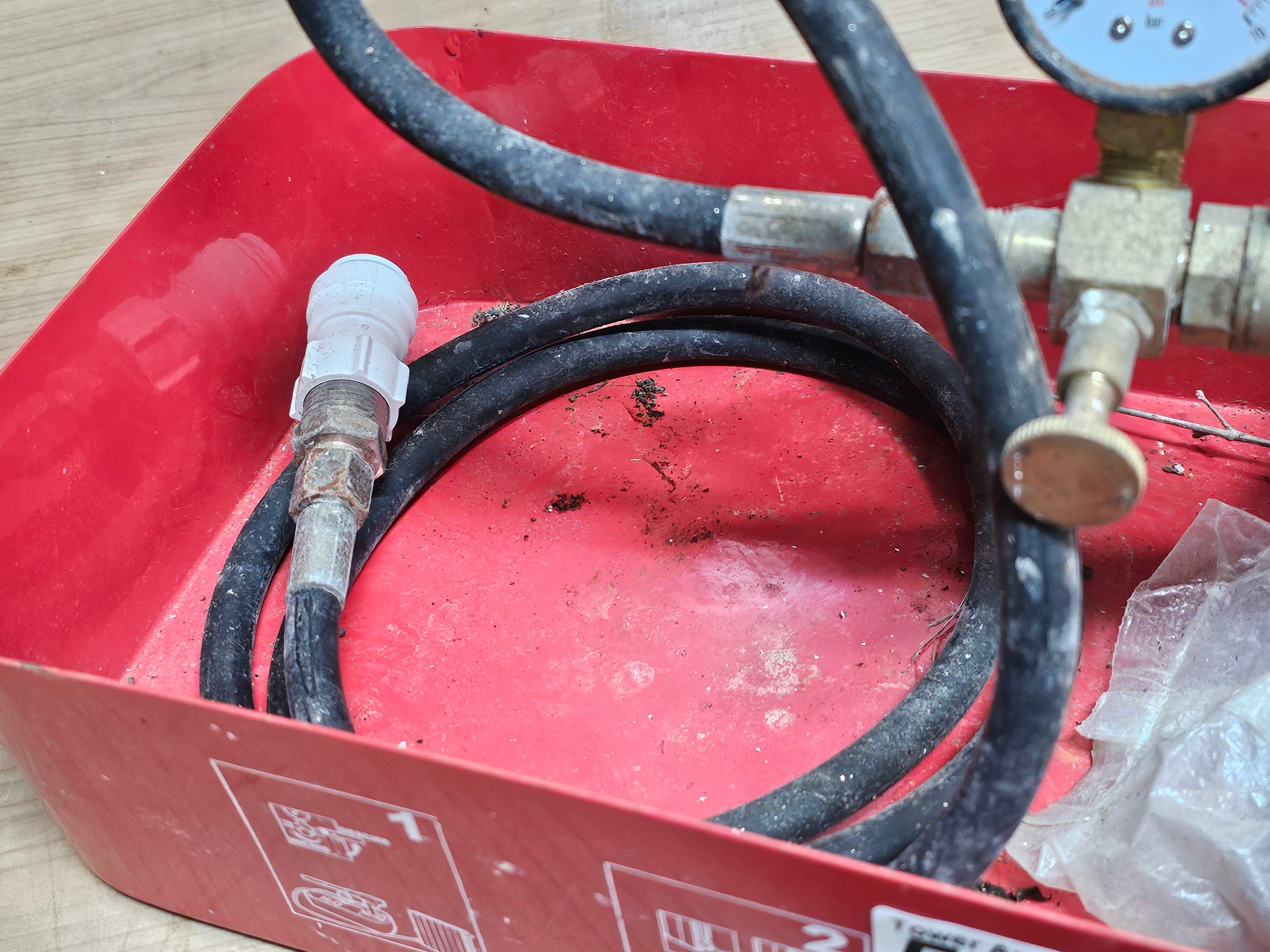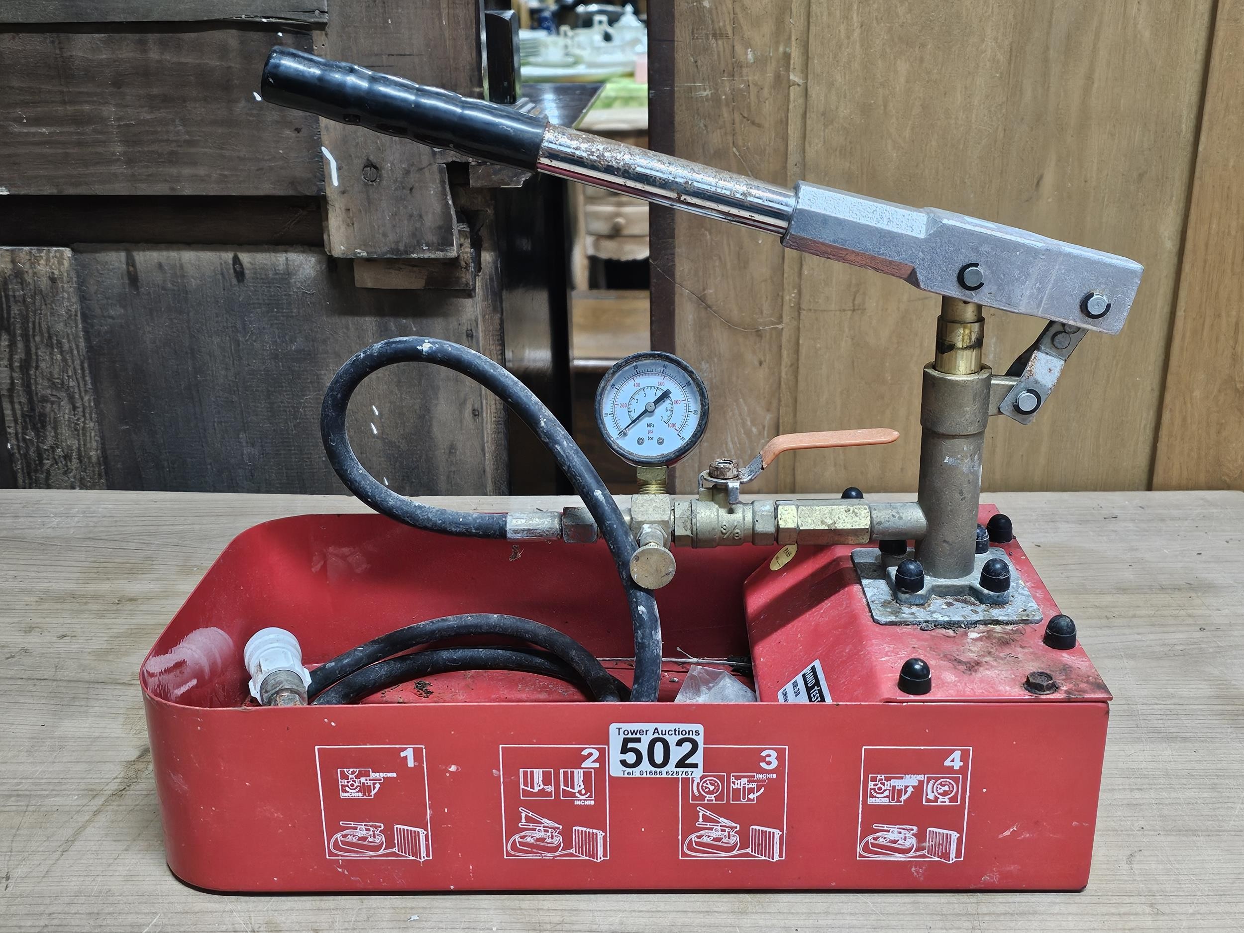 Hand test pump kit for testing the pressure in central heating, model number 20-50, has a pressure rating of upto 70 bar, appears to be complete