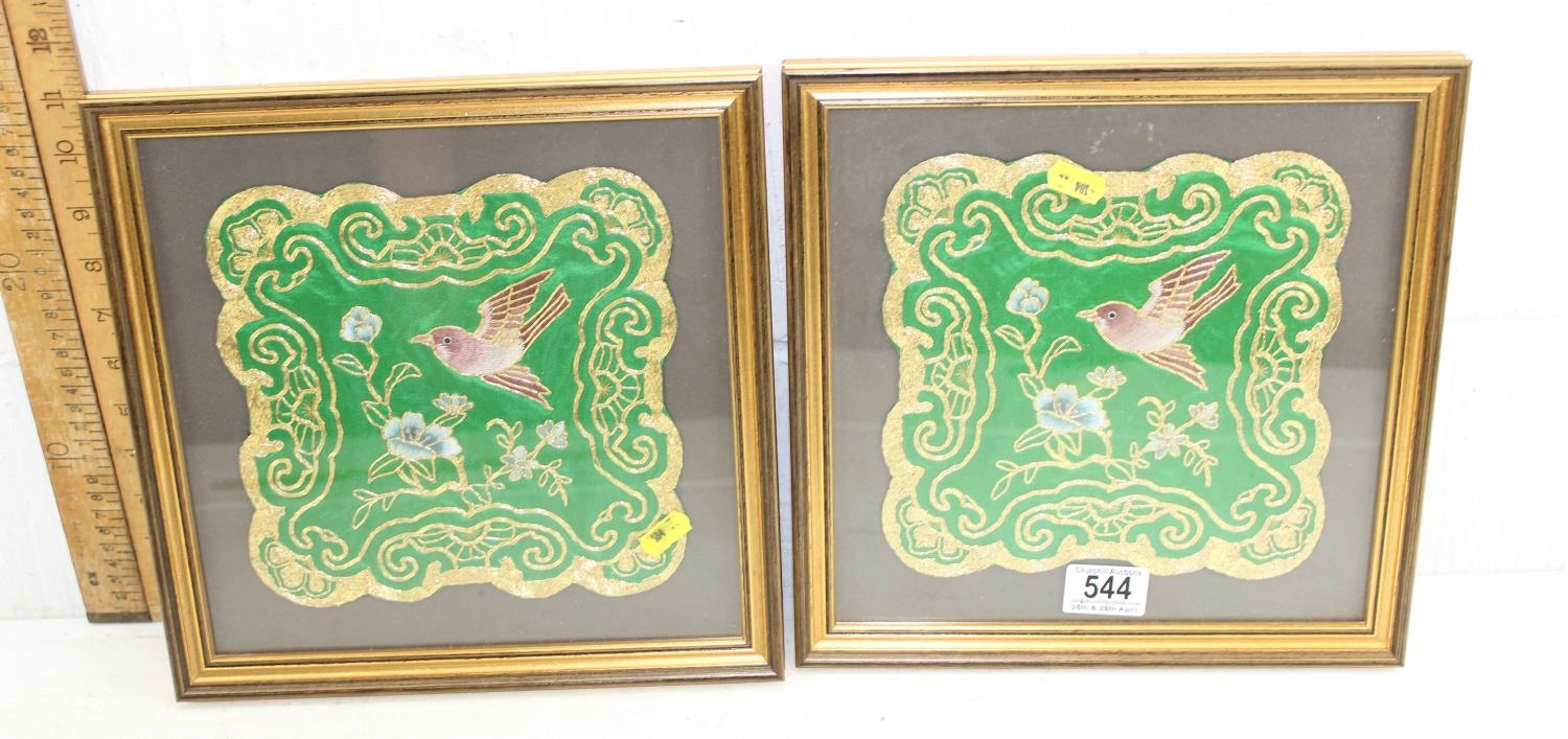 2 framed Chinese embroidered panels