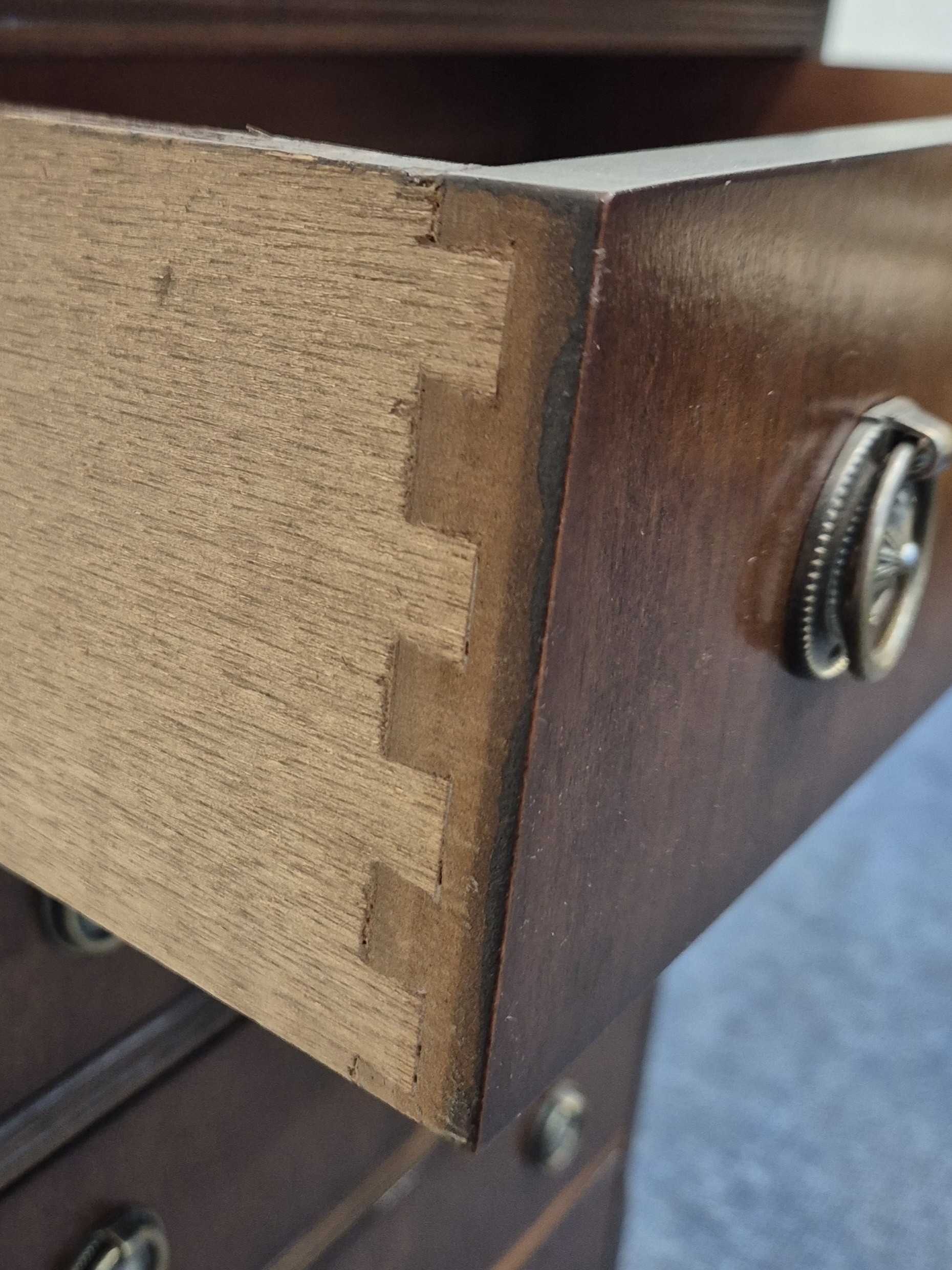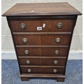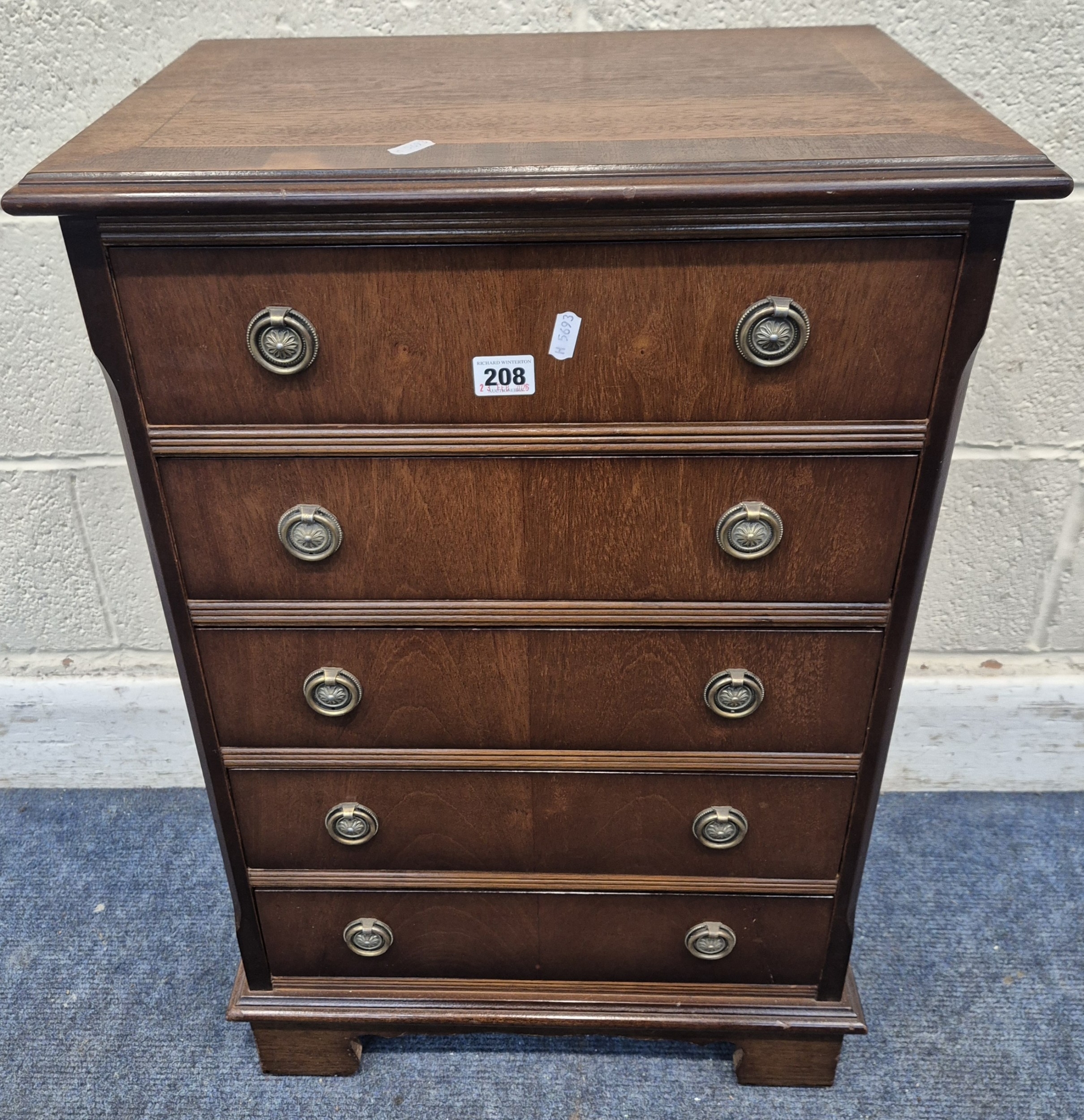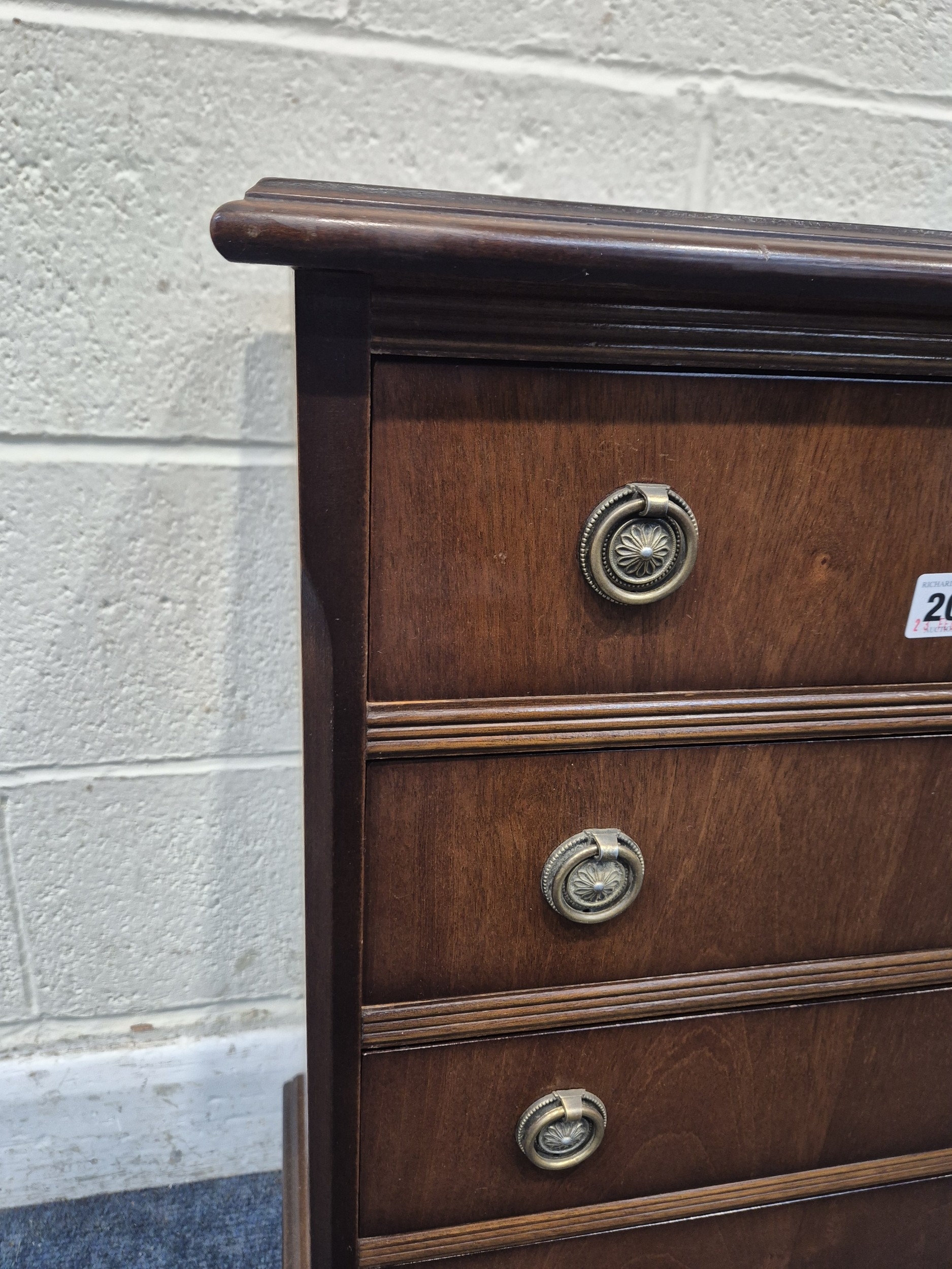 A REPRODUCTION MAHOGANY CHEST OF FIVE DRAWERS, raised on bracket feet, width 49cm x depth 33cm x height 76cm, condition report: overall good condition