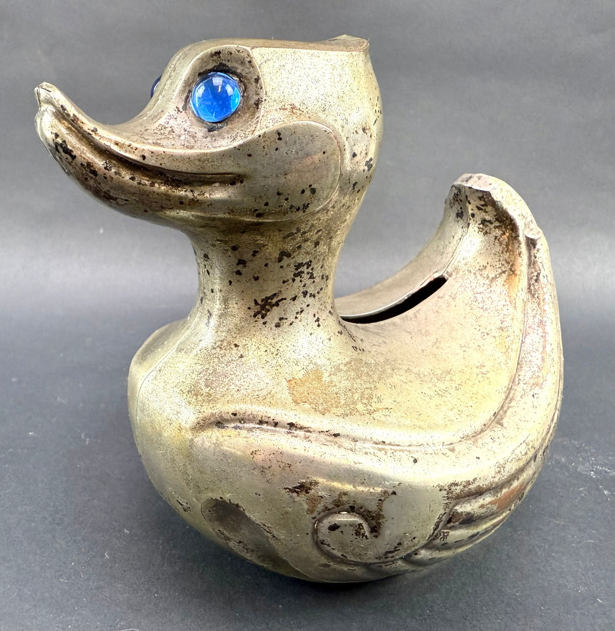 Falstaff silver plated duck money box with stopper