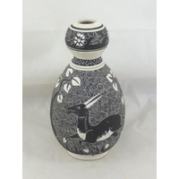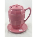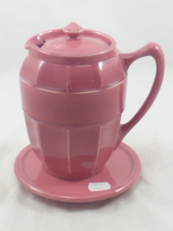 Tea Pot on Circular Stand with Tonal Red Crystalline Glaze and Impressed England on Base