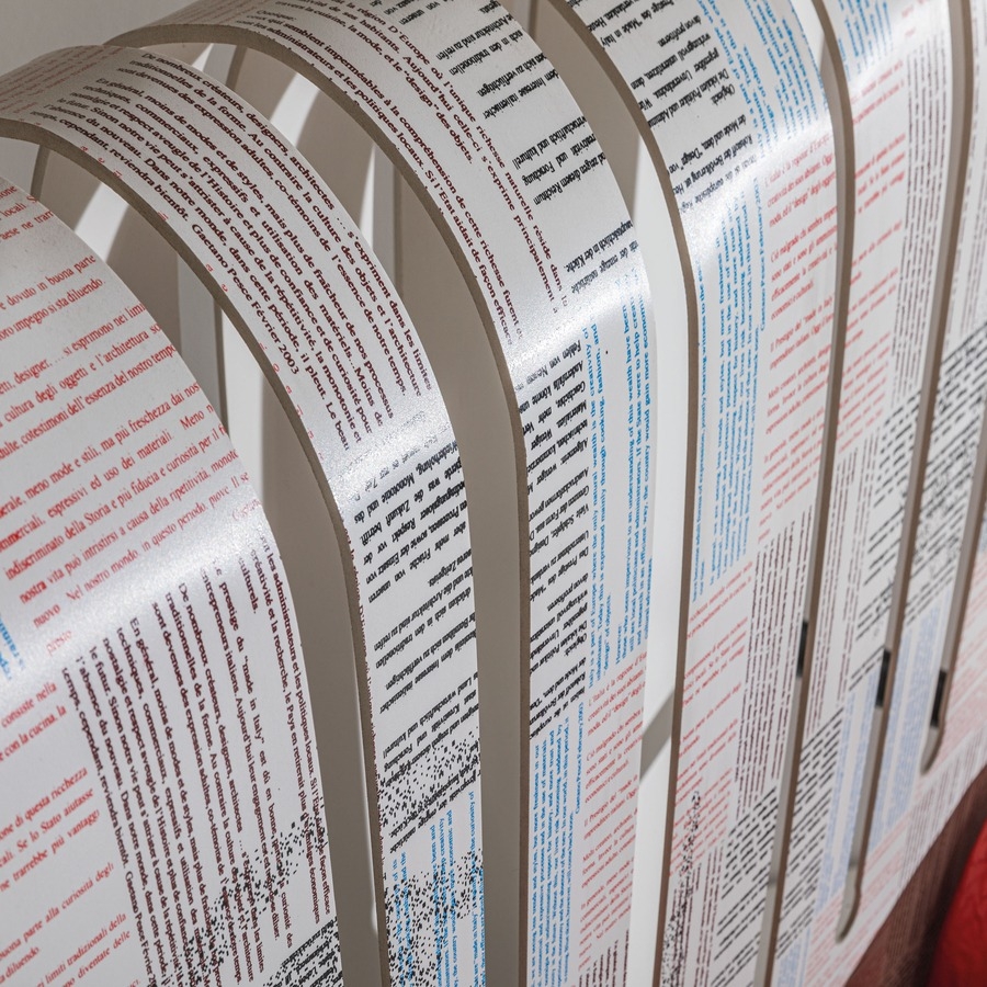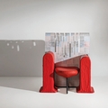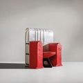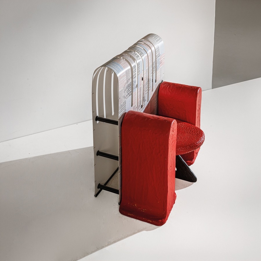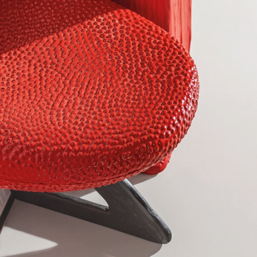 Poltrona mod. La smorfia. PVC stampato, schiuma espansa resinata. Marchio del produttore impresso sotto a un bracciolo. Produzione Meritalia, 2003 ca.