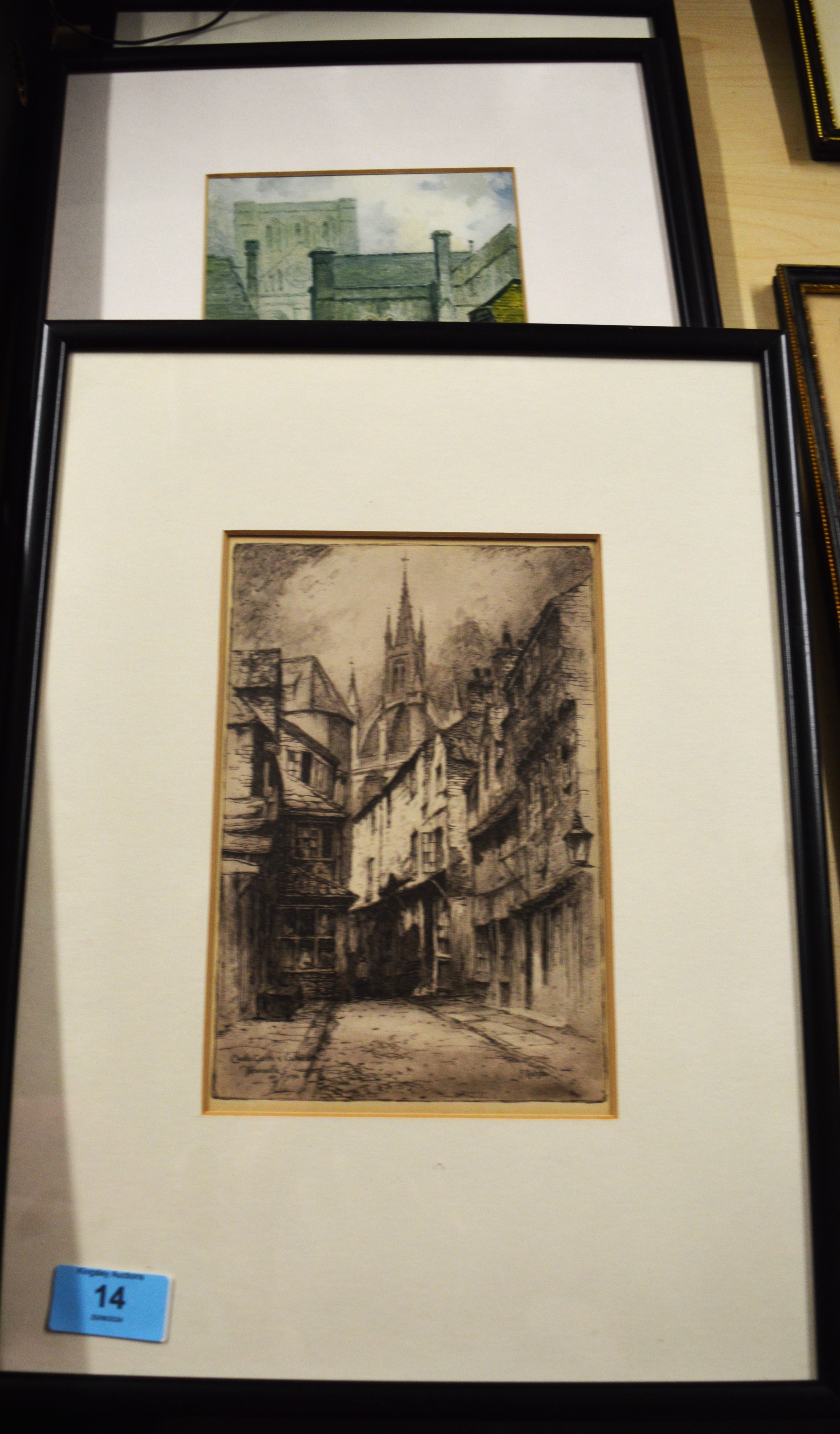 Three Urban Scene Etching Prints by F Robson - in Ebonised Frames