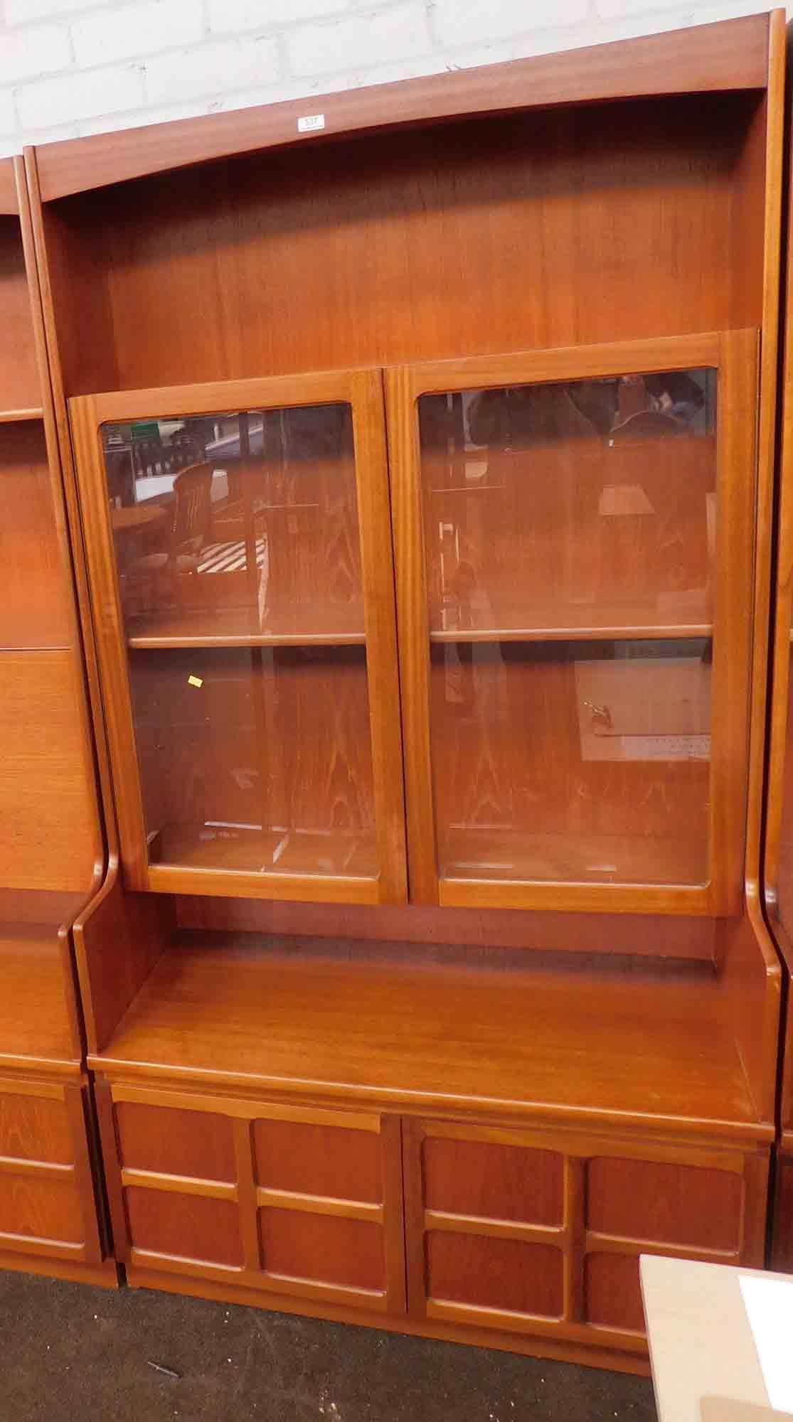 Mid-Century teak wall cabinet with glass display section