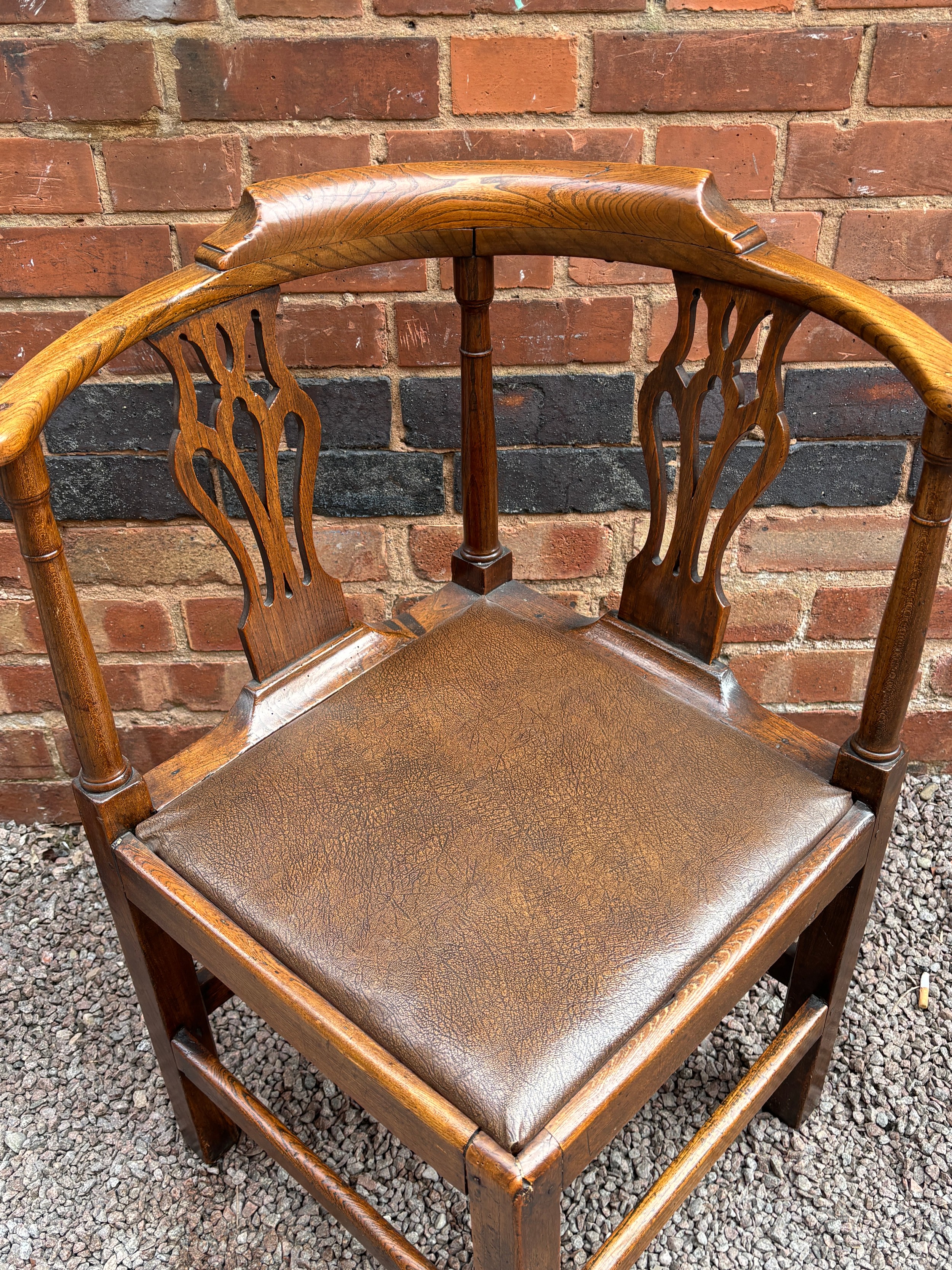 19TH CENTURY ELM PROVINCIAL CORNER ELBOWCHAIR