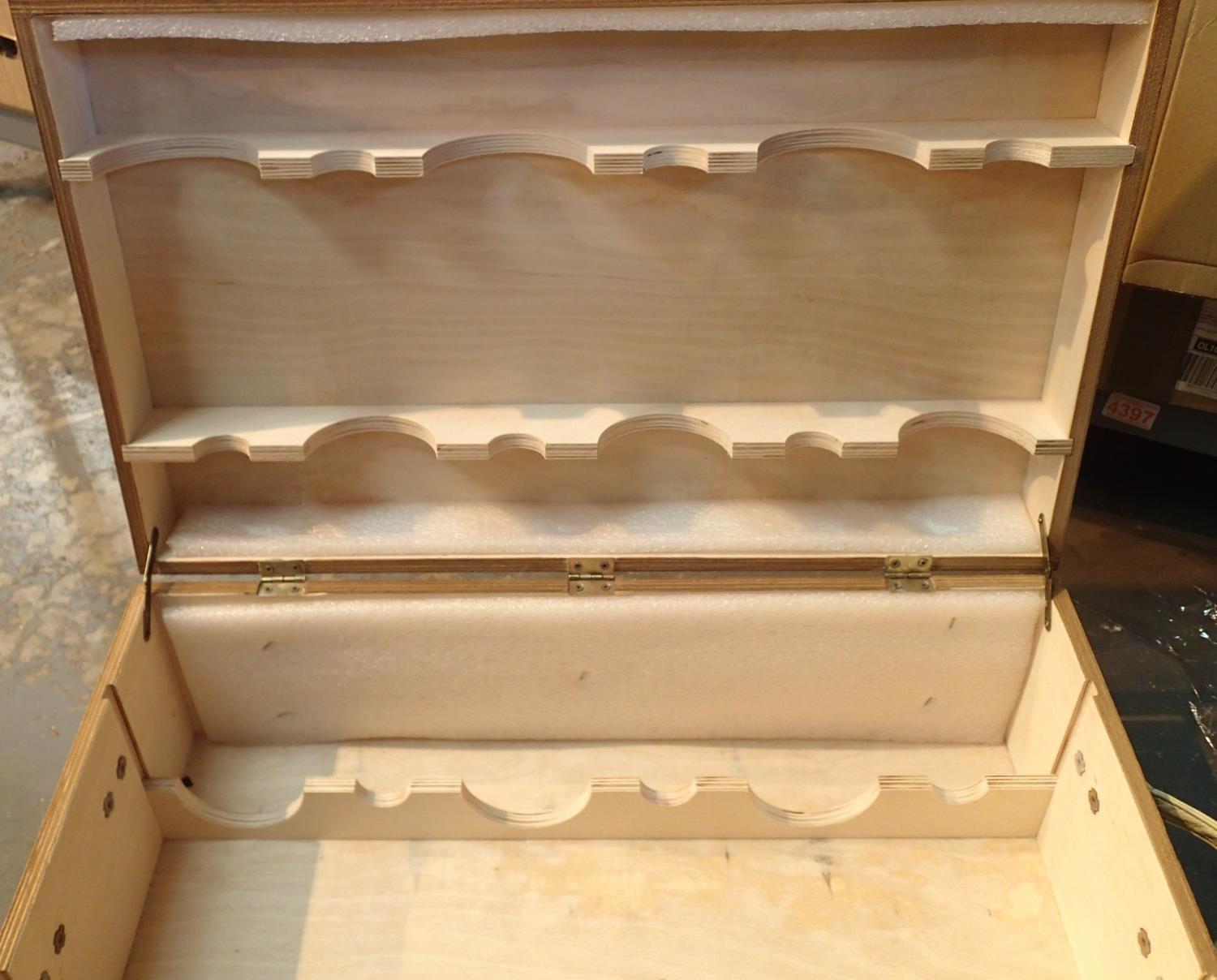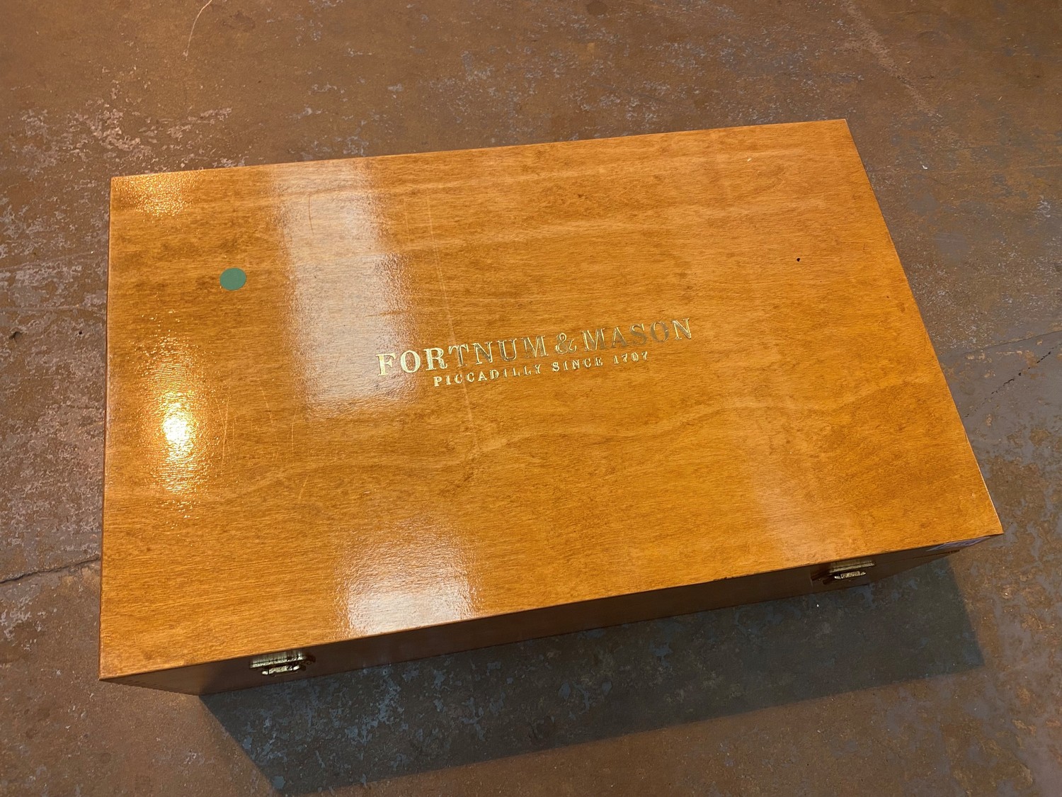 Pine six bottle wine box marked Fortnum and Mason. Not available for in-house P&P, contact Paul O'Hea at Mailboxes on 01925 659133
