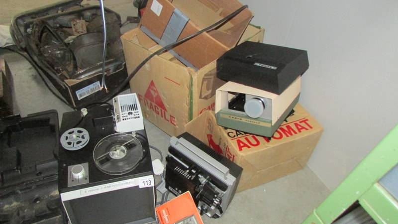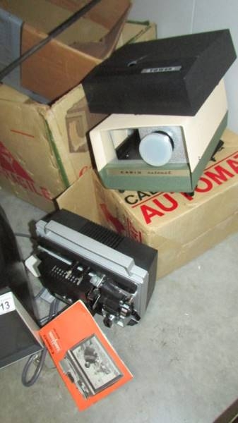 A Canon 8 TV style movie projector, an Automat slide projector and a Tower superb projector. (Collect only)