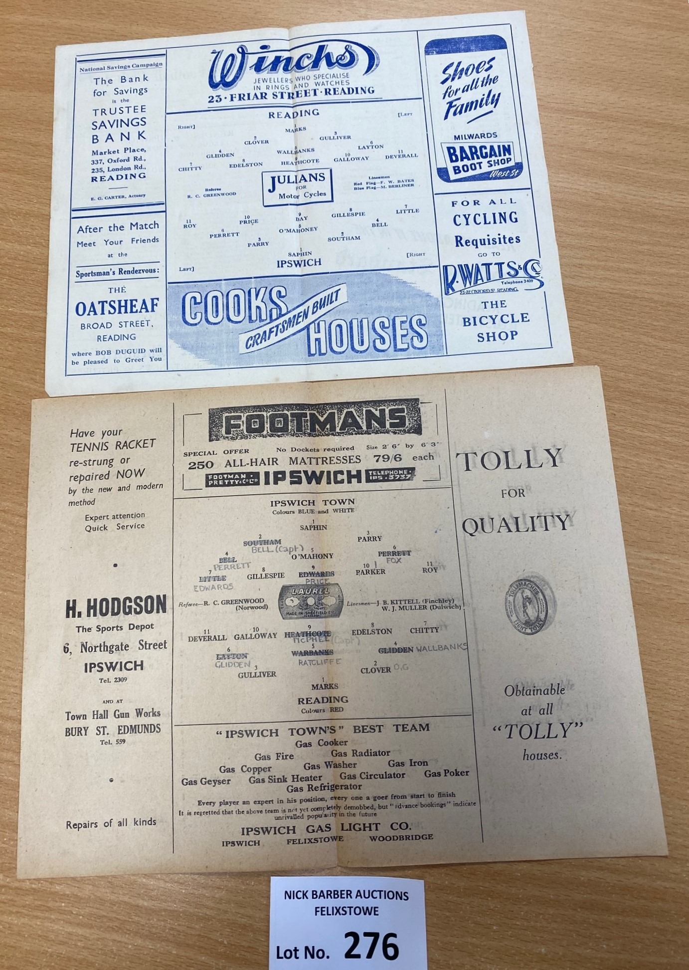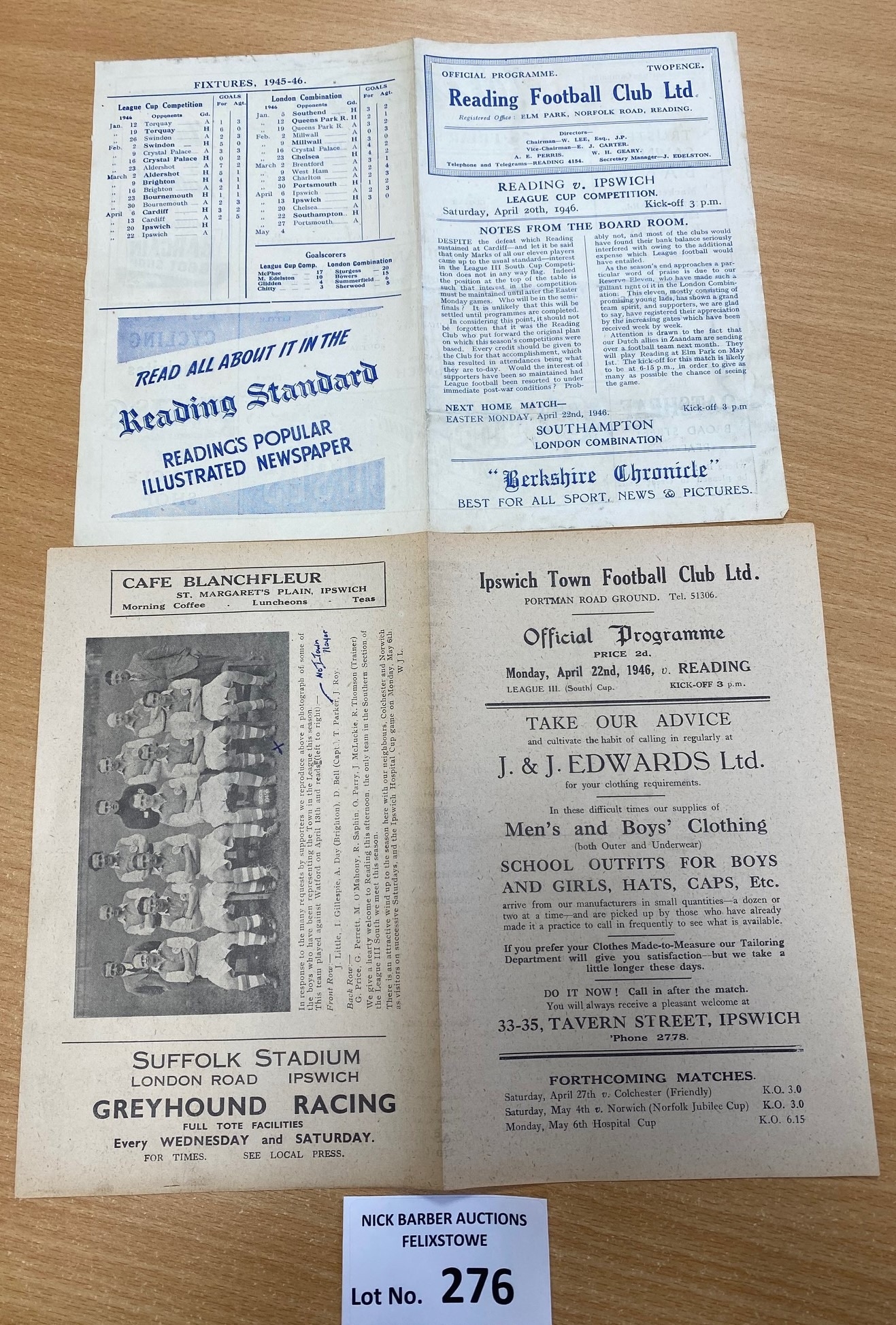 Football : Ipswich Town v Reading 1945/6 programmes, home/away fixtures, League Cup (2) 20.4.1946 and 22.4.1946, both good conditions.