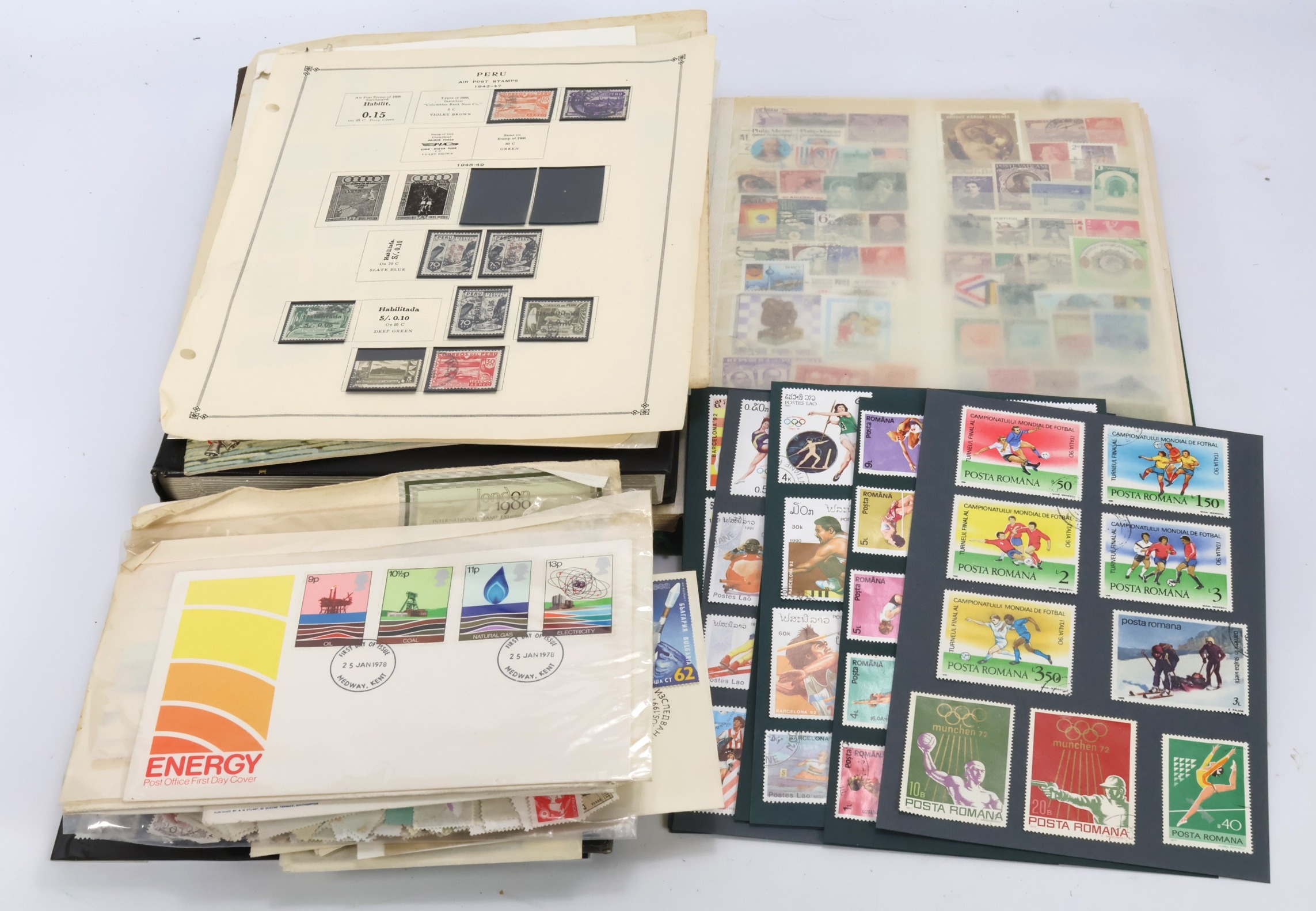Job lot of World material. Album pages of modern Hungary, Finland and Sweden. Two well filled stockbooks, one of British Commonwealth, other rest of the World. Portugese covers in album. Small s/book of used France and one of World. Various stocksheets, packets / envelopes of stamps. Older covers from various countries. Sweden museum cards. Romania in club book. Varied lot (Qty)