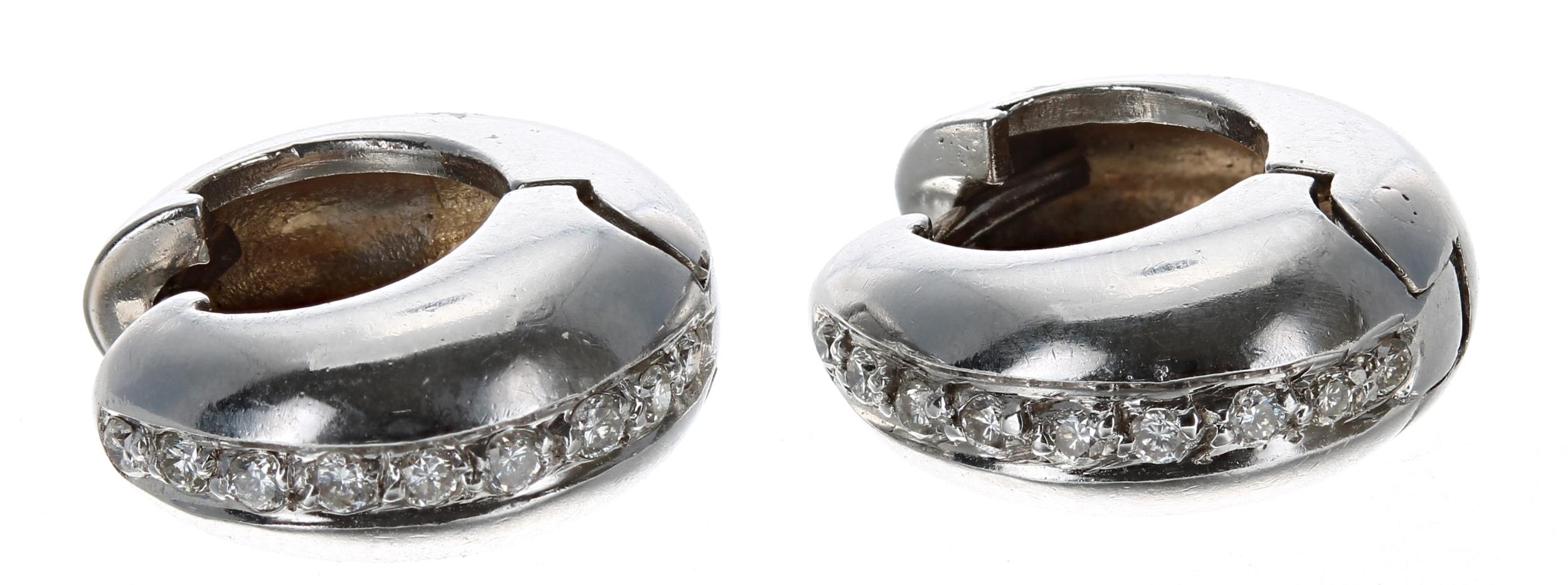 Pair of 18ct white gold brilliant-cut diamond set hoop earrings, 8.1gm, 15mm diameter
