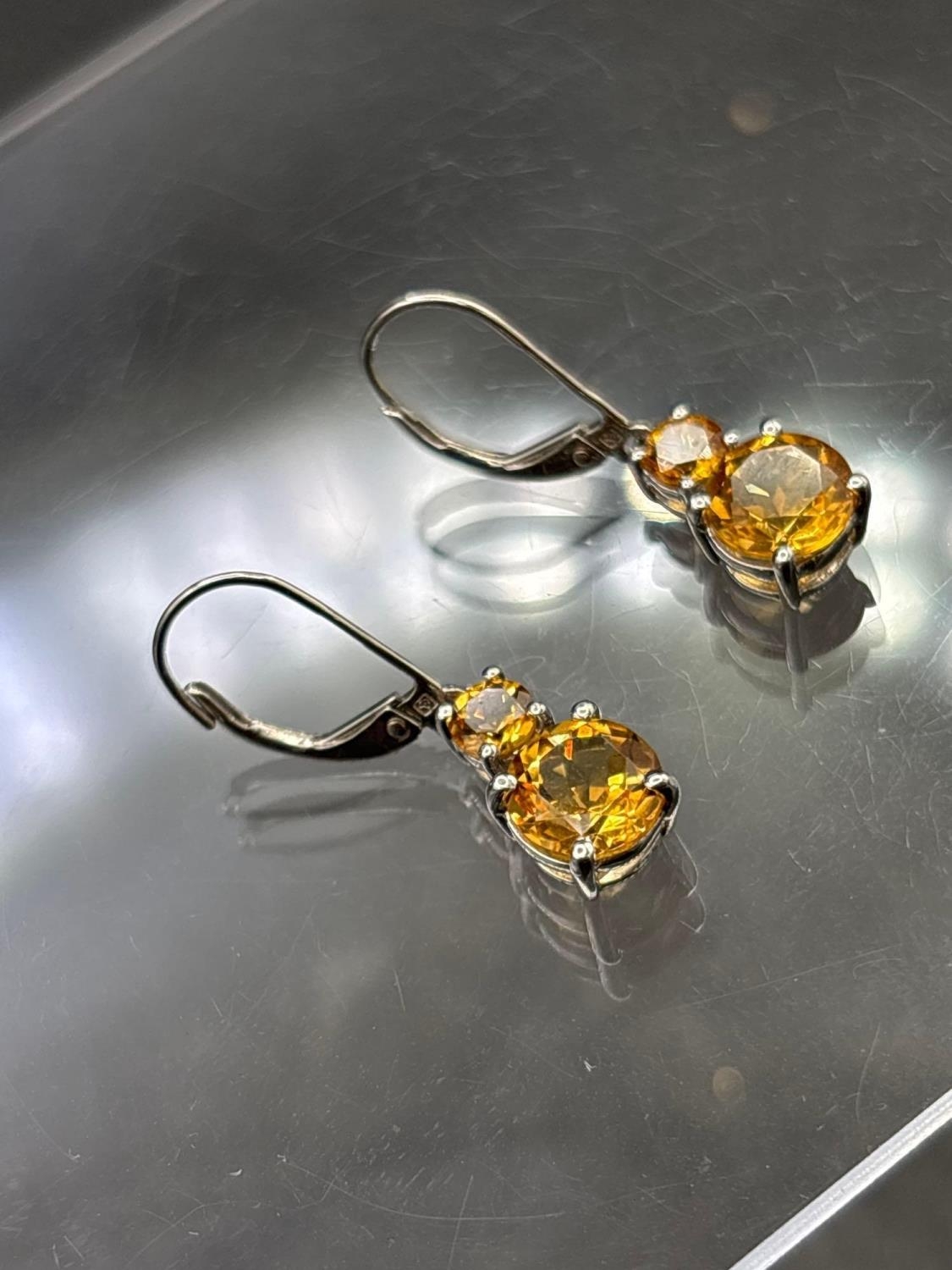 White gold and citrine drop ear-rings 9ct 2.5g