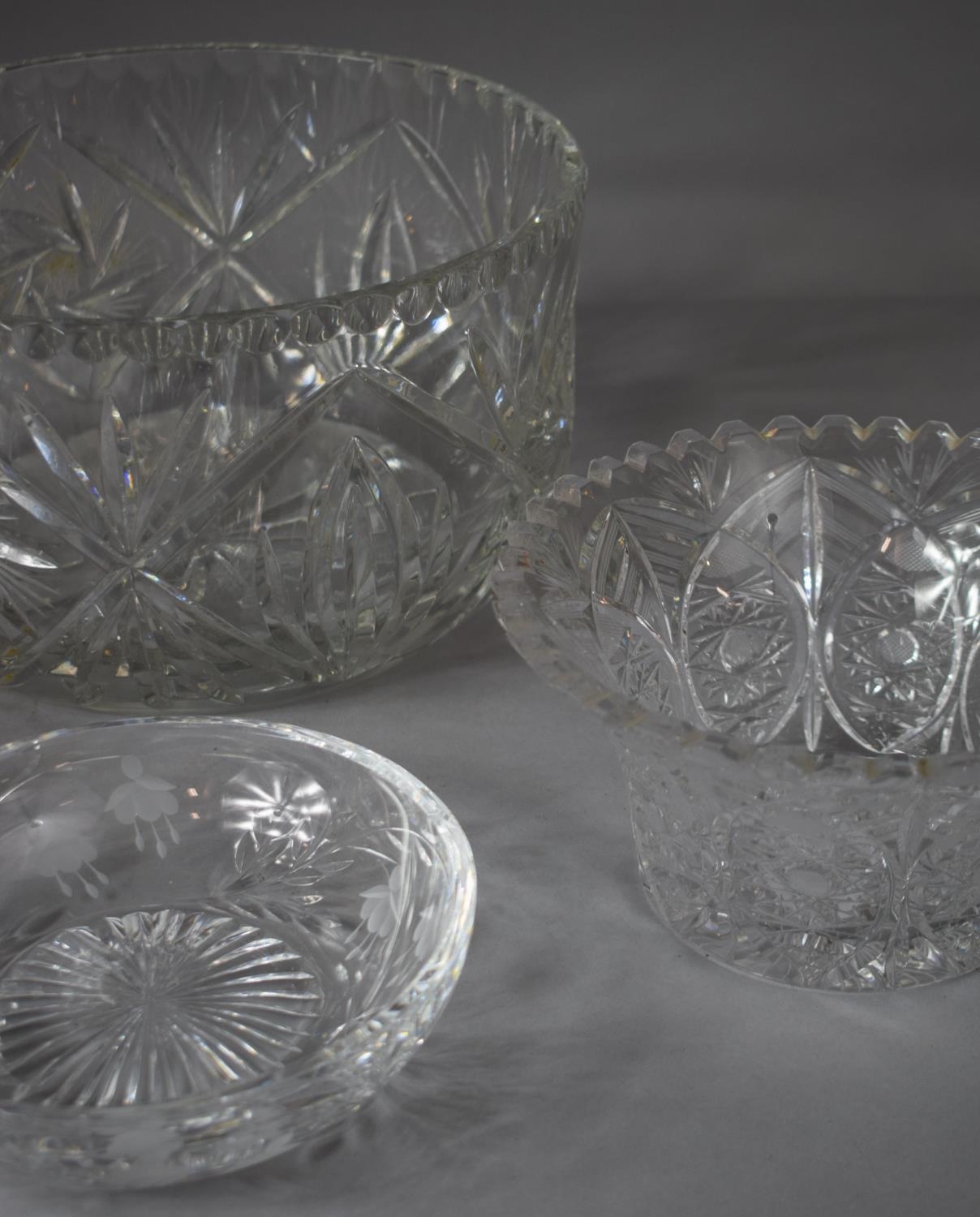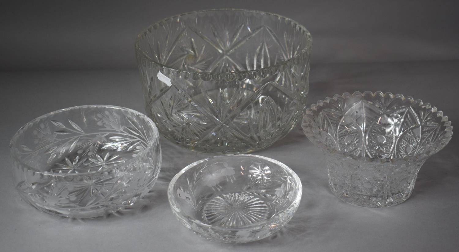 A Collection of Good Quality Cut Glass Bowls to Include Large Example, 26cms Diameter, Small Stuart Shallow Bowl Example etc (Four in total)