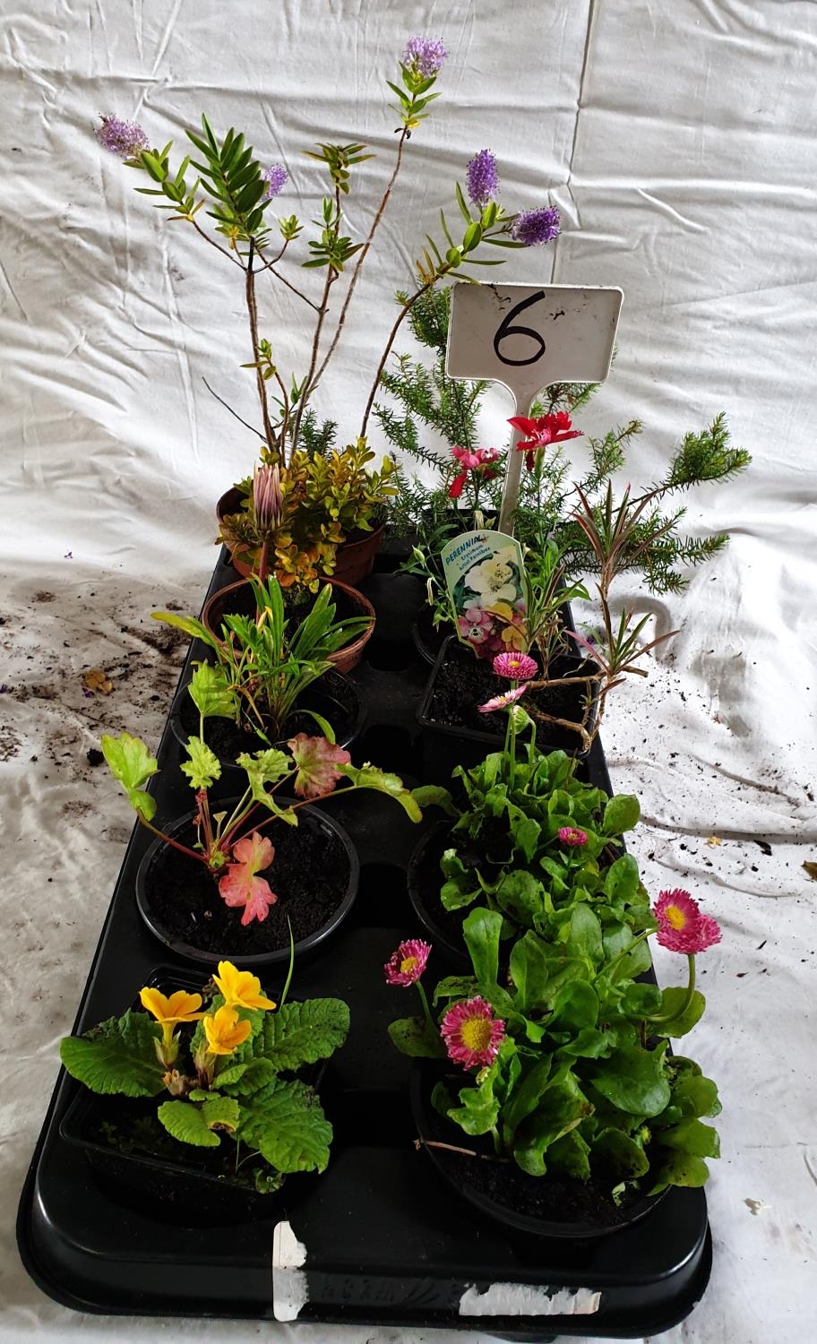 Ten mixed perennials including Heurecha, Bellis, Hebe, Box, Heather, Eurisim & Gazina. This lot is not available for in-house P&P.