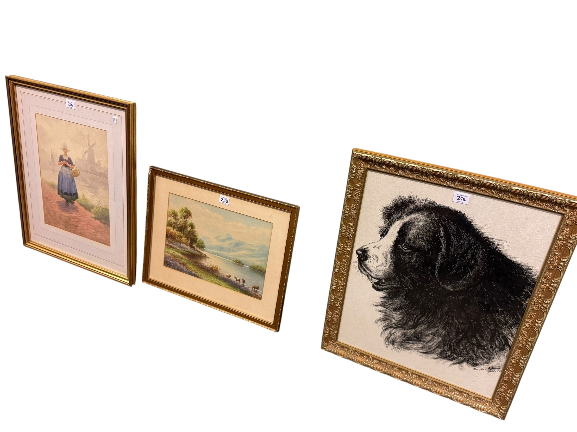 Milton Drinkwater, Cattle Watering, watercolour, GHA Brown, watercolour of a Dutch girl and painting of a dog (3).