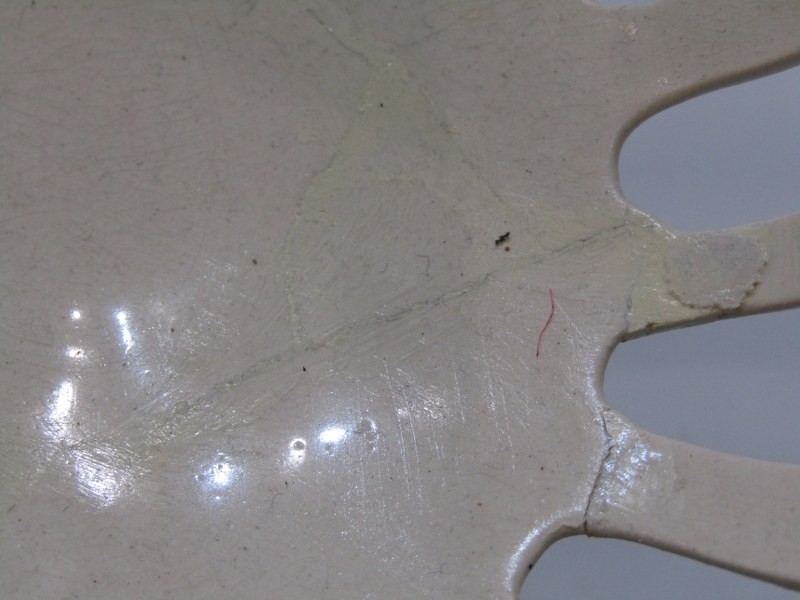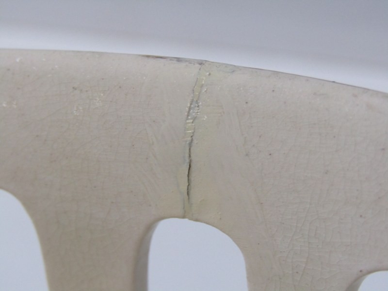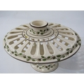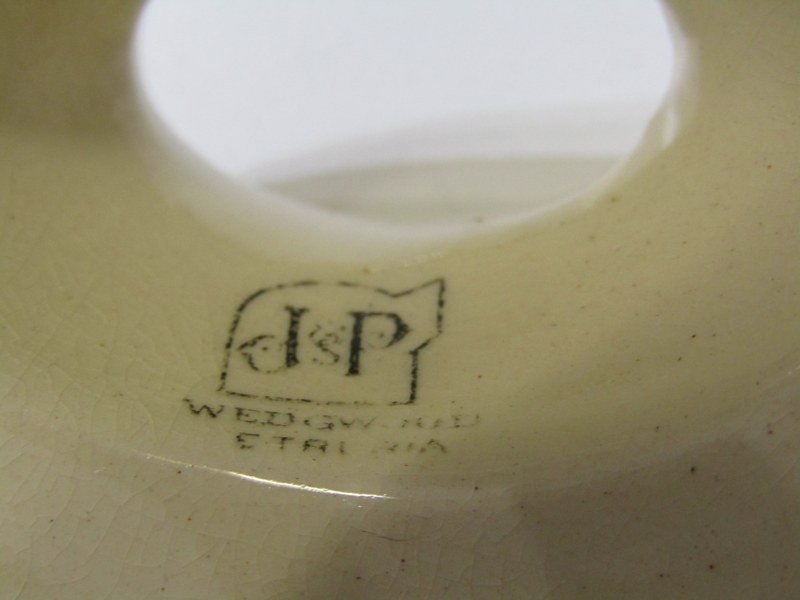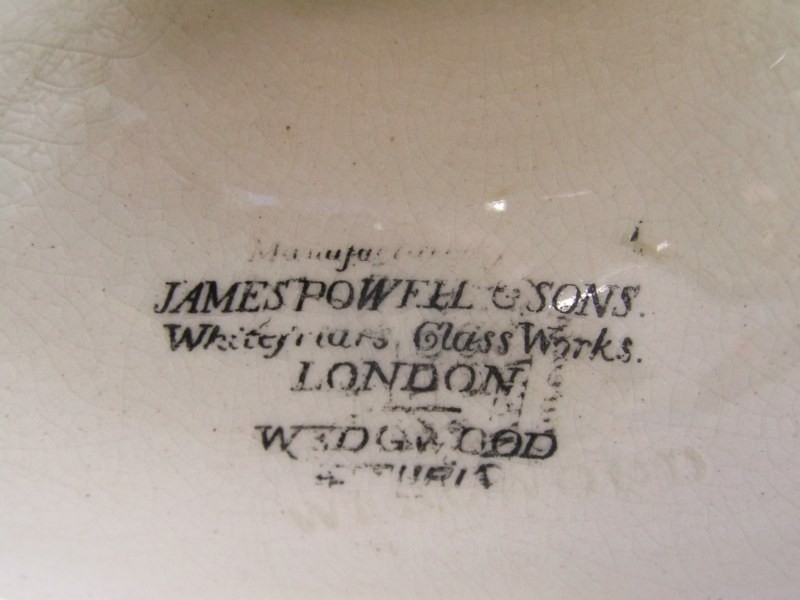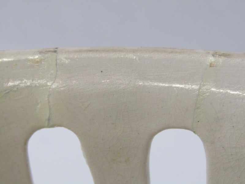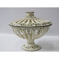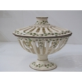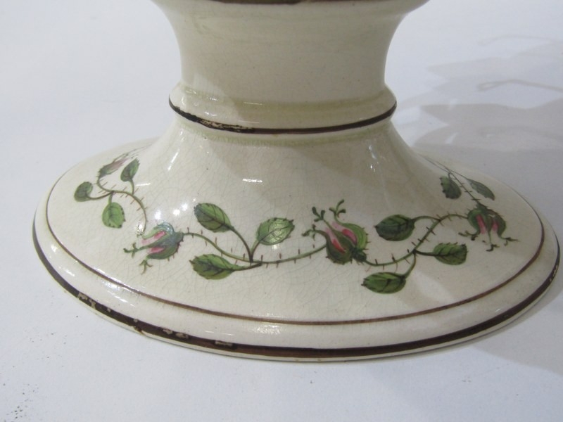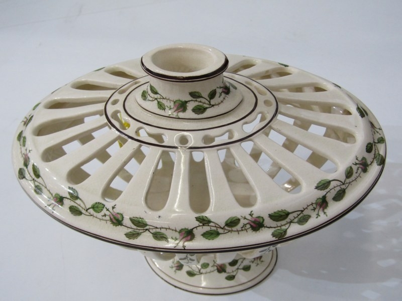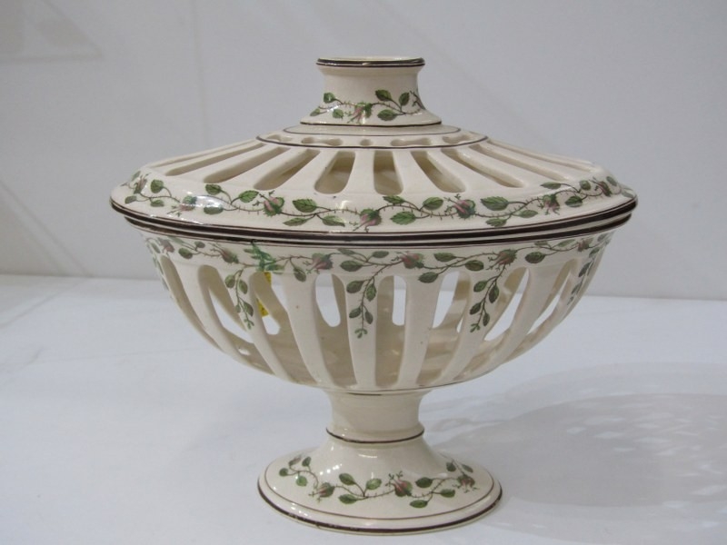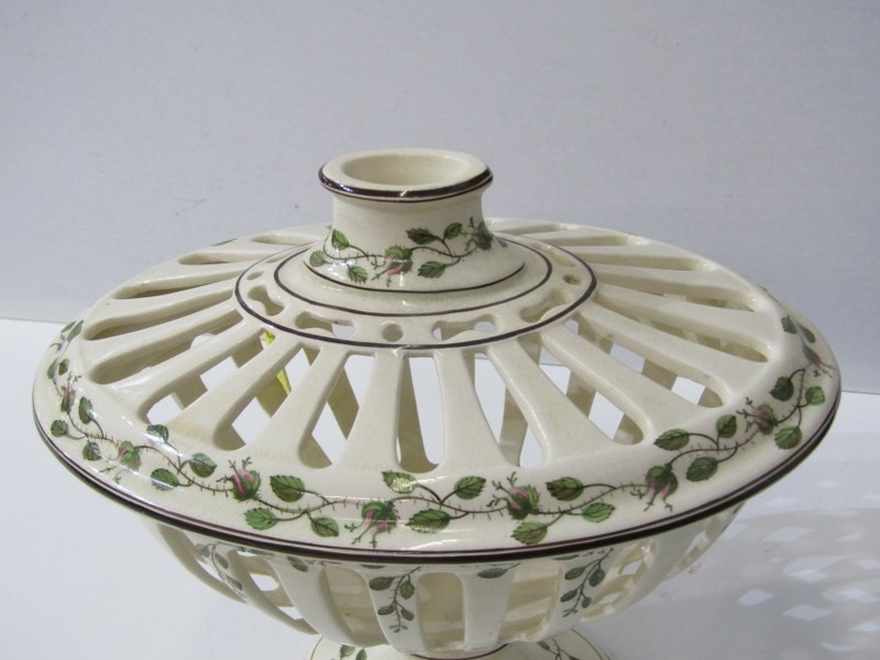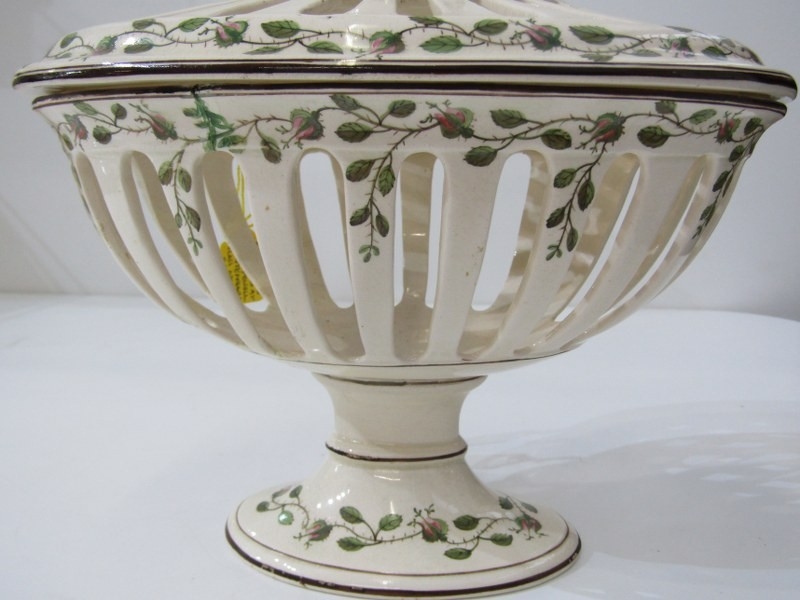 WEDGWOOD CREAMWARE, Georgian design oval lidded table basket, pierced body with meandering rose decoration, decorated at James Powell, Whitefriers Glassworks, (restored), 20cm height