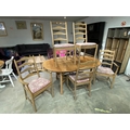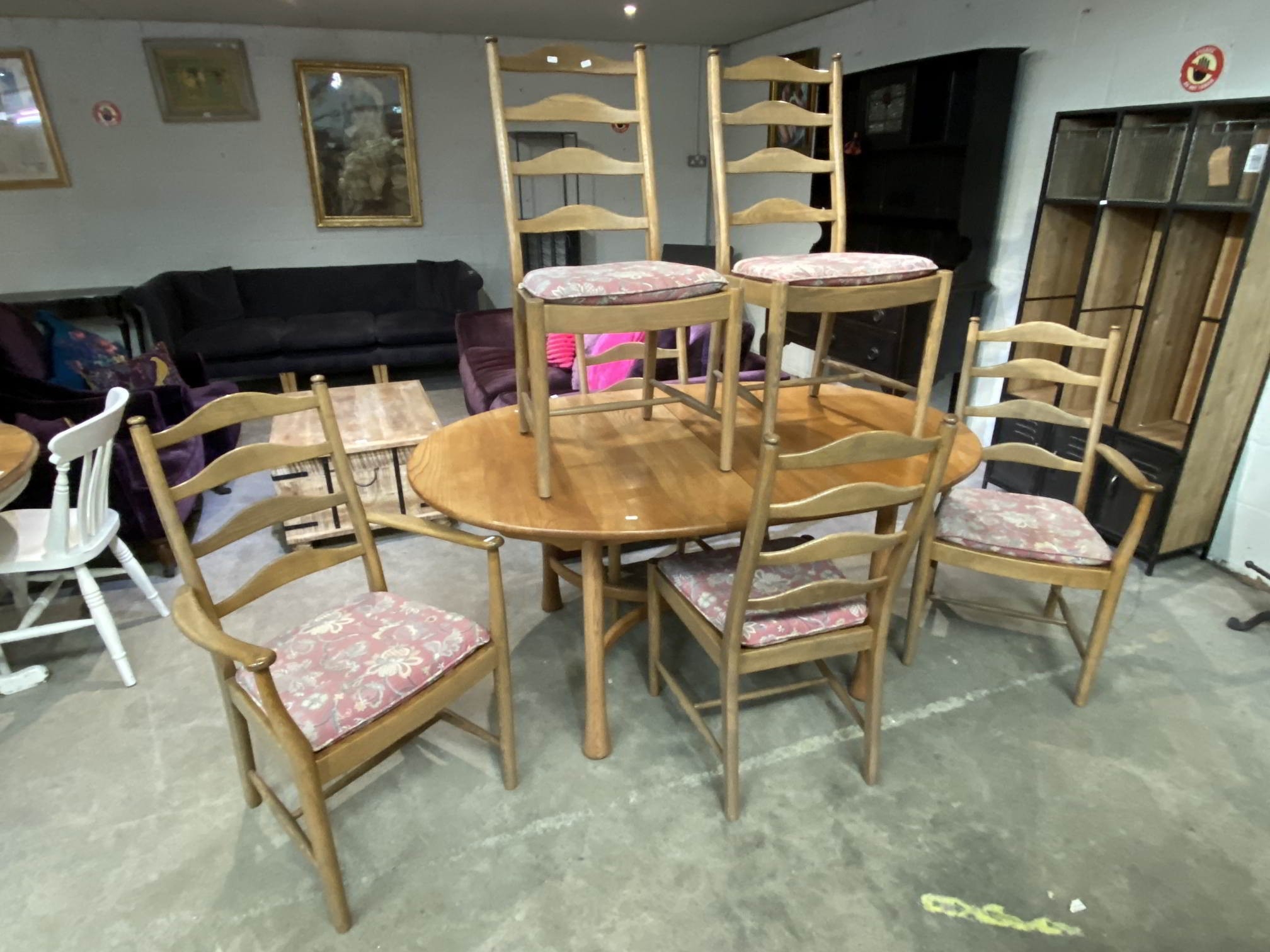 Ercol solid elm 'Saville' extending dining table 73H 162W 108D and 6 chairs including 2 carvers