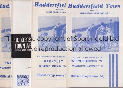 HUDDERSFIELD TOWN Fifty one home programmes from the 60's: 20 X 60/1 including Wolves and Barnsley FA Cup, 9 X 65/6 and 22 X 67/8 including Wolves, West Ham United, and Fulham FL Cup. No duplication. Generally good