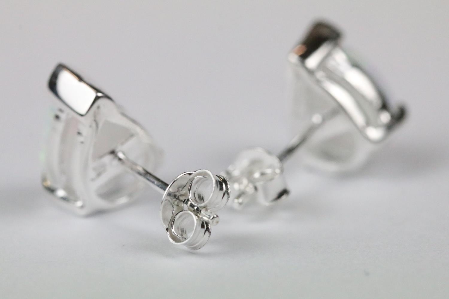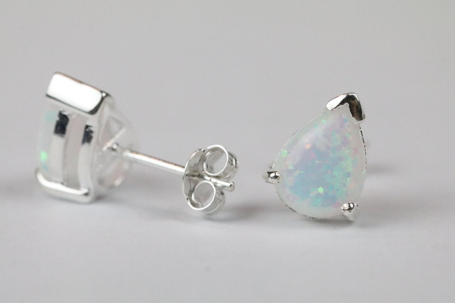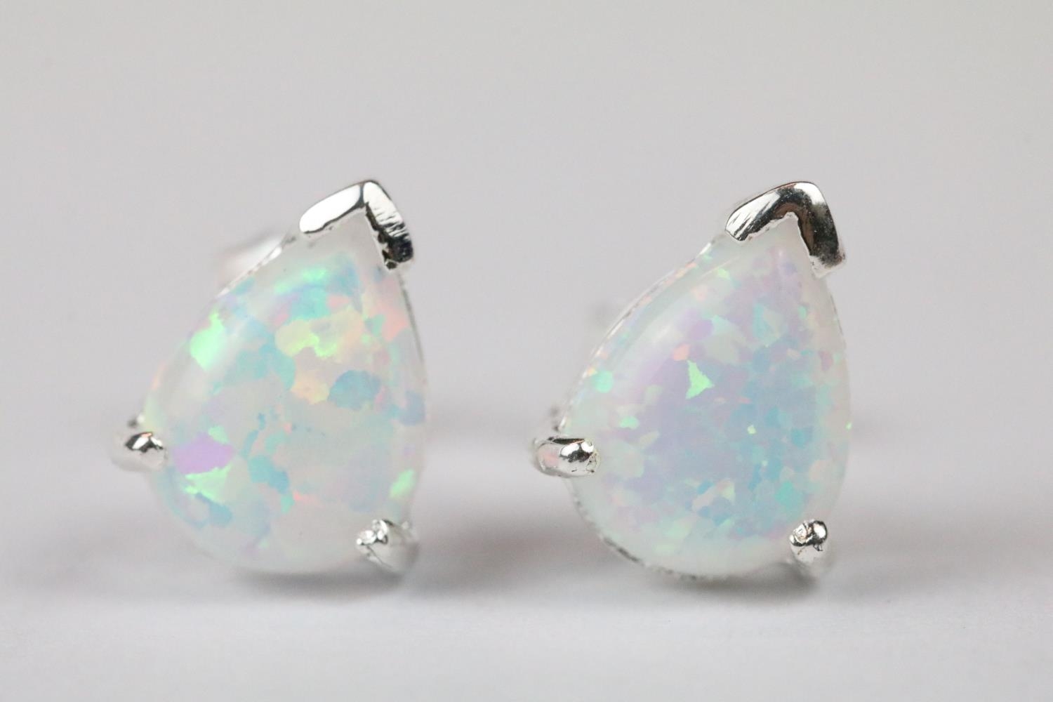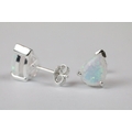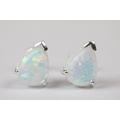 Pair of silver and pear shaped opal stud earrings