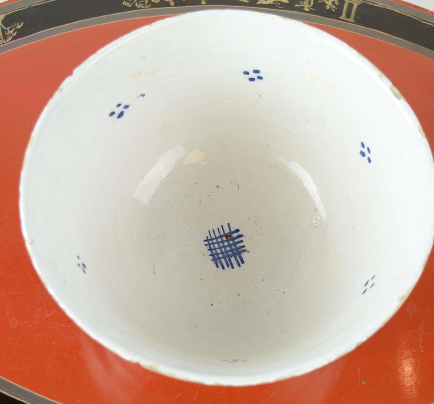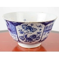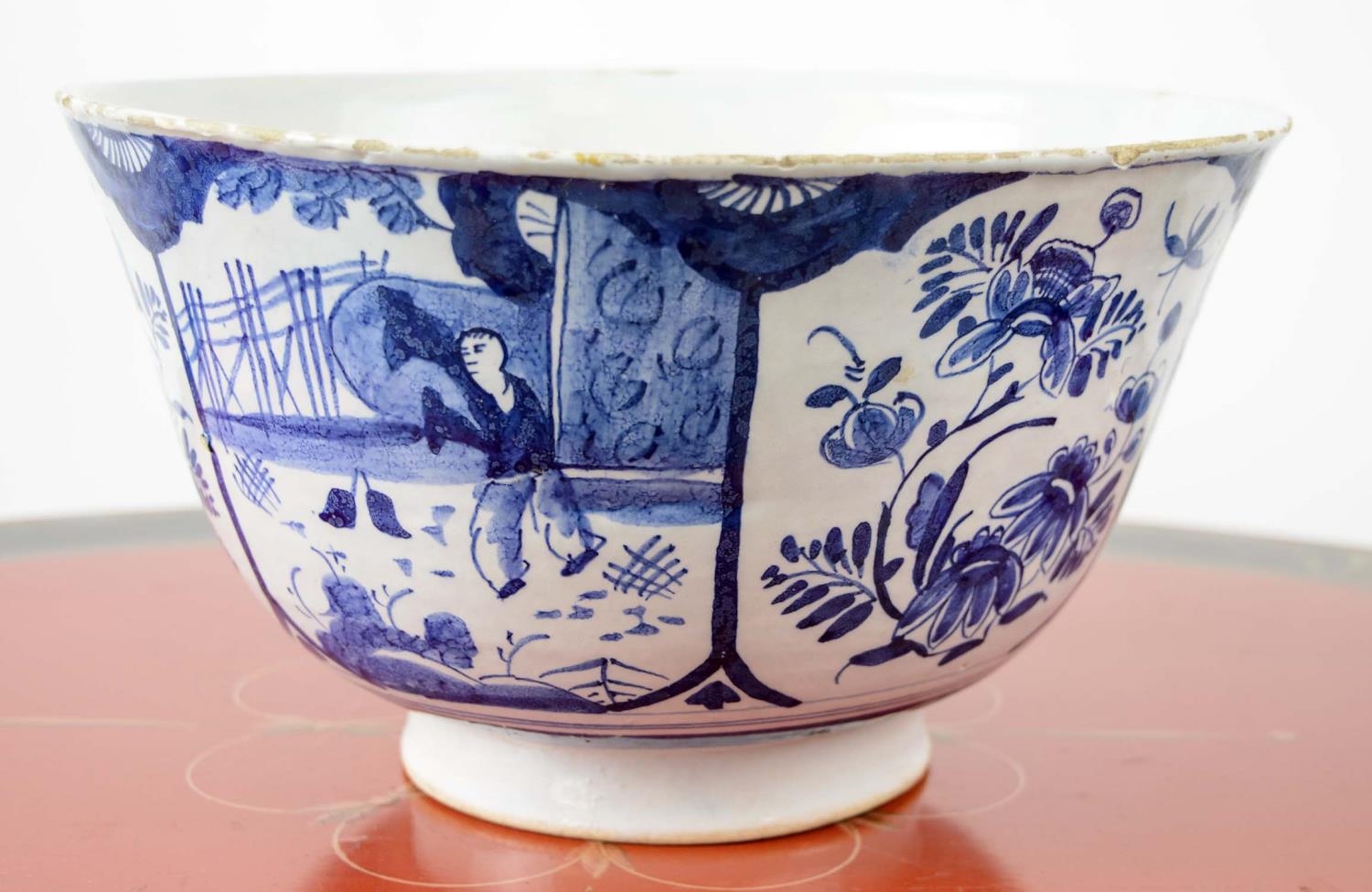 DELFT BOWL, 15cm H x 27cm D, in blue and white Chinoiserie decoration with foliate and figural panels.
