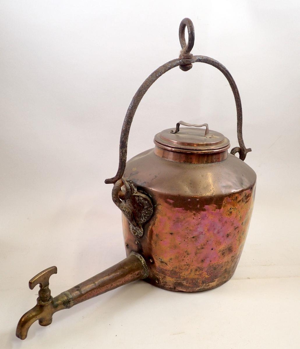 A 19th century copper hot water urn with cast iron handle