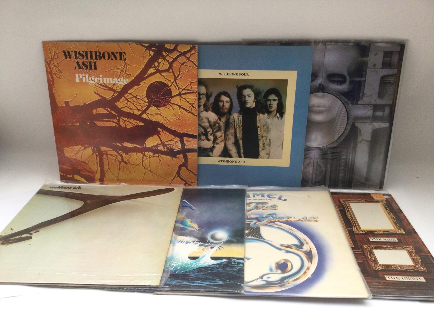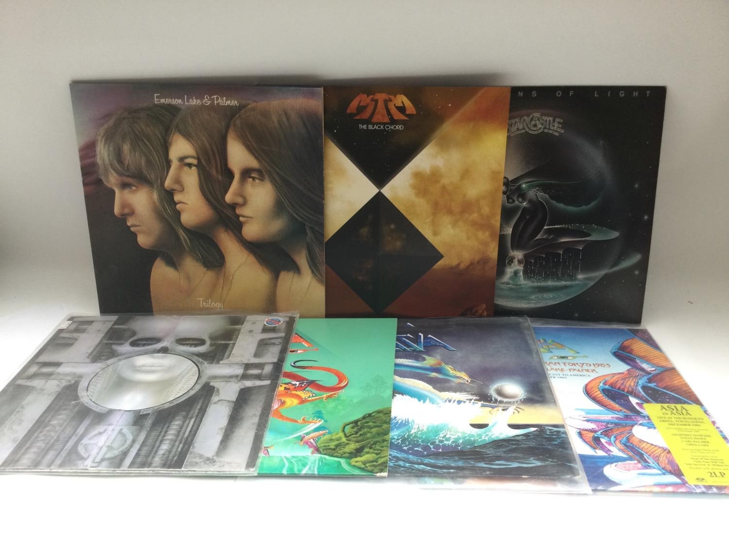 Thirteen prog rock LPs by various artists including Asia, Emerson, Lake & Palmer, Wishbone Ash and others.