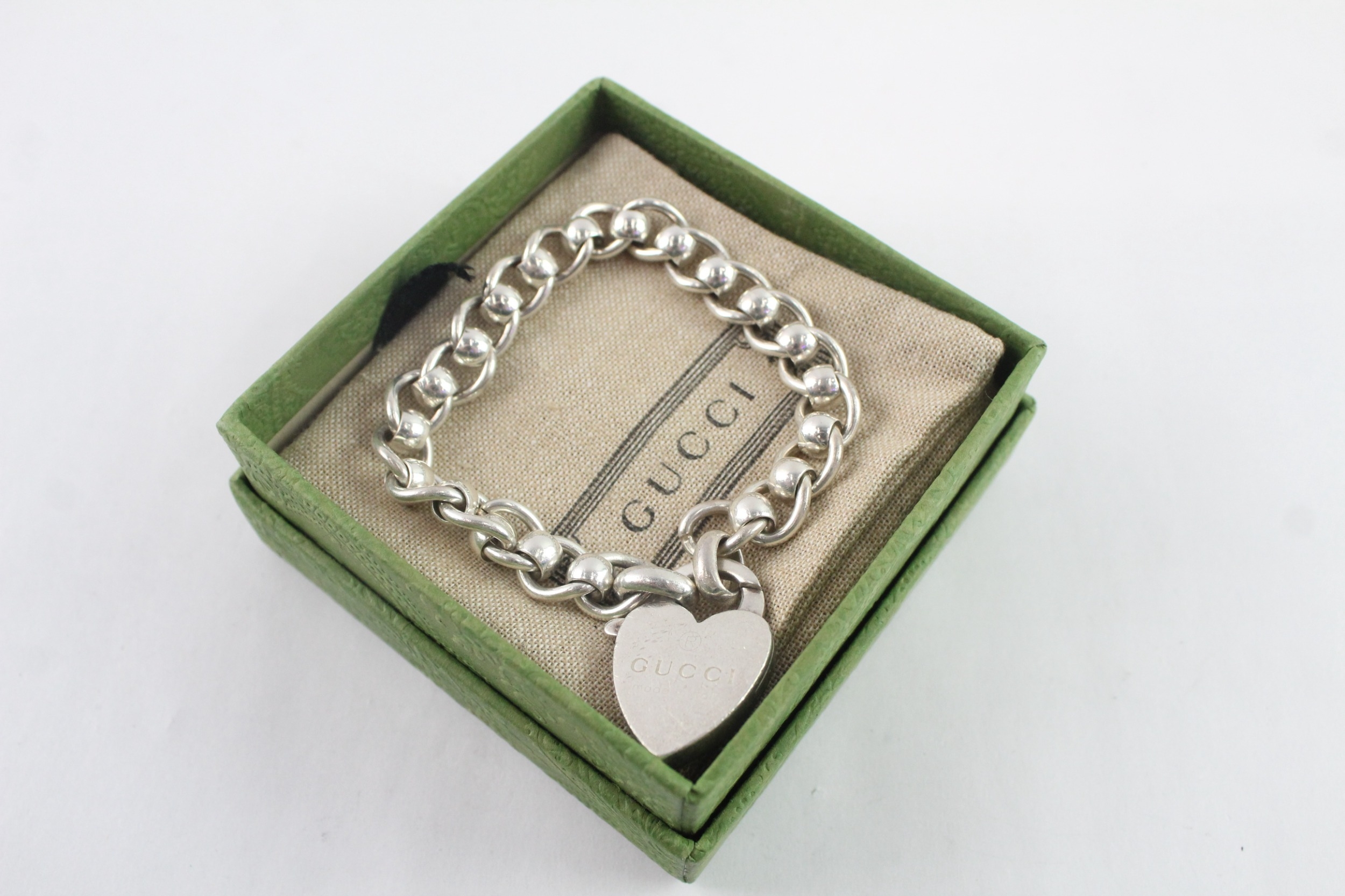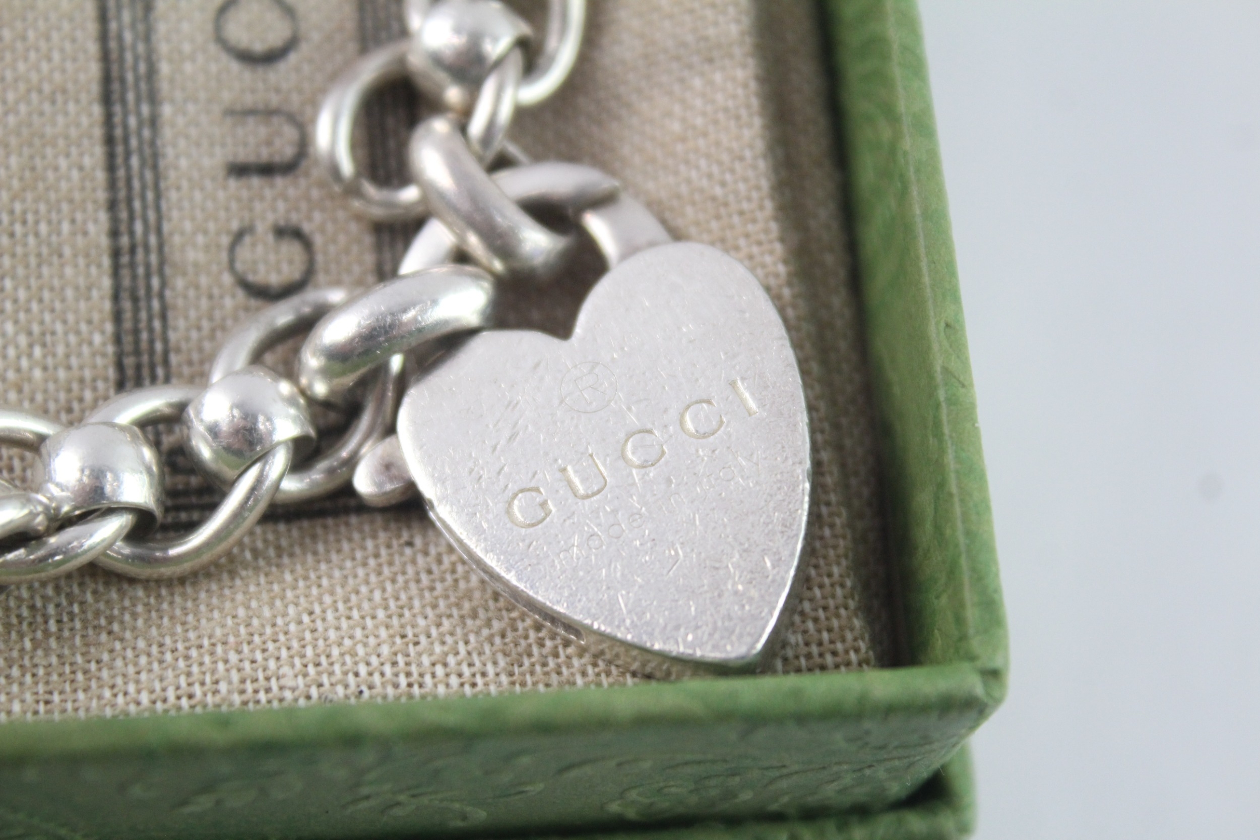 Gucci Sterling Silver Bracelet w/ Heart Padlock Clasp & Box (44g)